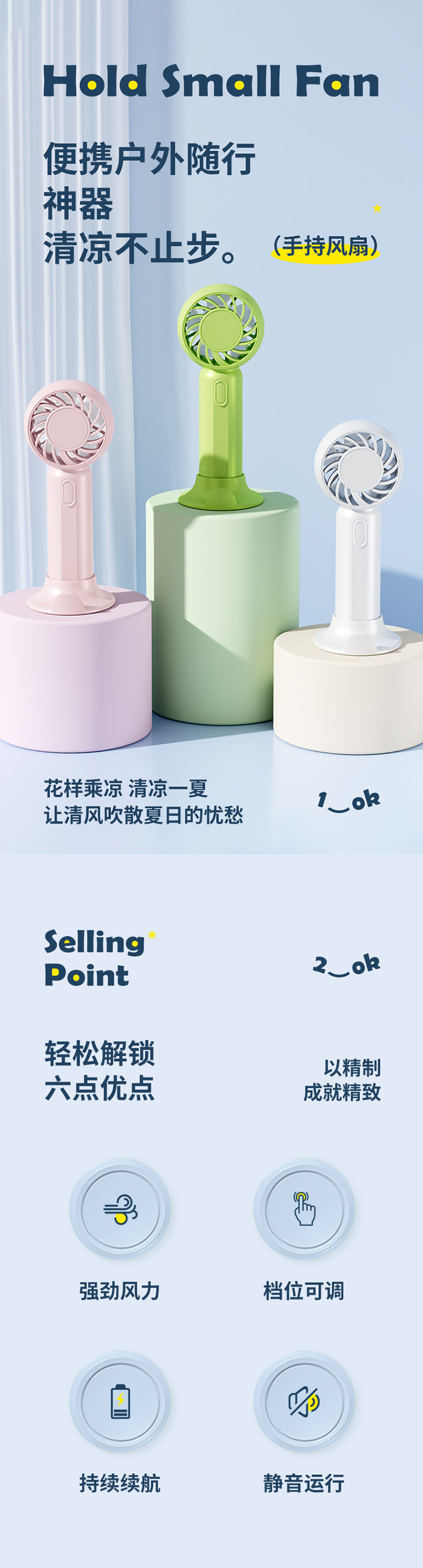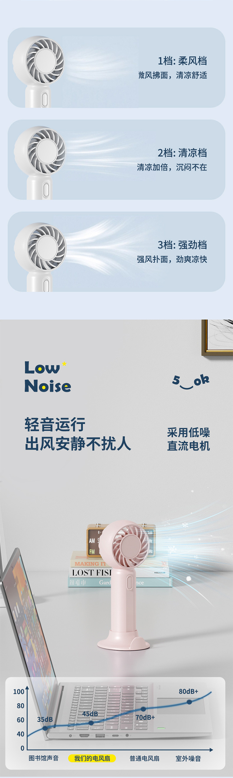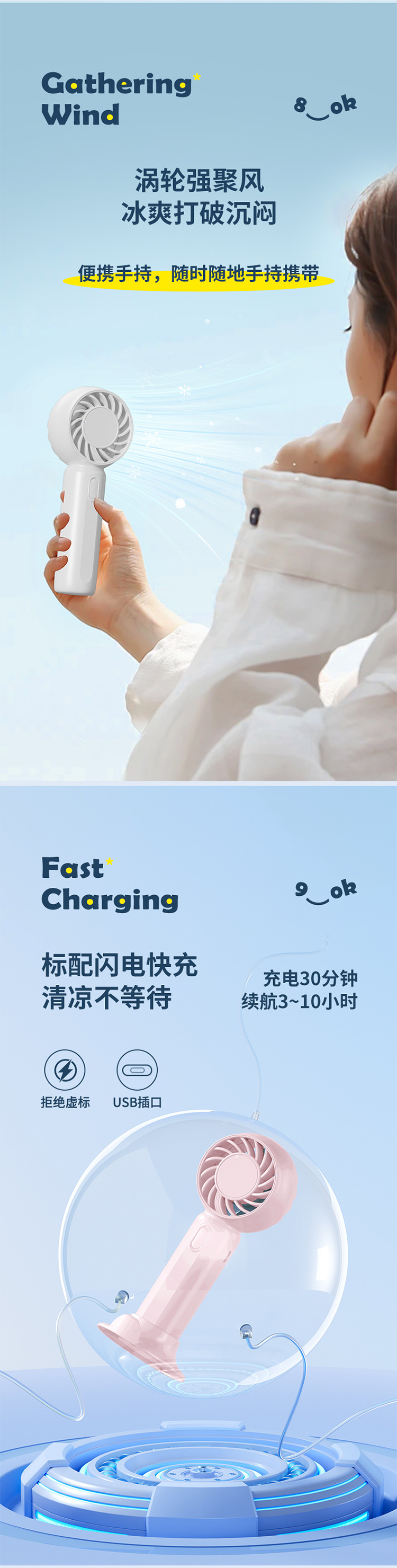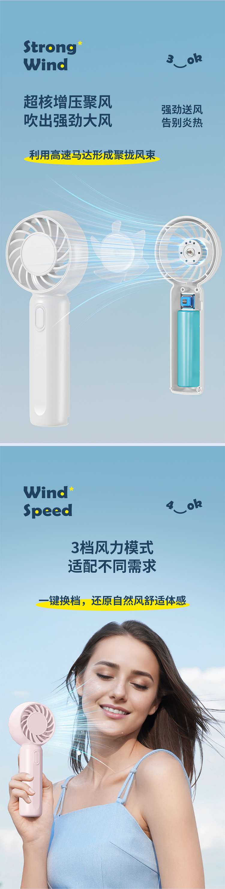 户外便携式手持风扇桌面低噪迷你风扇 简约随身USB小风扇礼品