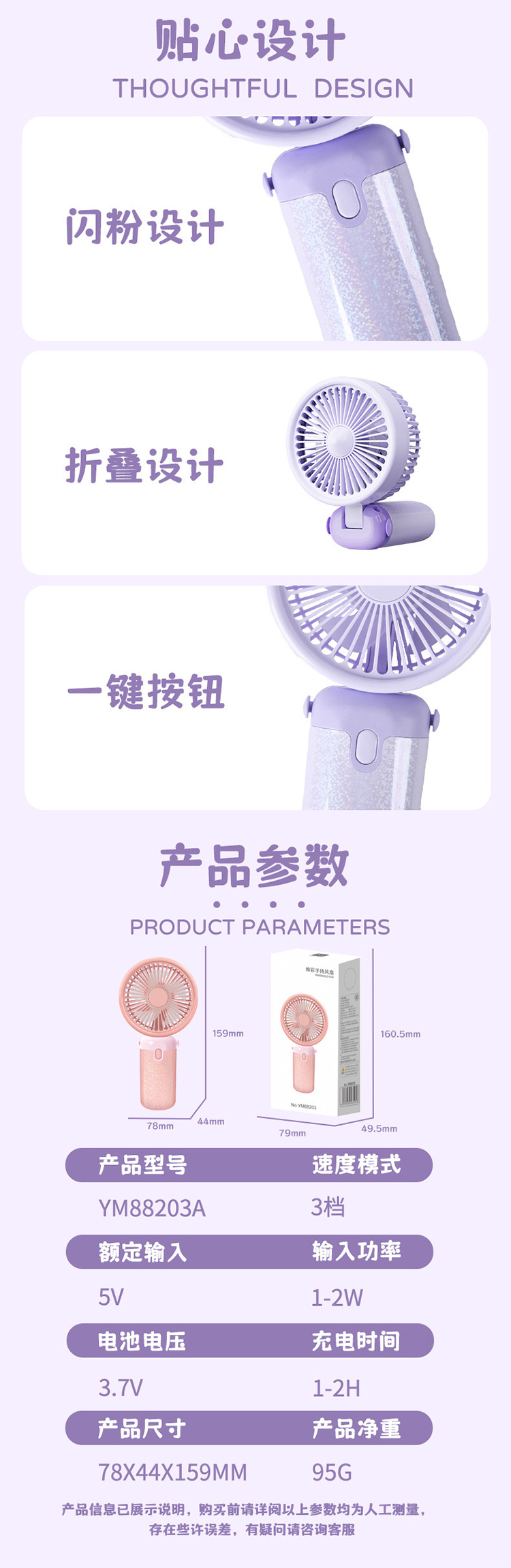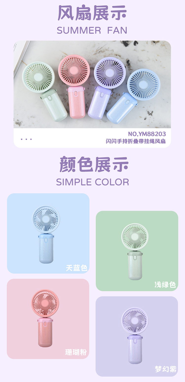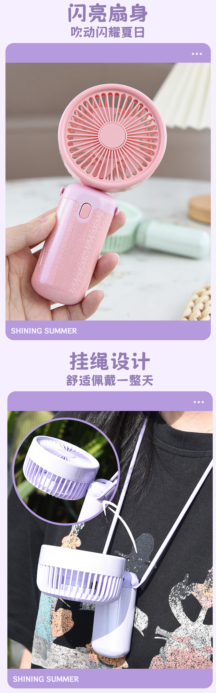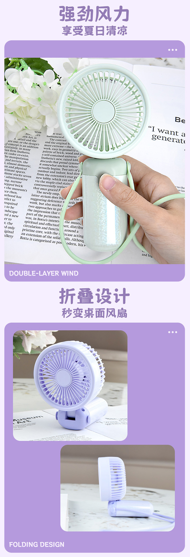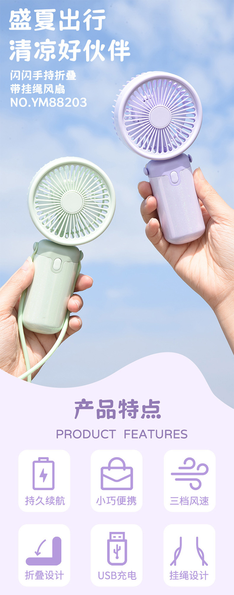 折叠手持小风扇带挂绳USB充电三档夏季学生宿舍礼品便携