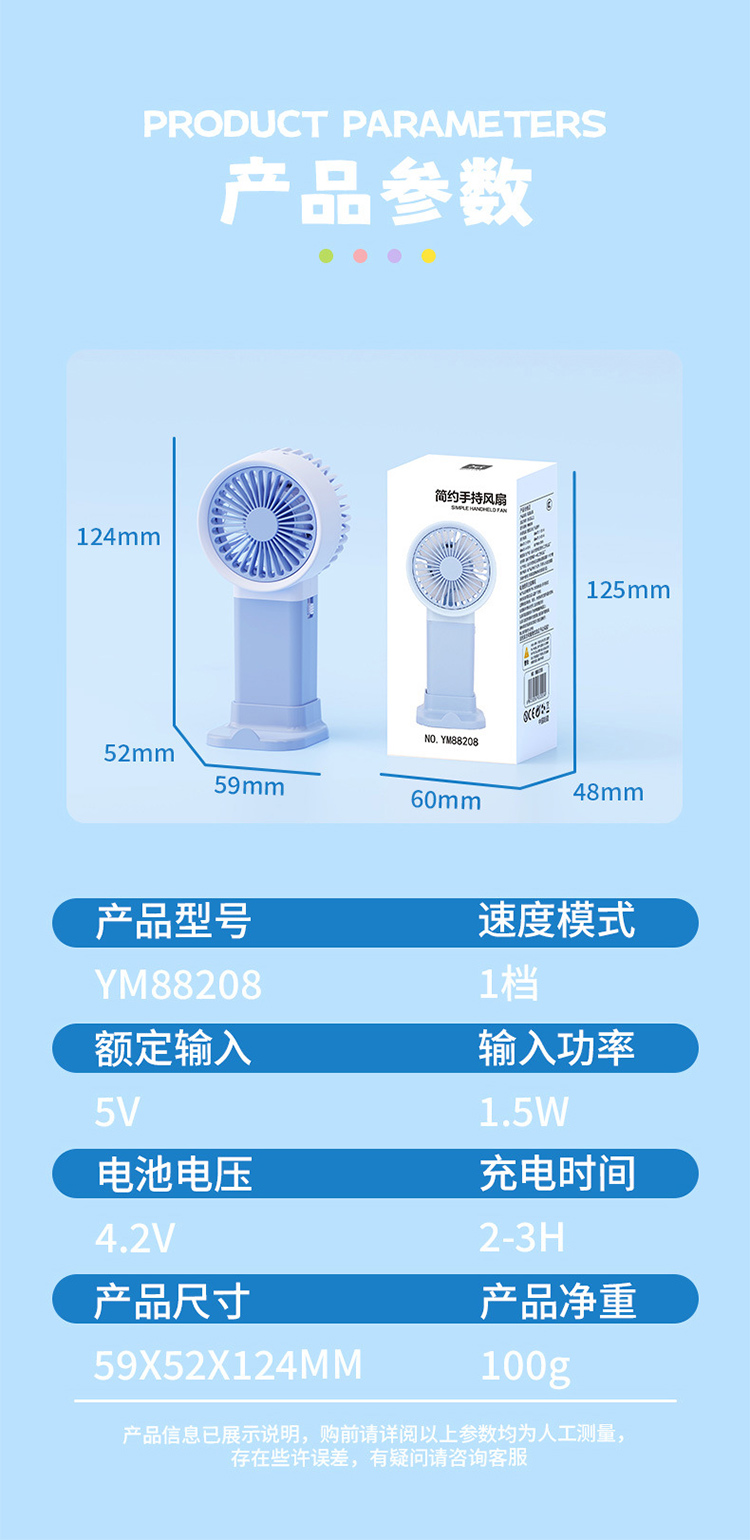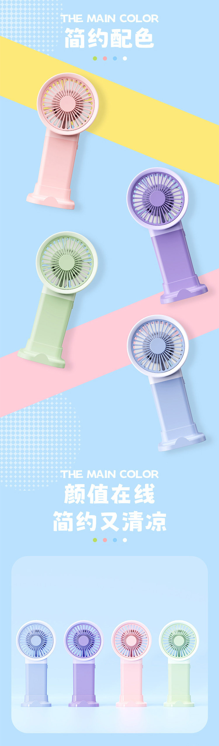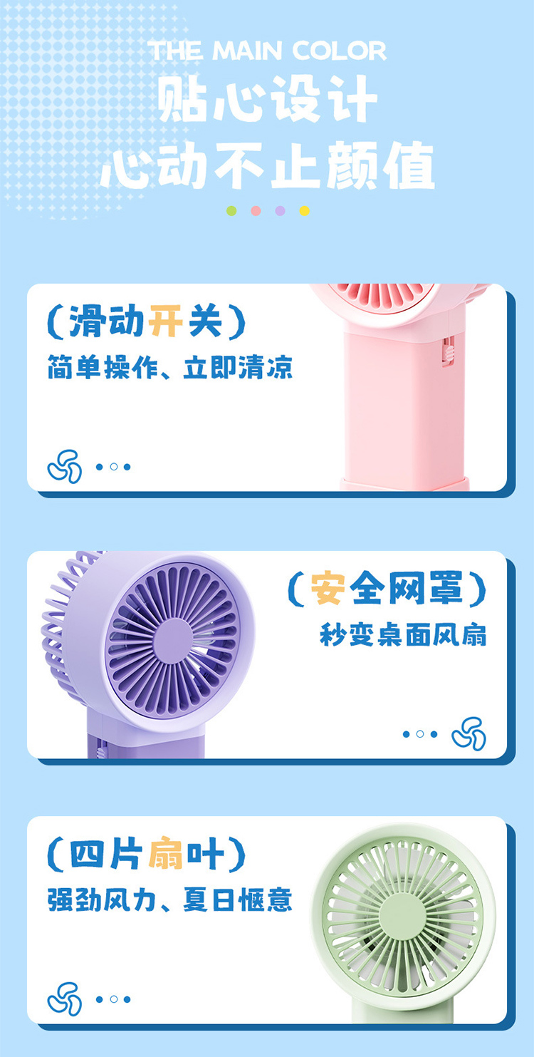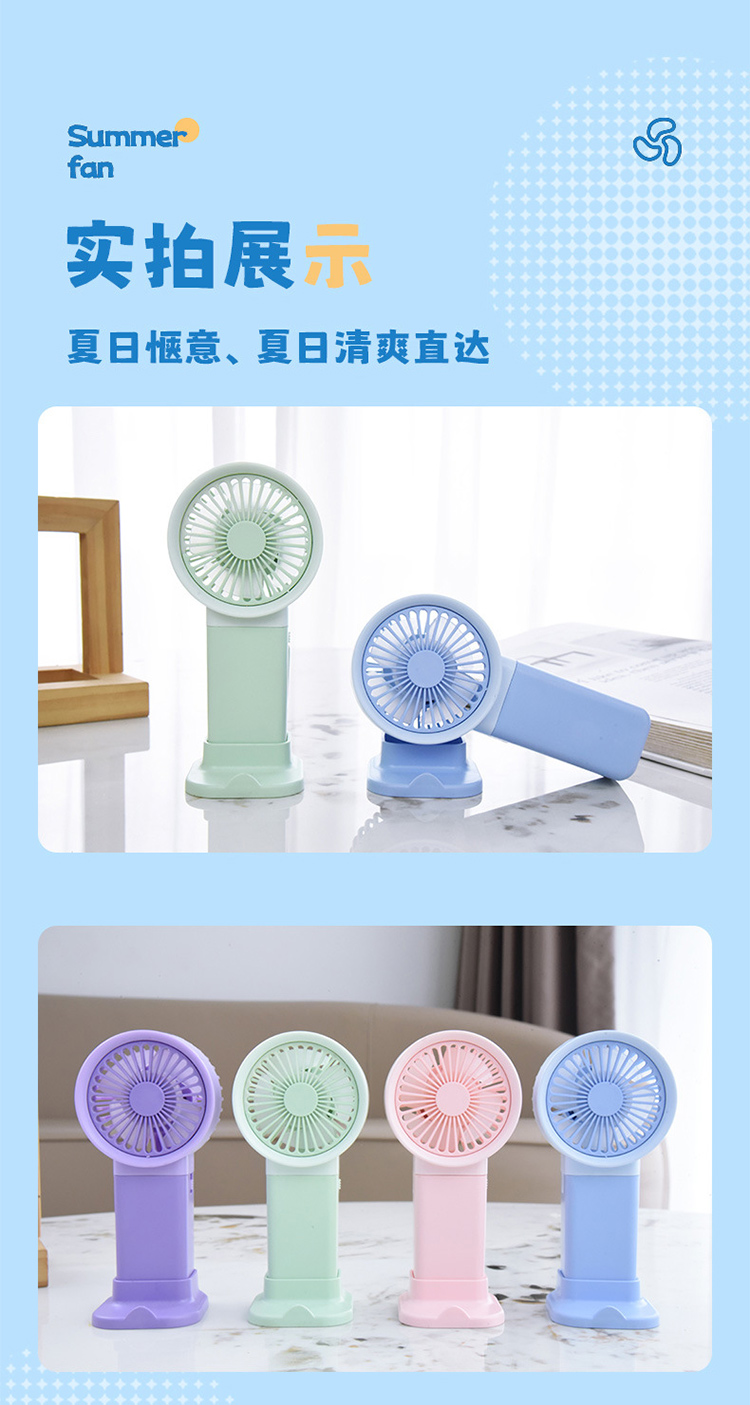 马卡龙带底座支架手持小风扇三档风充电夏季学生户外随身礼品