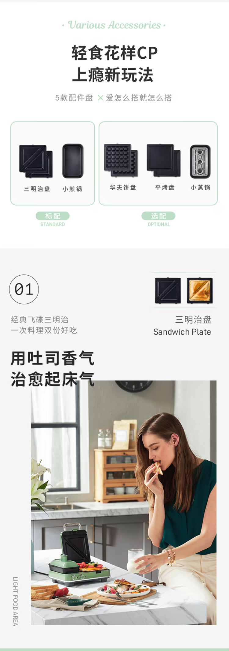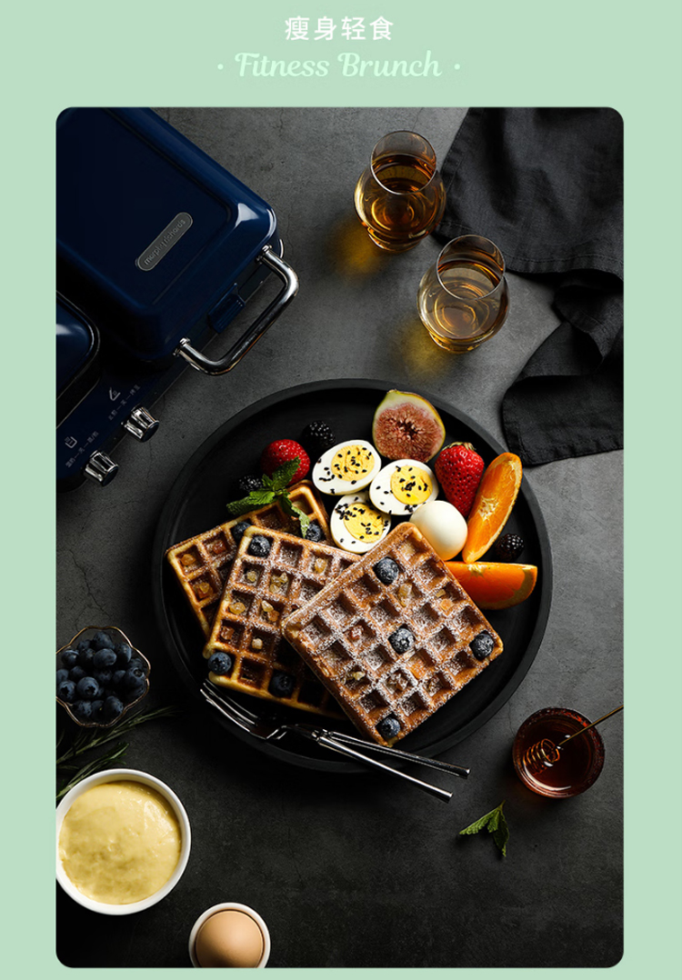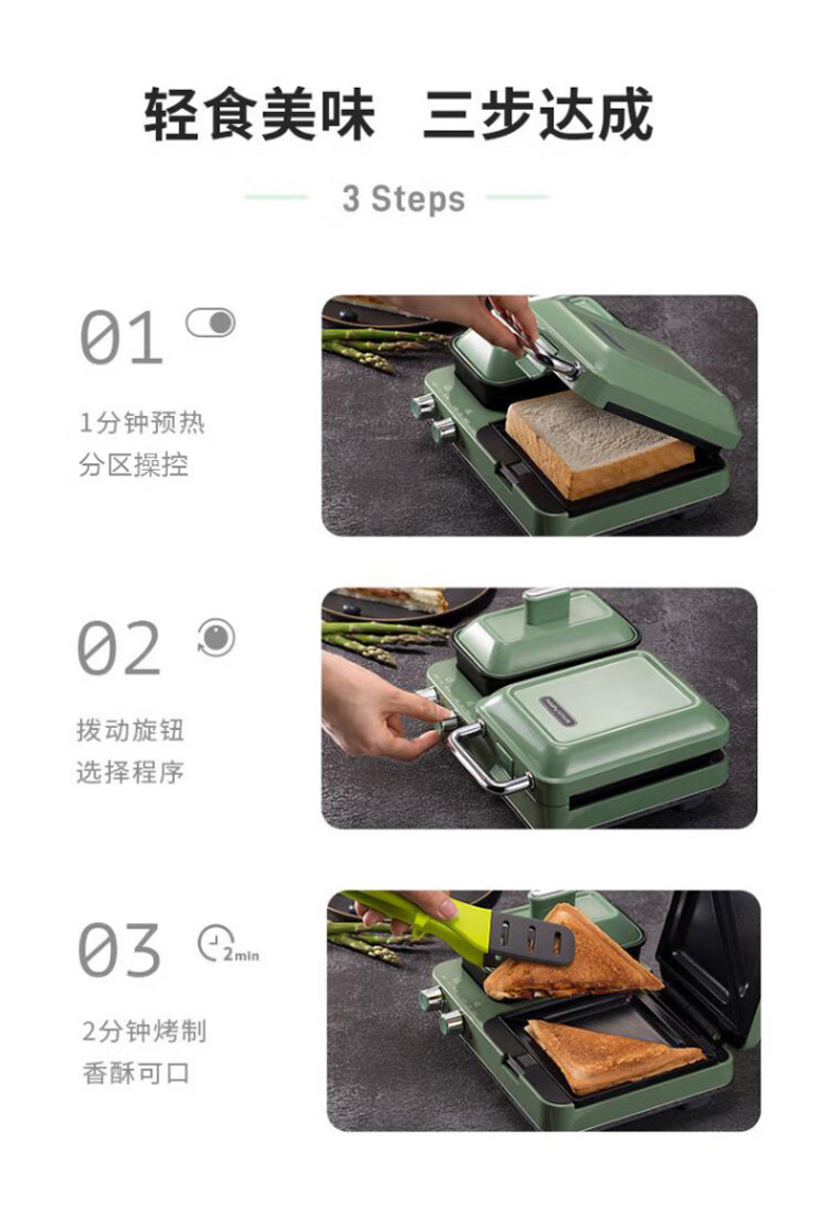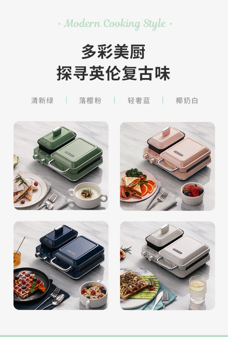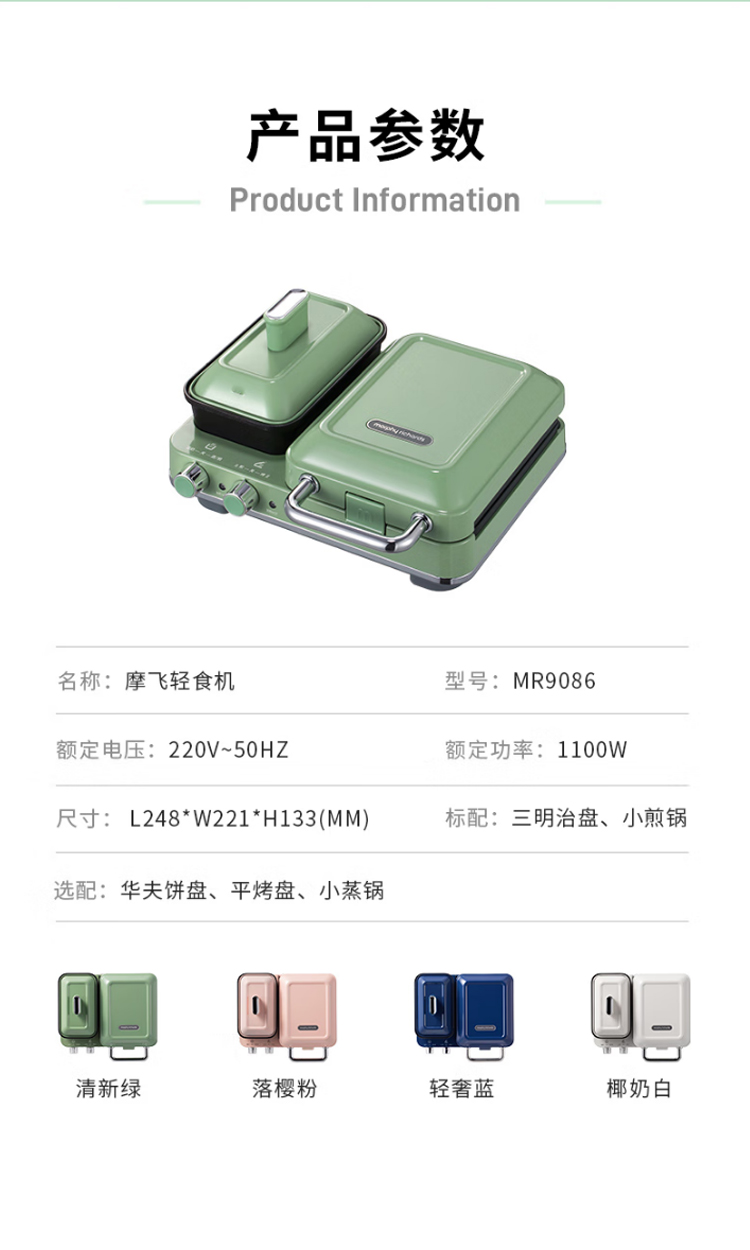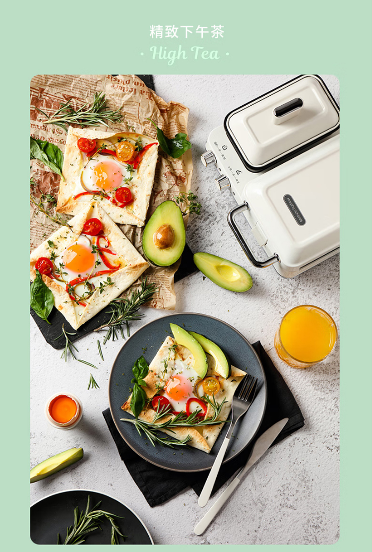 摩飞电器(Morphyrichards)早餐机电饼铛家用三明治机电饼档家庭用 多功能双区料理轻食机面包煎烤机蛋糕机 MR