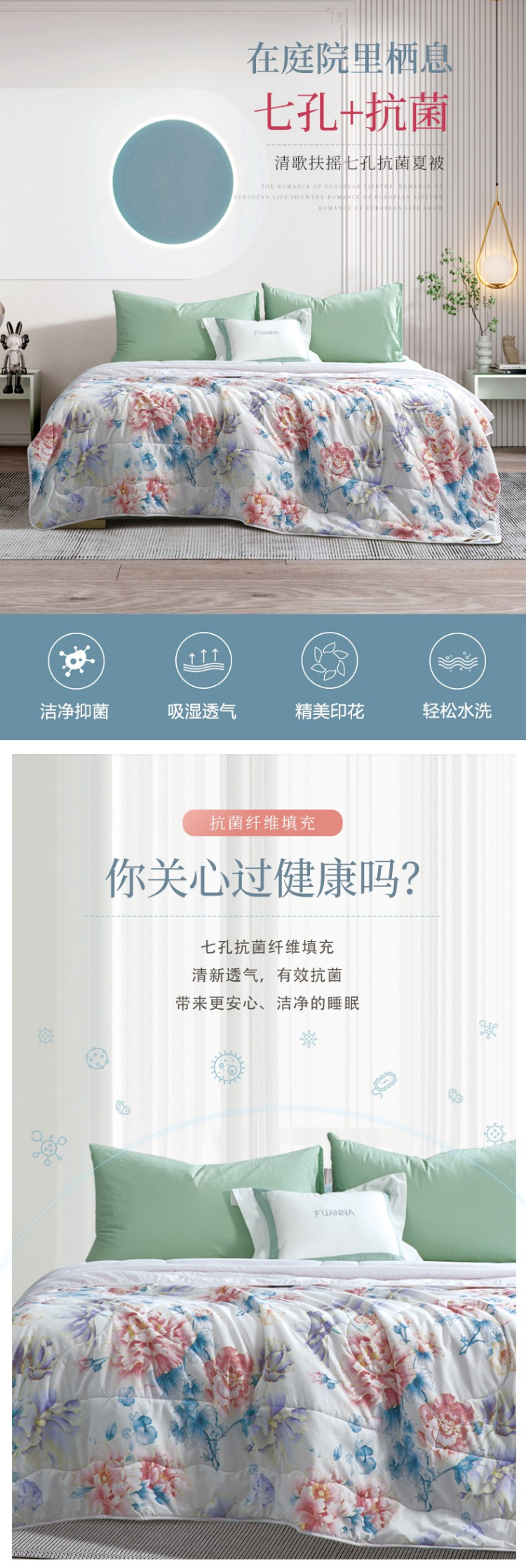 富安娜清歌扶摇七孔抗菌夏被/203*229/米/370g