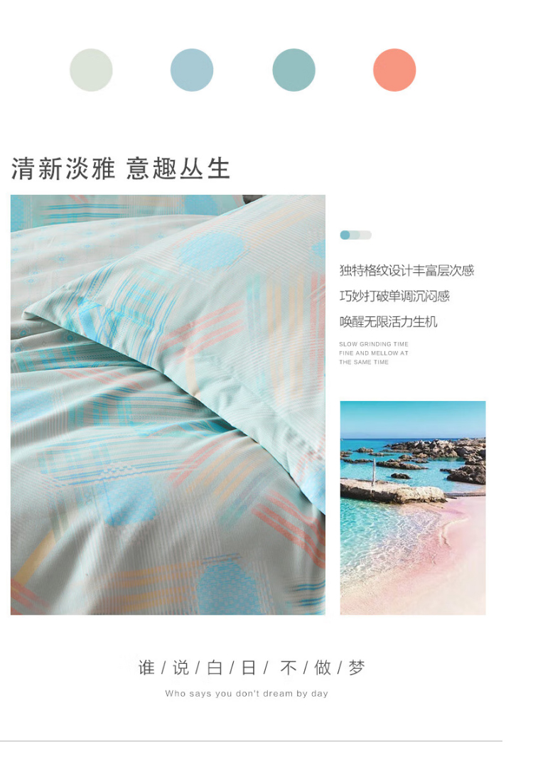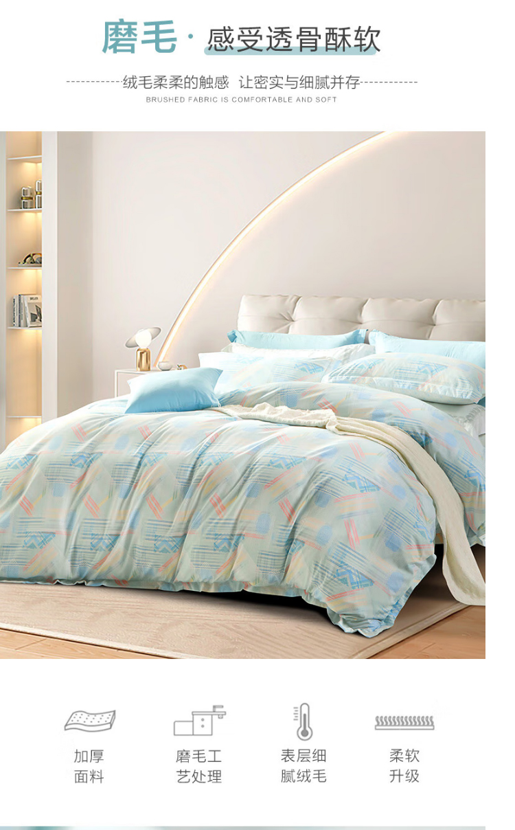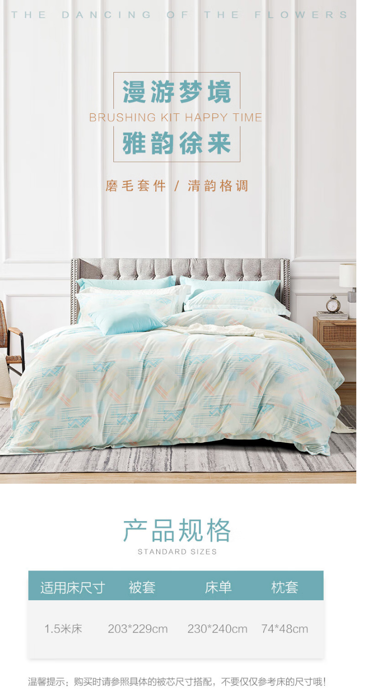 富安娜 床上四件套磨毛套件 清韵格调 (被套203*229cm)