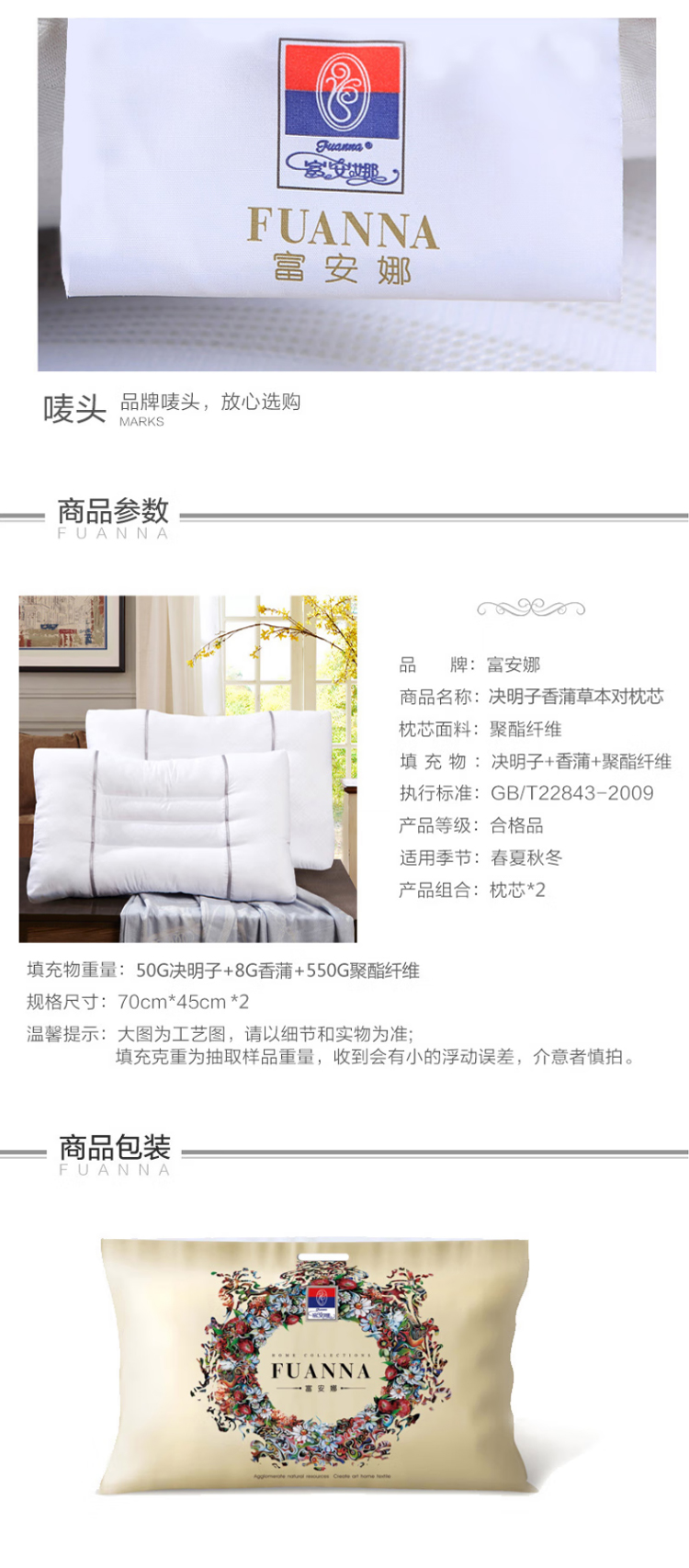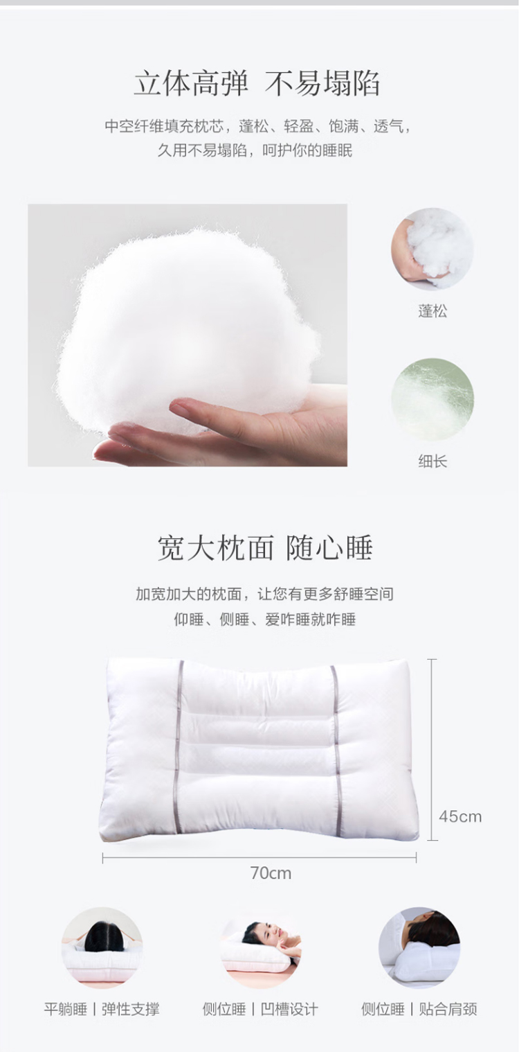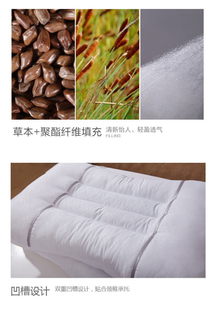 富安娜家纺舒适枕芯【精选】 艾草麦饭石防螨分区枕 70*45cm