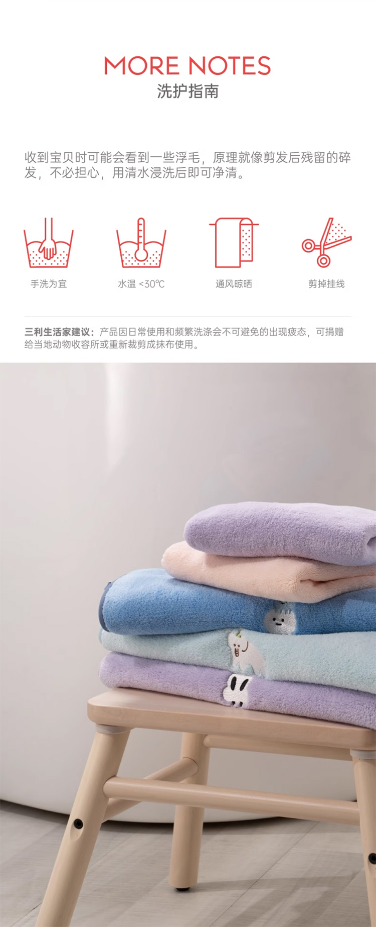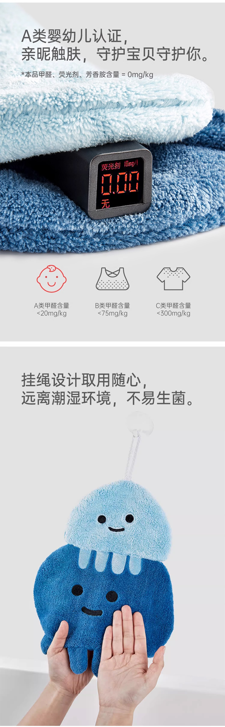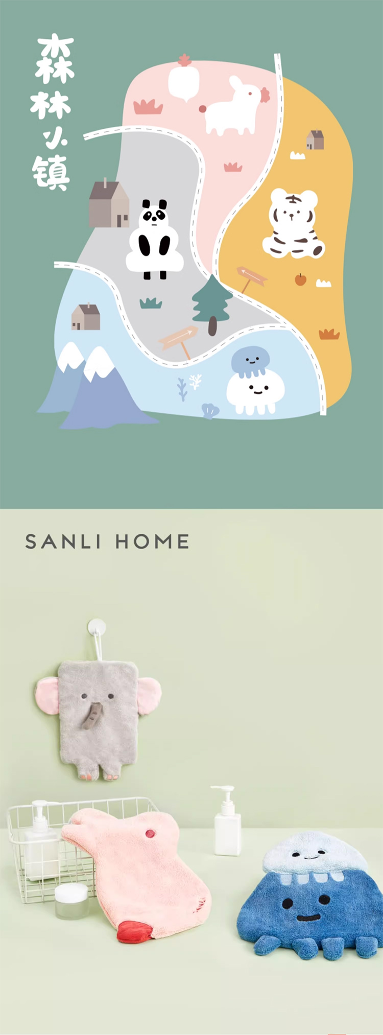 三利擦手巾挂式吸水速干卡通可爱加厚方巾小毛巾儿童卫生间抹手布
