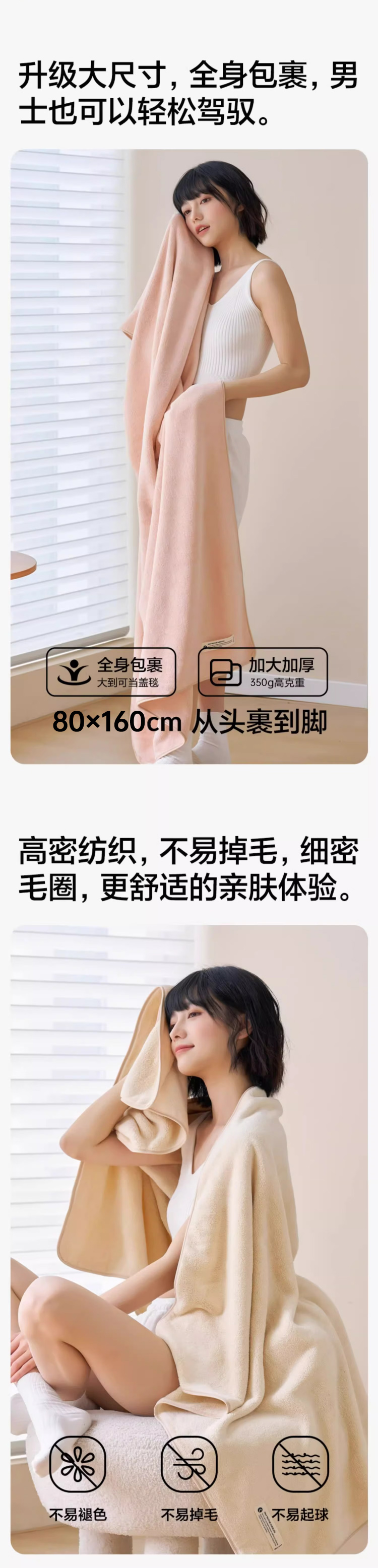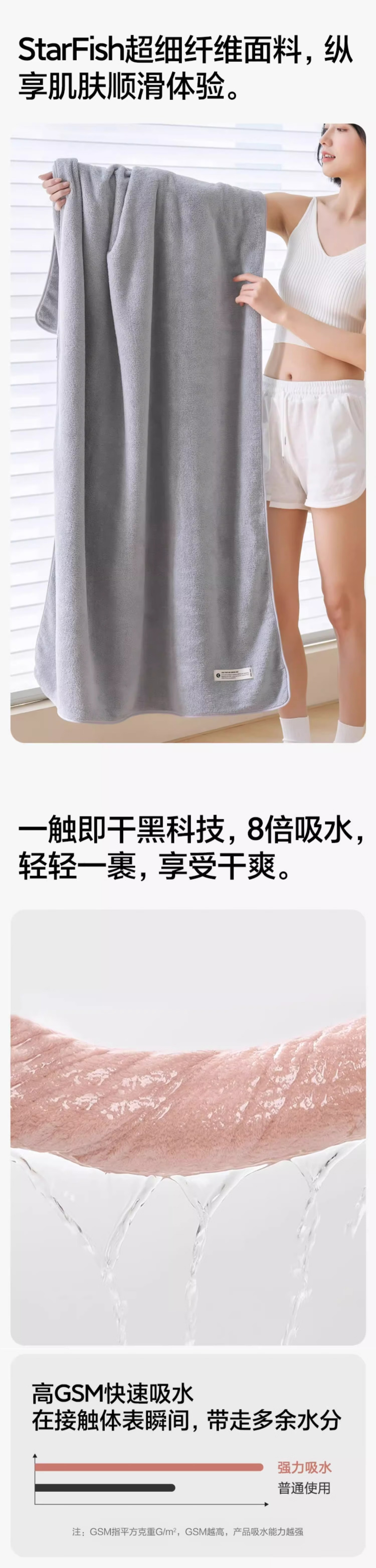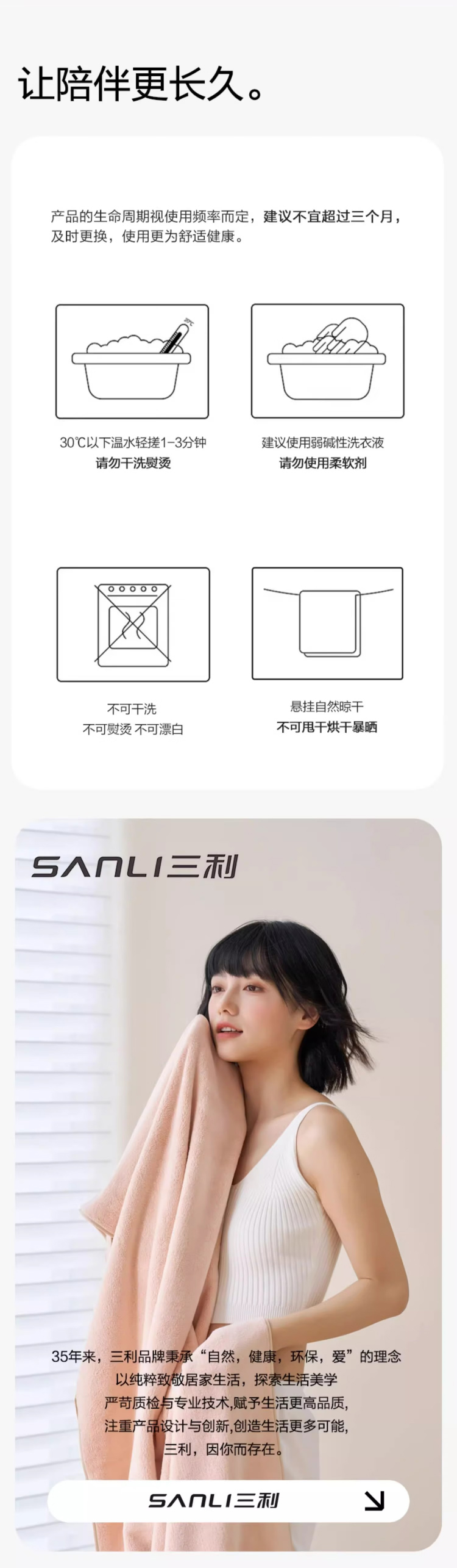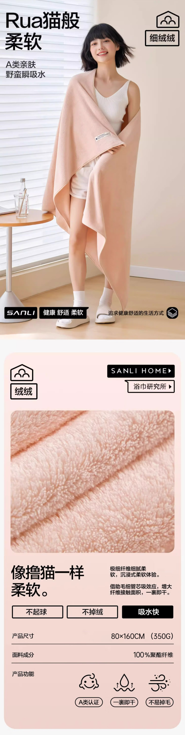 三利抗菌加大浴巾A类柔软吸水裹身巾速干洗澡巾