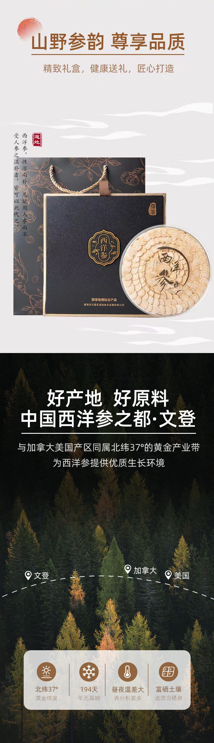 文登西洋参至尊礼盒 1.4cm150g 优质花旗参 巴拿马金奖