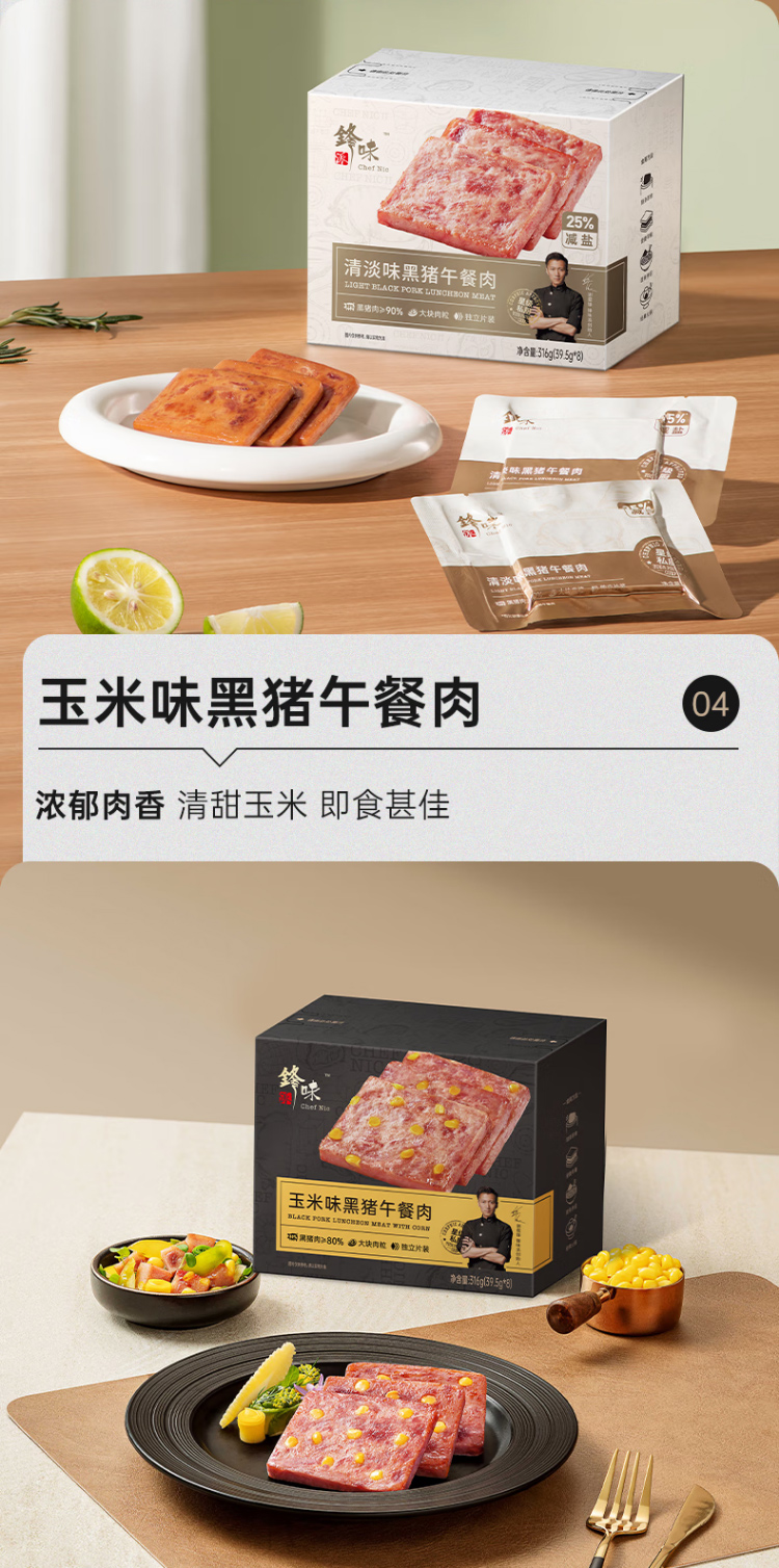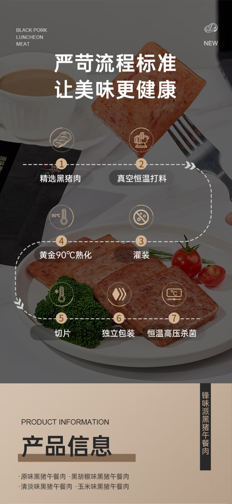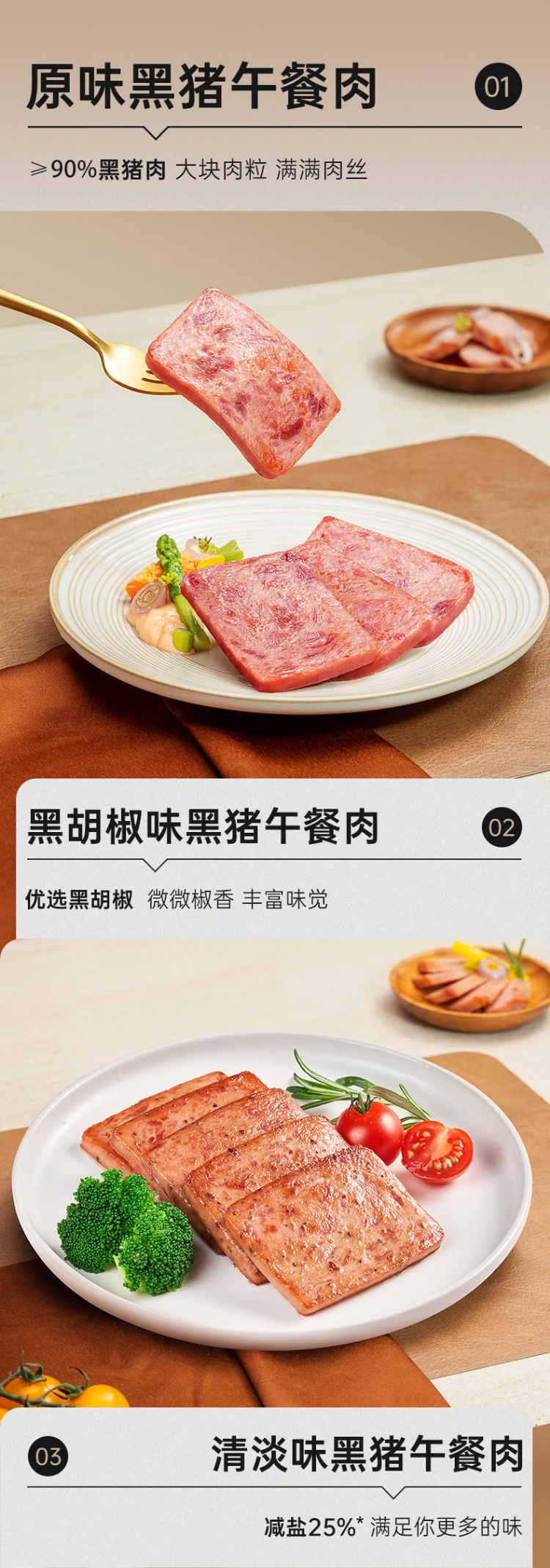 锋味派黑猪午餐肉独立片装包装开袋即食儿童早餐零食速食火腿香肠肉罐头