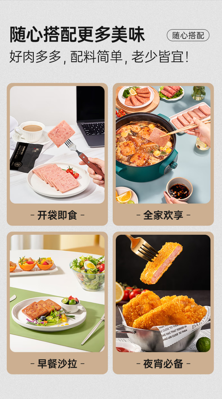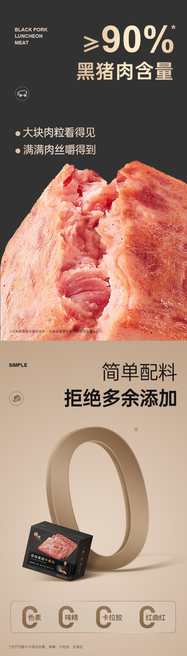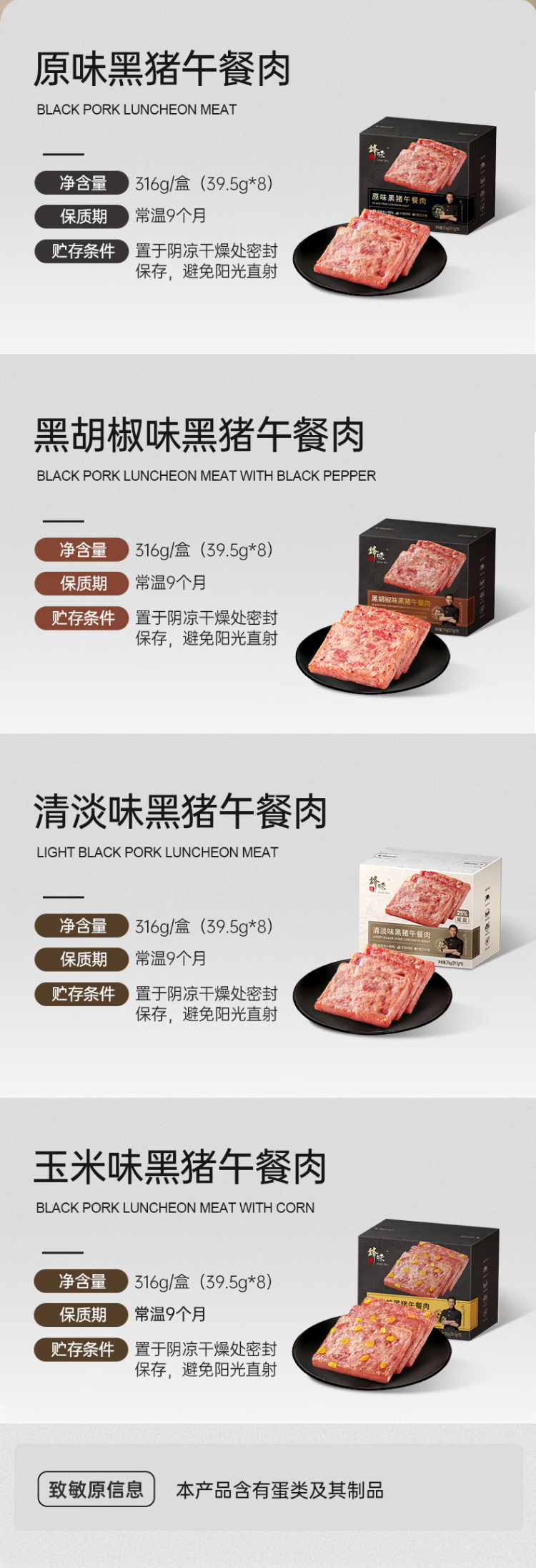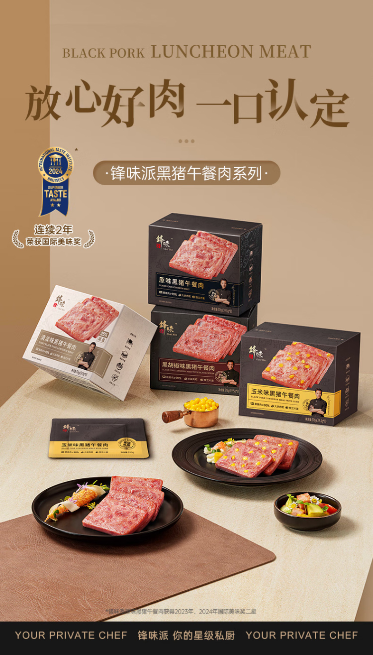 锋味派黑猪午餐肉独立片装包装开袋即食儿童早餐零食速食火腿香肠肉罐头