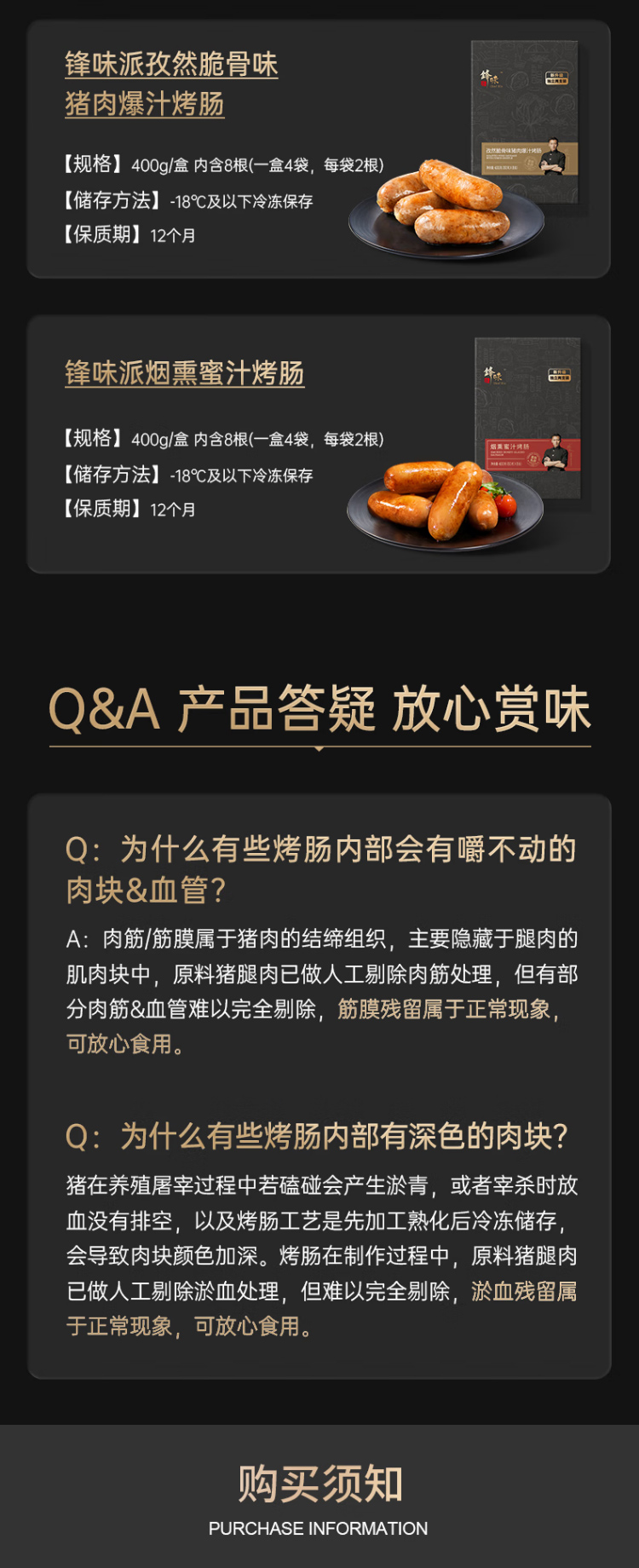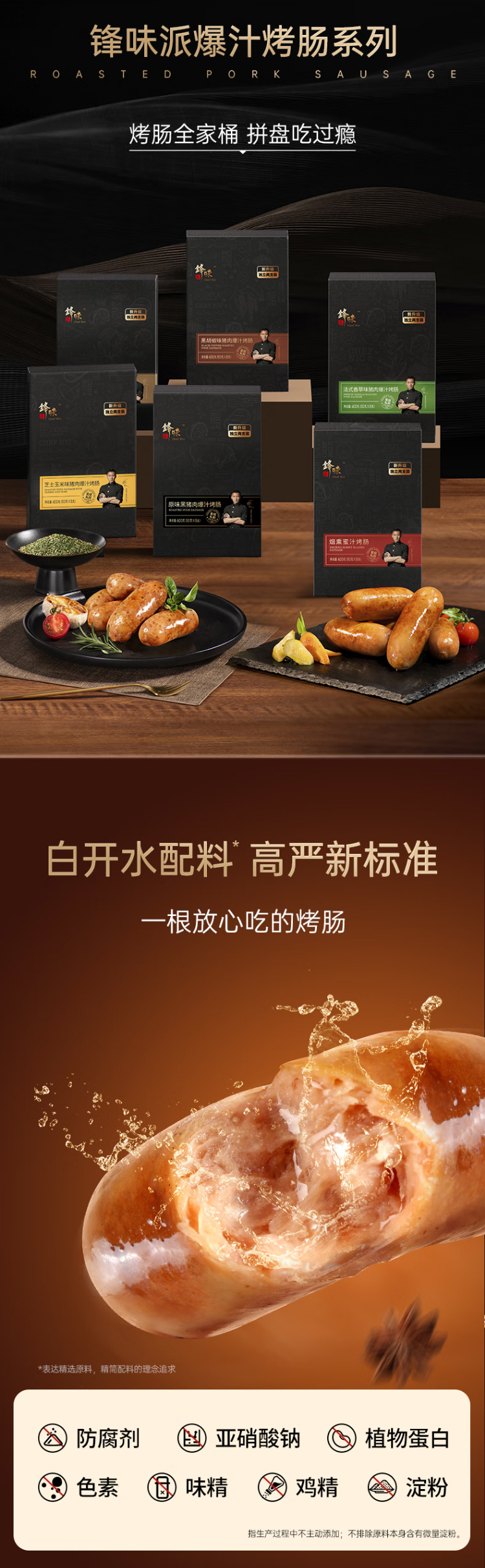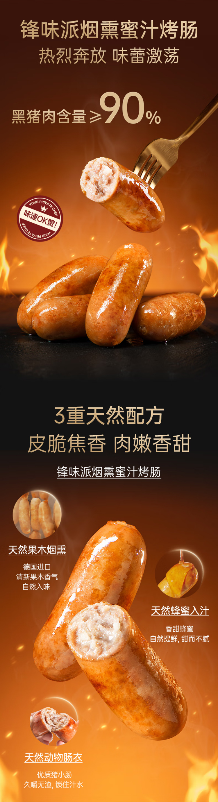 味派火山石烤肠纯肉香肠早餐火腿肠台湾脆皮热狗肠烧烤空炸食材半成品