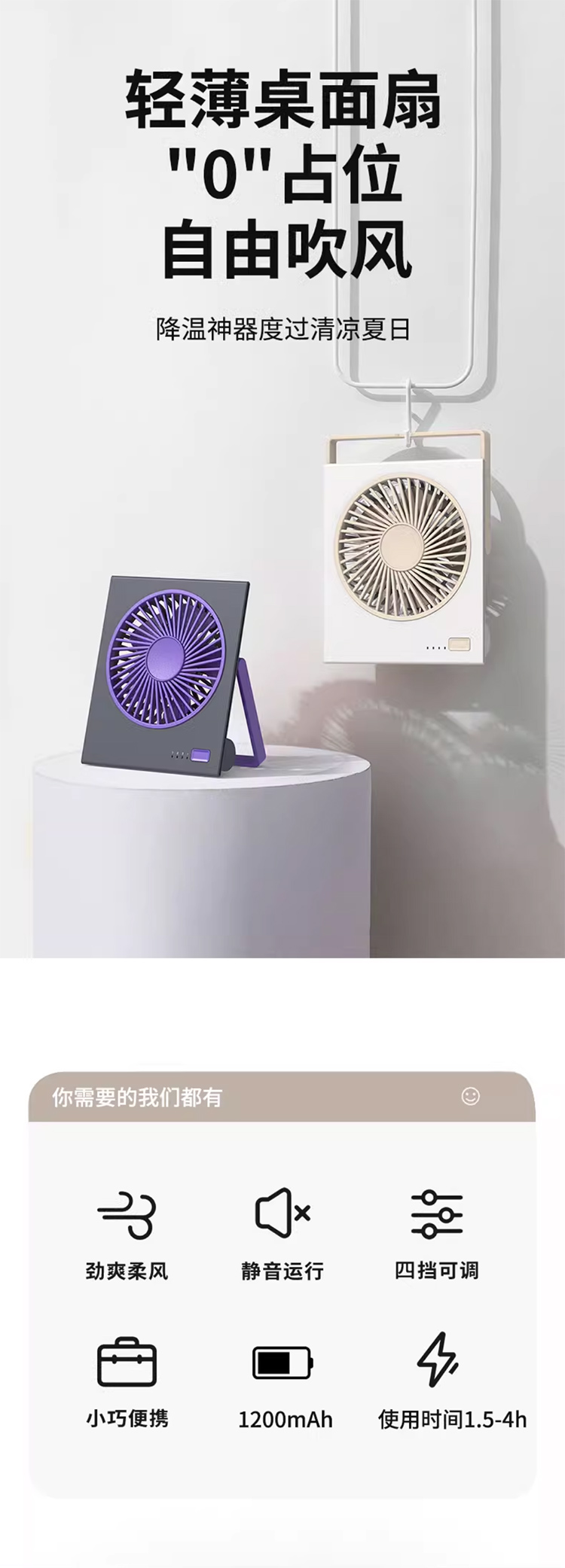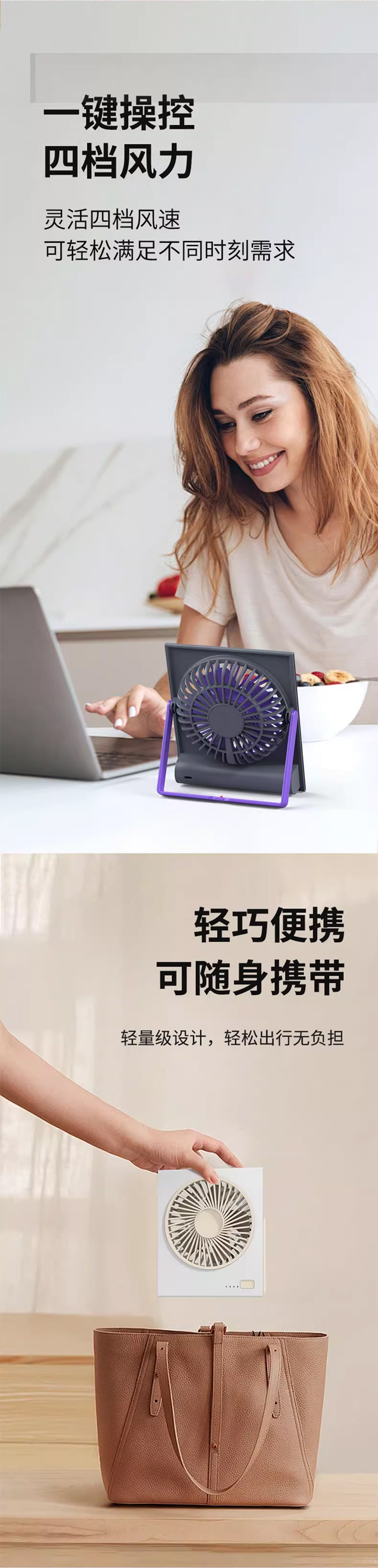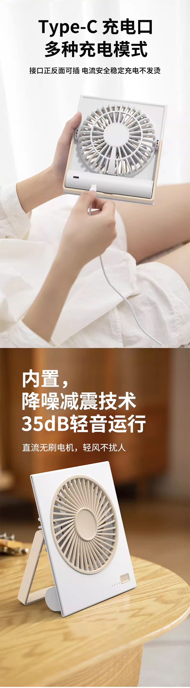桌面风扇2025新款超静音迷你便携式小型卡片大风力壁挂可折叠typec充电小风扇学生宿舍床上超薄电风扇