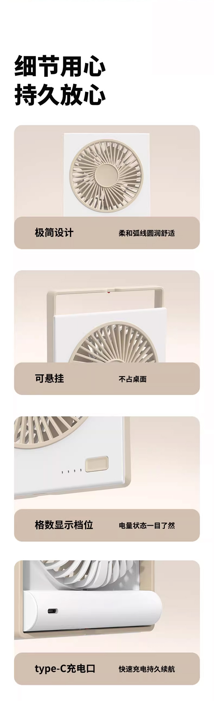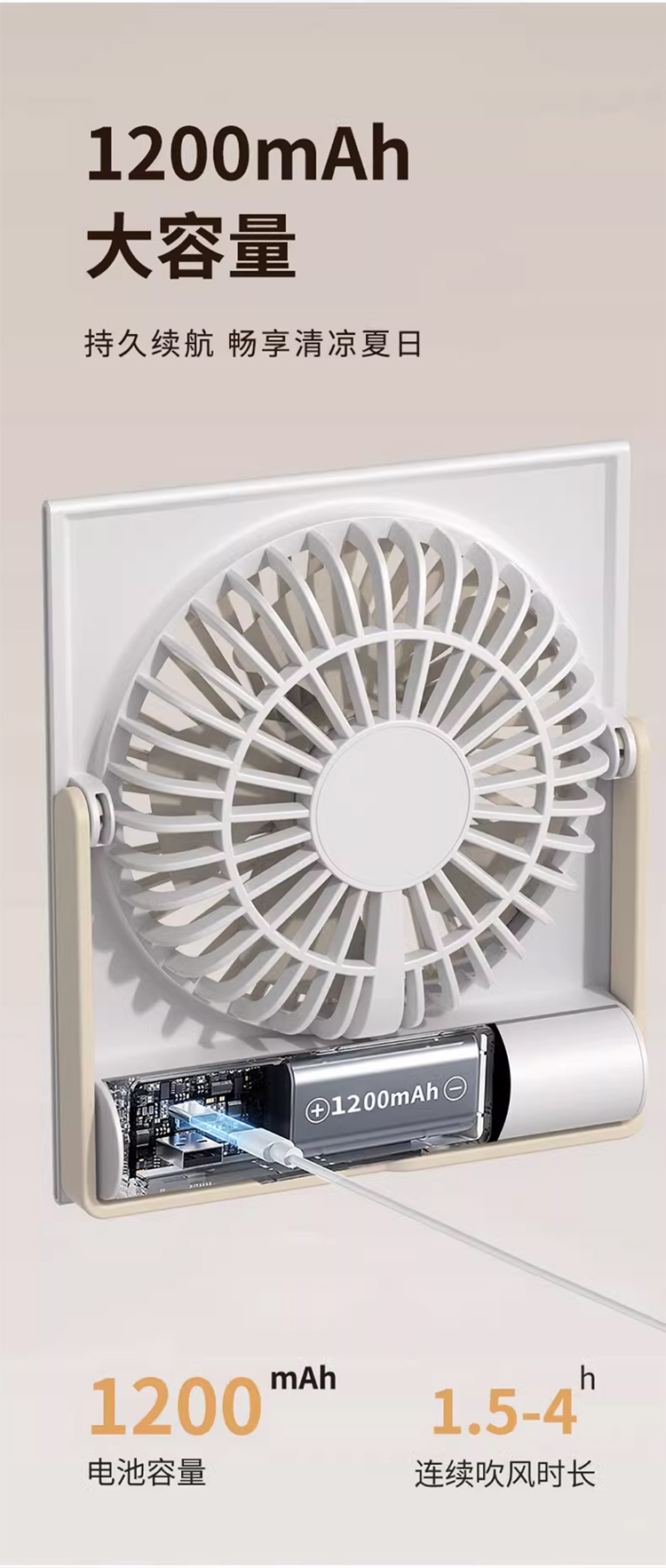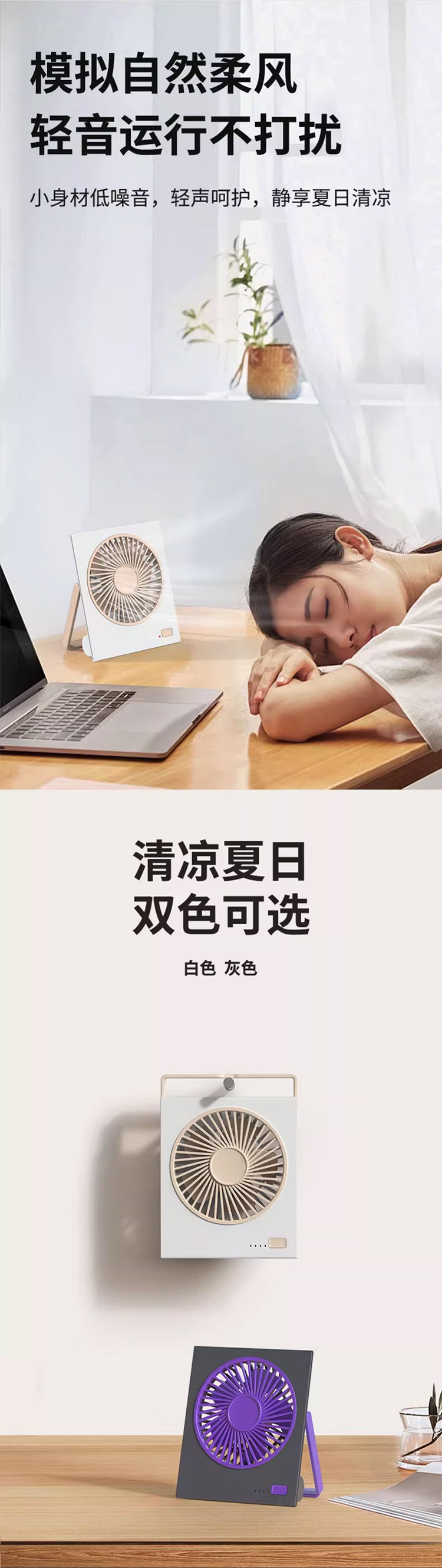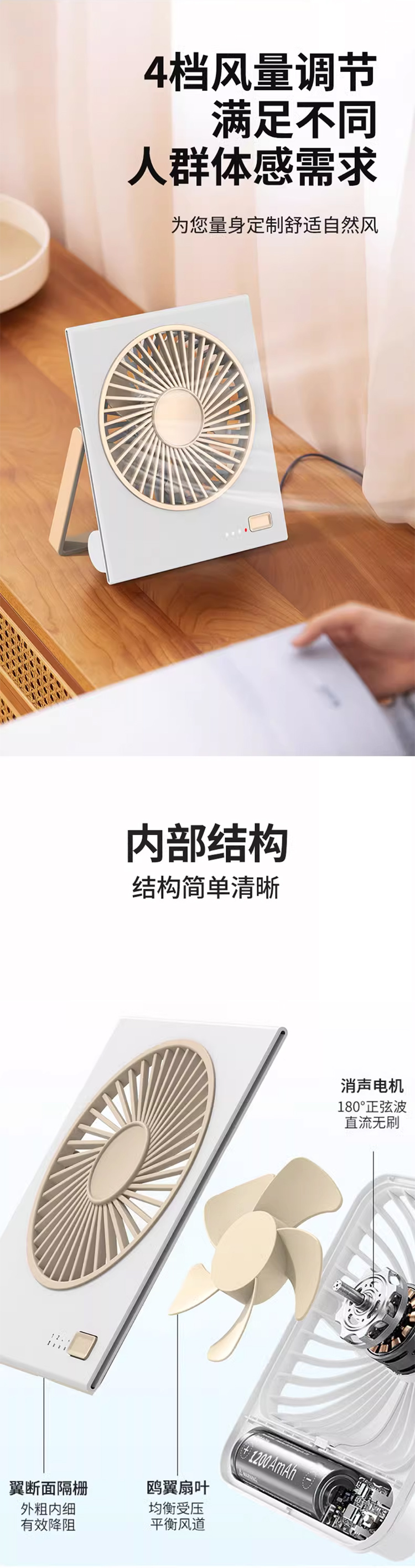 桌面风扇2025新款超静音迷你便携式小型卡片大风力壁挂可折叠typec充电小风扇学生宿舍床上超薄电风扇