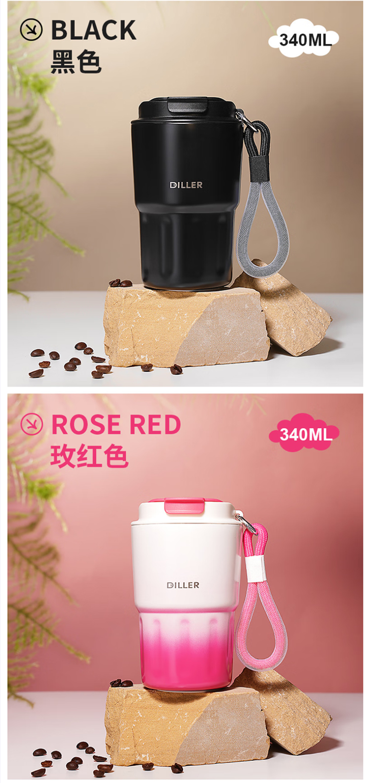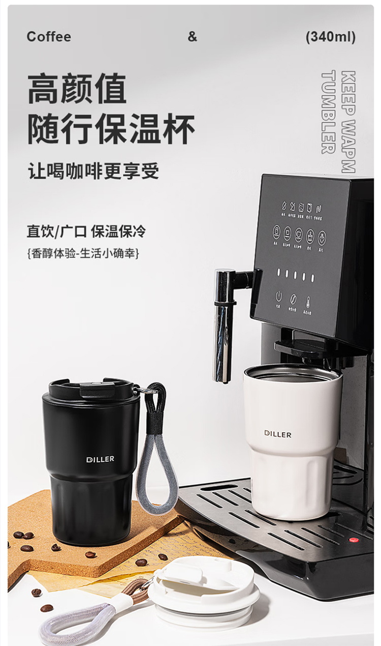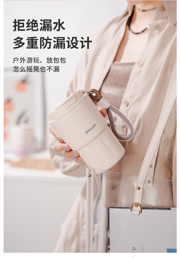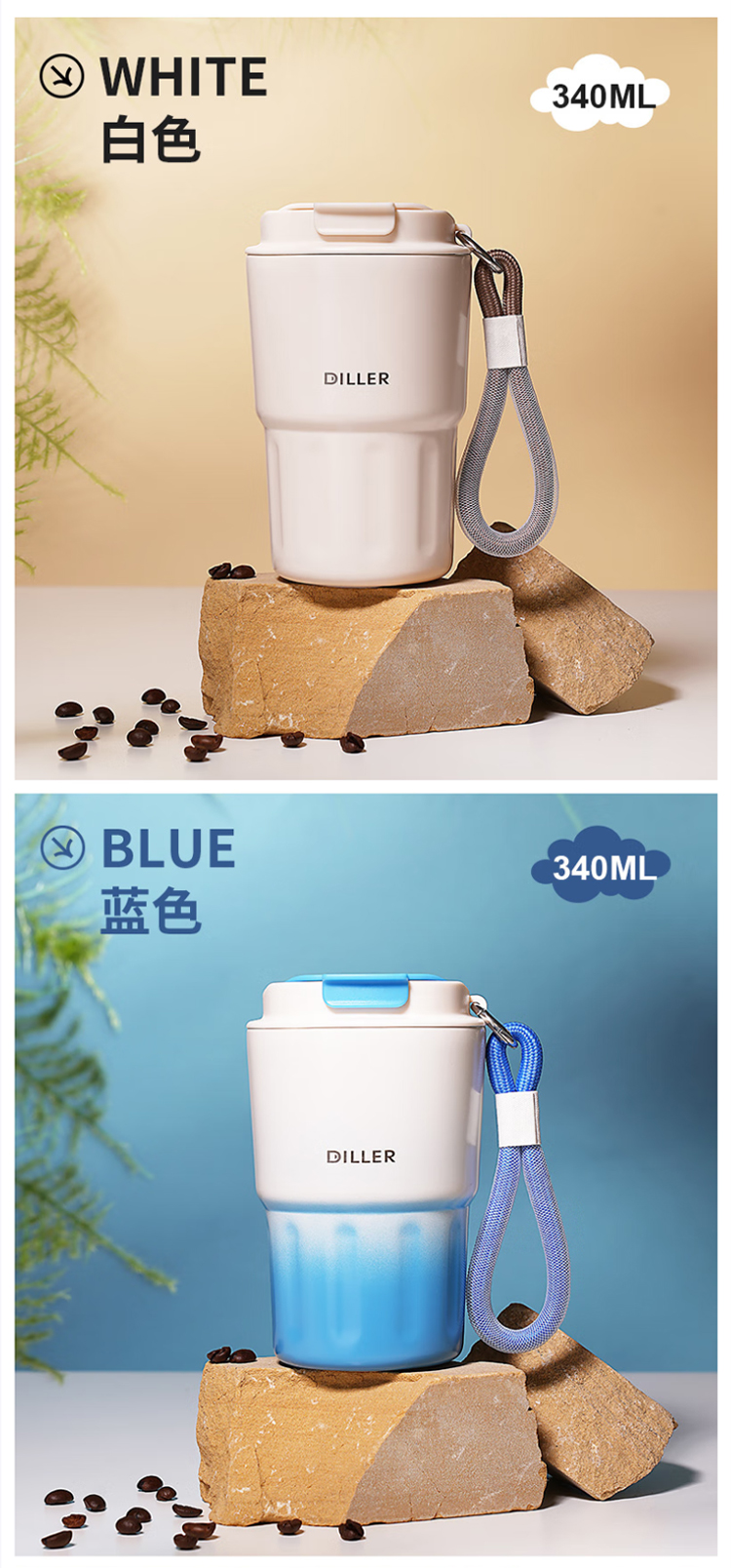 Diller简约高颜值咖啡保温杯便携双饮口男女随行杯子礼品