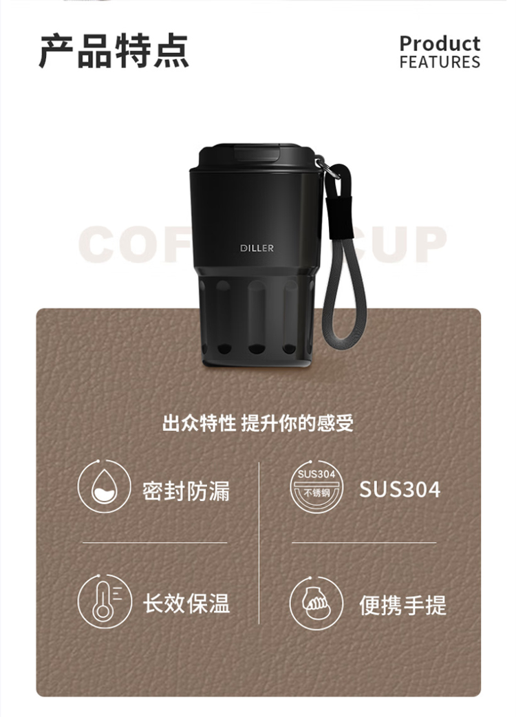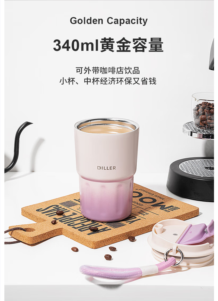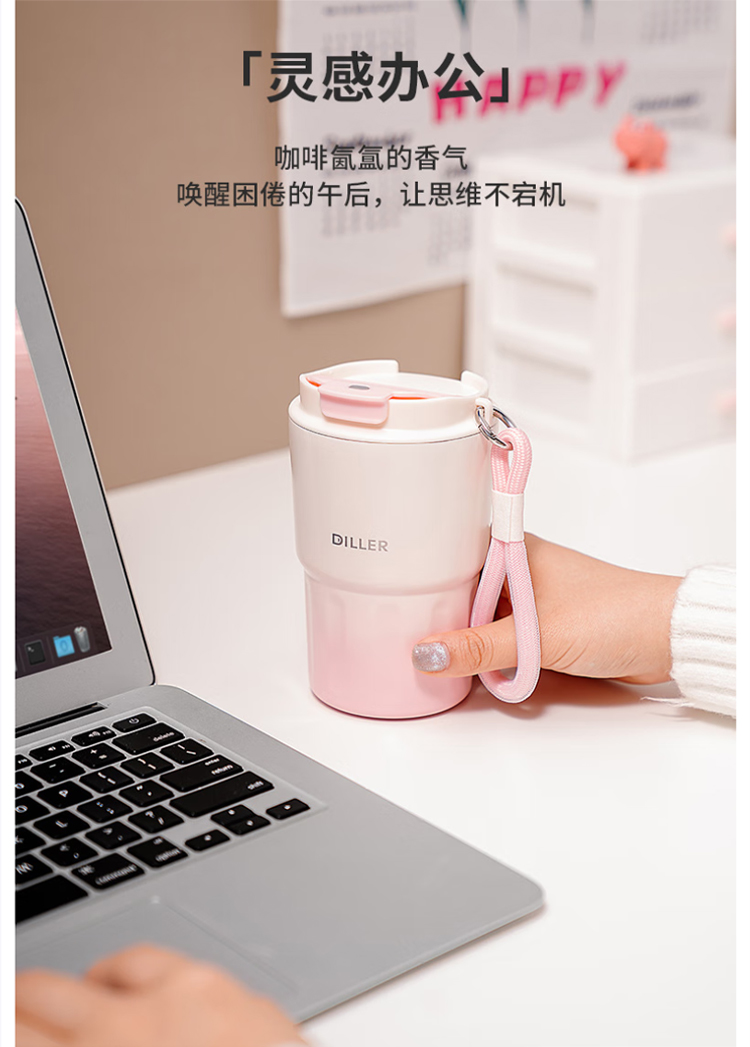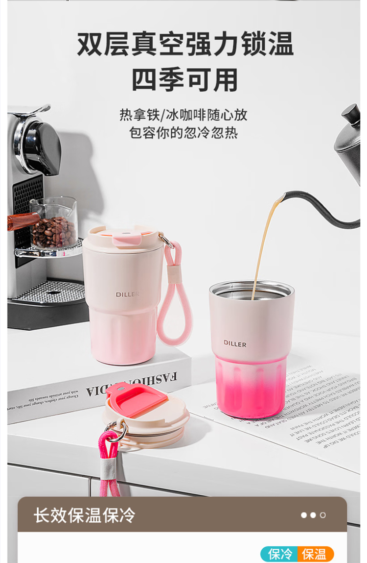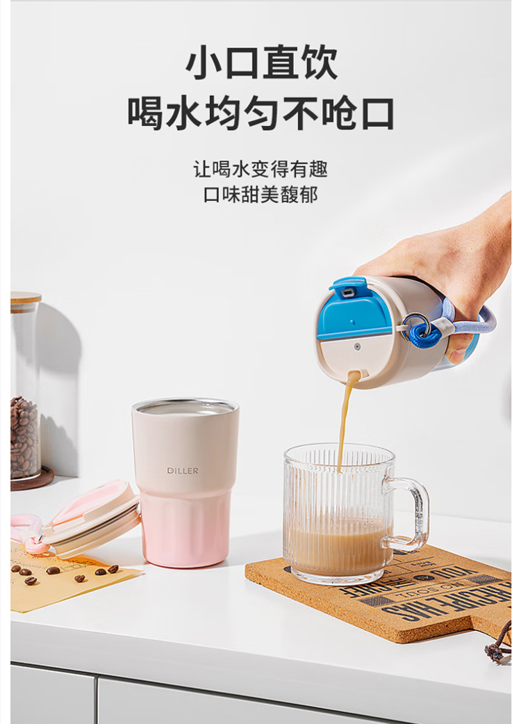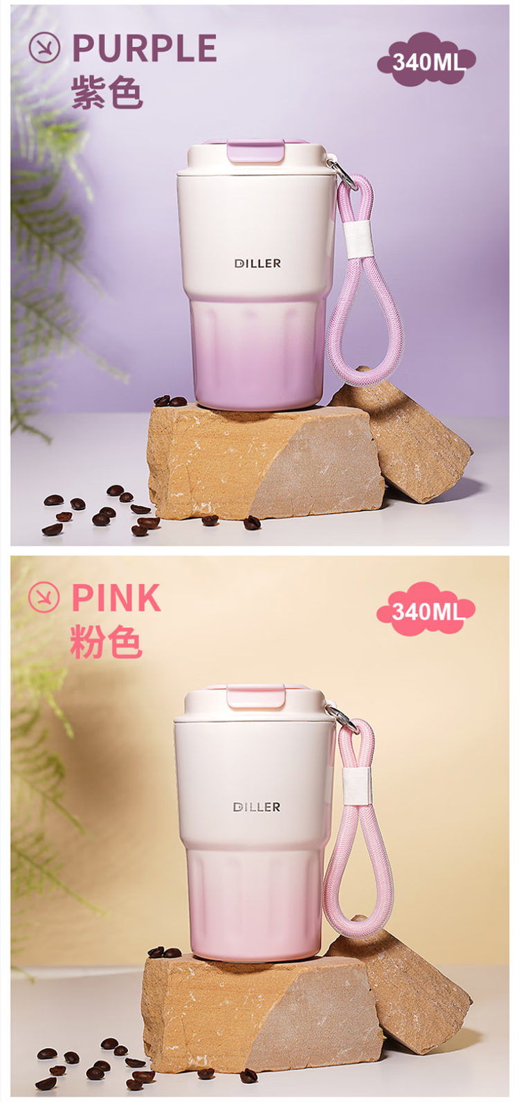 Diller简约高颜值咖啡保温杯便携双饮口男女随行杯子礼品