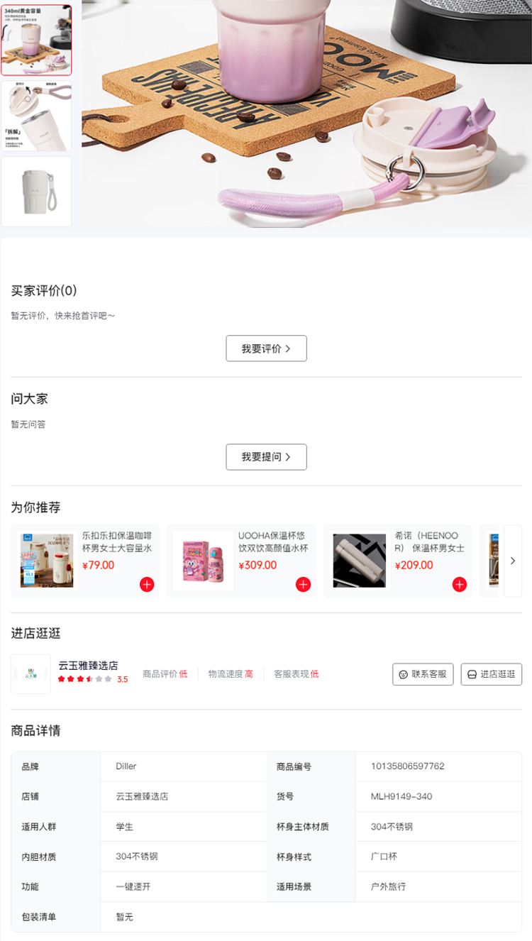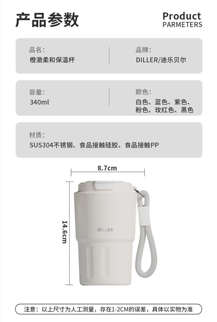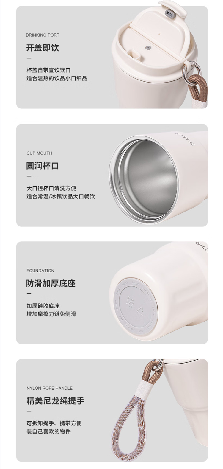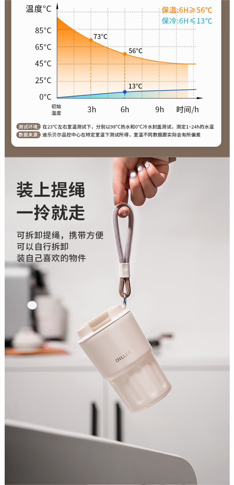 Diller简约高颜值咖啡保温杯便携双饮口男女随行杯子礼品
