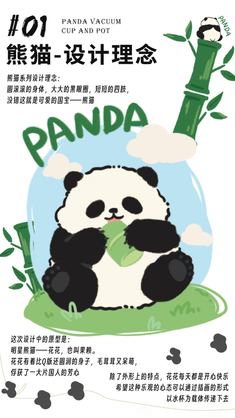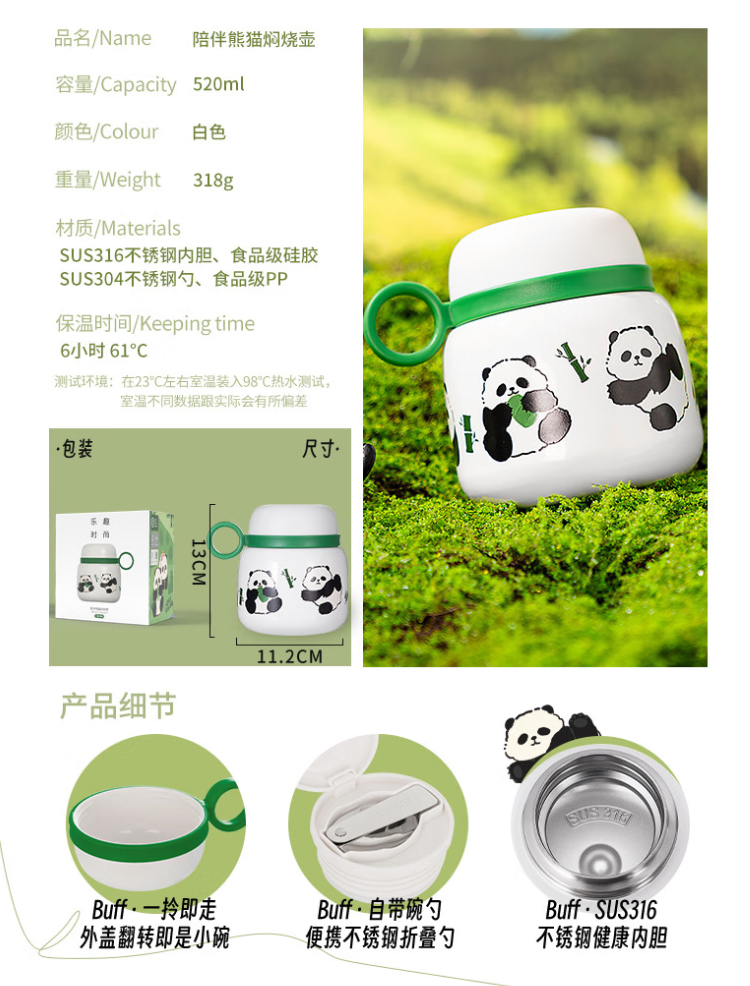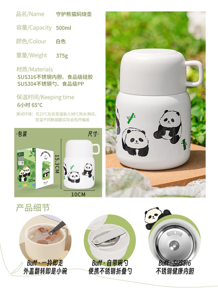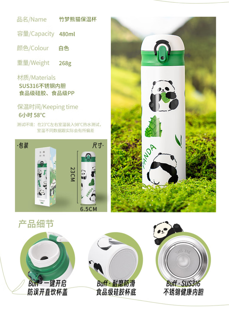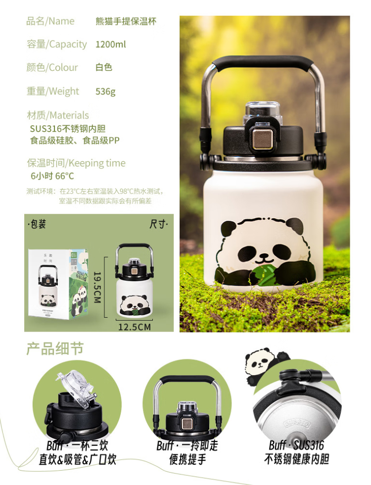 迪乐贝尔可爱熊猫系列周边纪念品伴手礼水杯316不锈钢便携提手保温杯