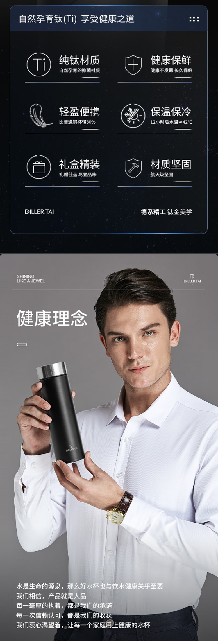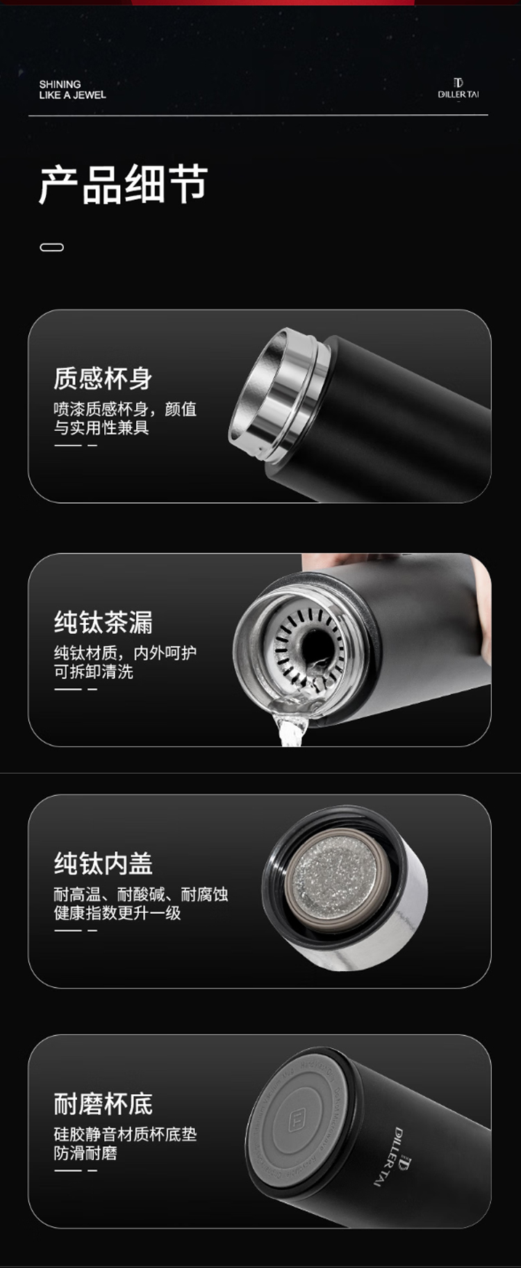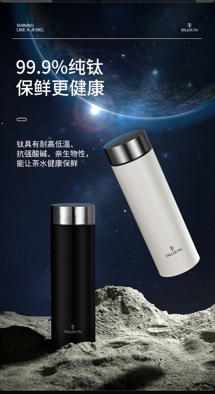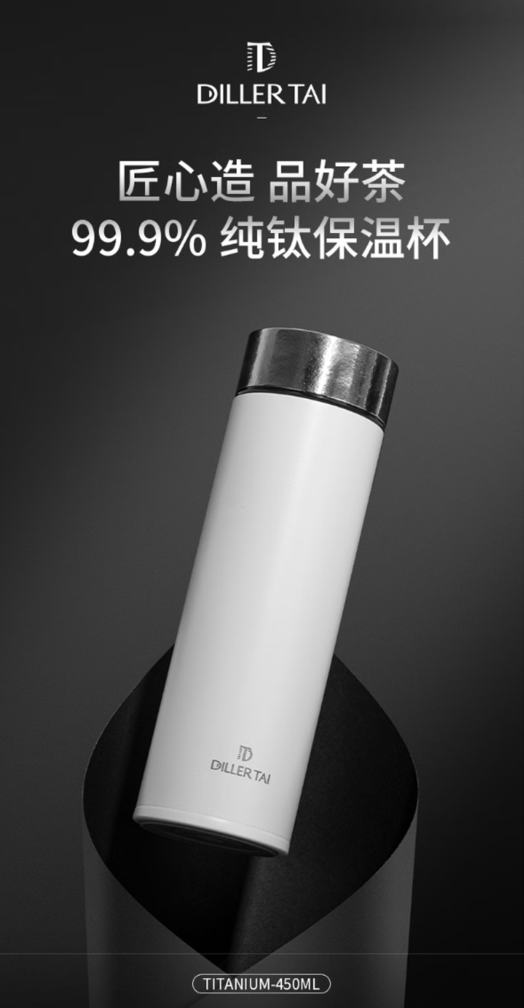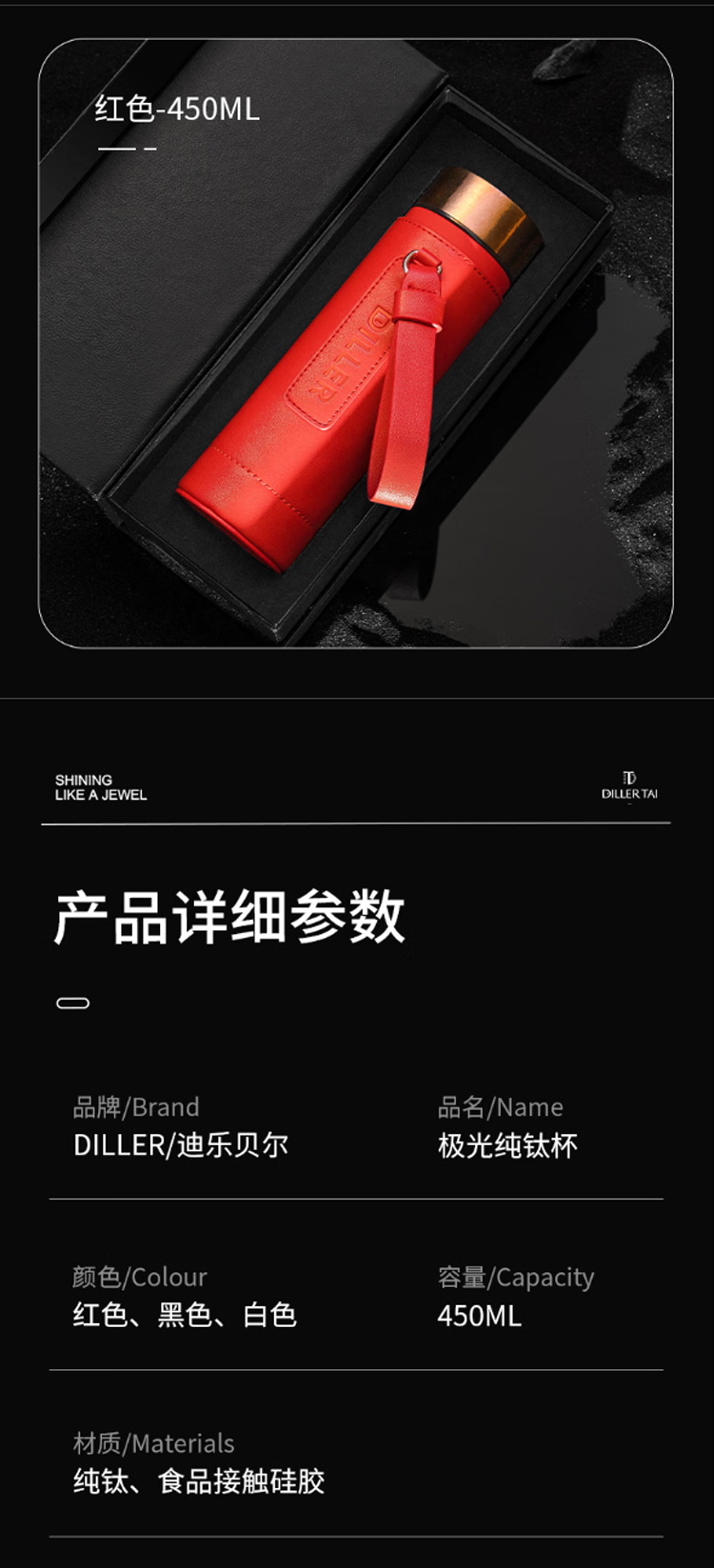 迪乐贝尔轻奢礼品纯钛保温杯高端商务新年送礼品水杯男士泡茶杯礼盒装 红色 450ml (礼盒装)