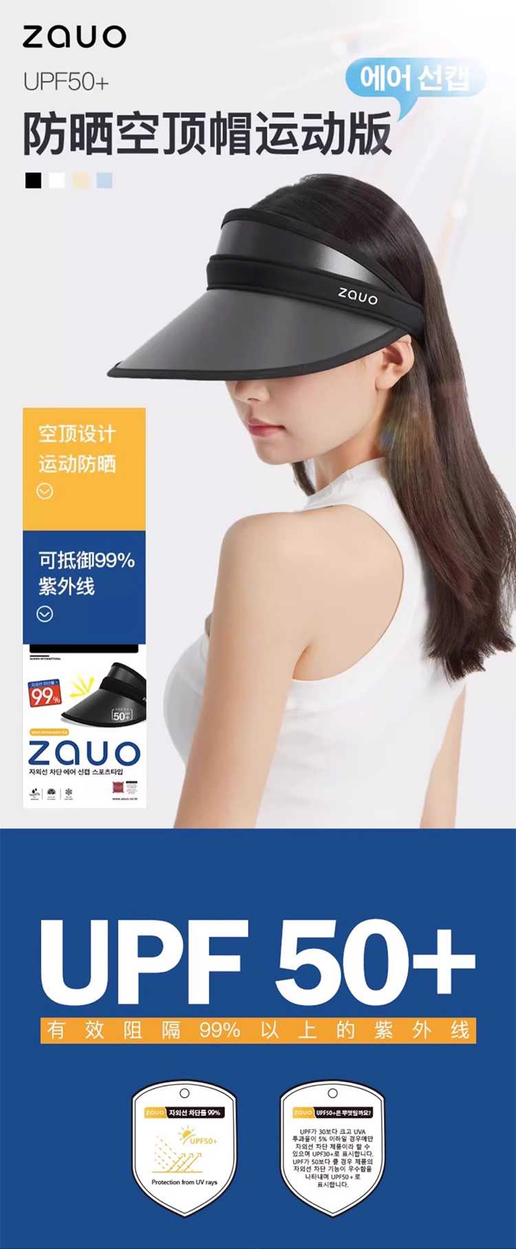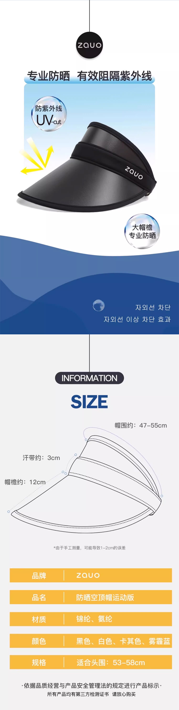 韩国zauo遮阳帽防晒帽女防紫外线夏季空顶沙滩帽太阳帽户外运动女