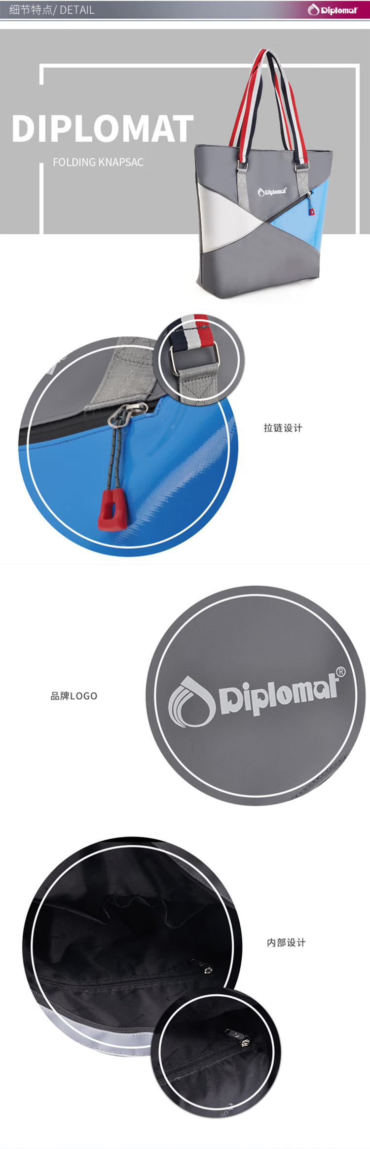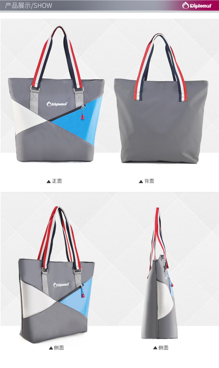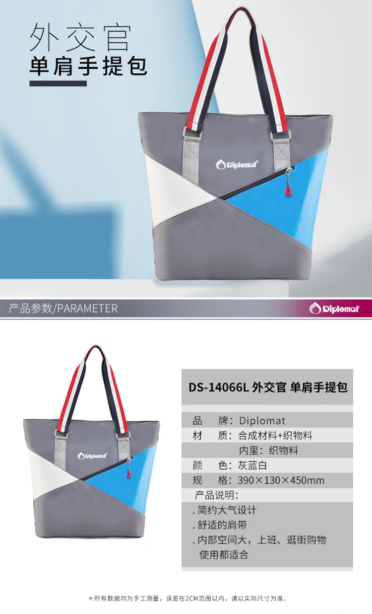 Diplomat外交官单肩通勤包女士男士旅行出差手提包DS-14066L 浅灰色