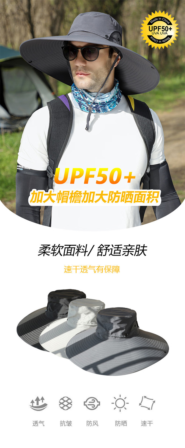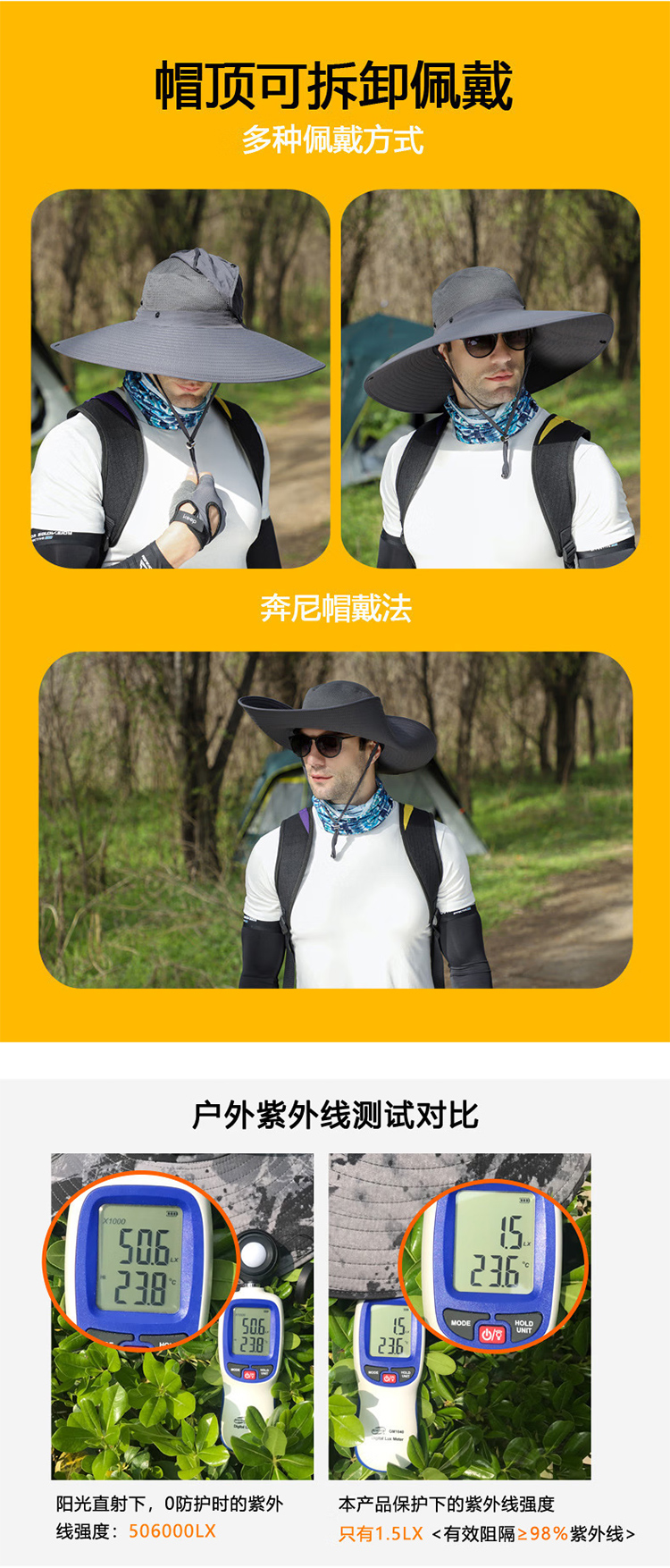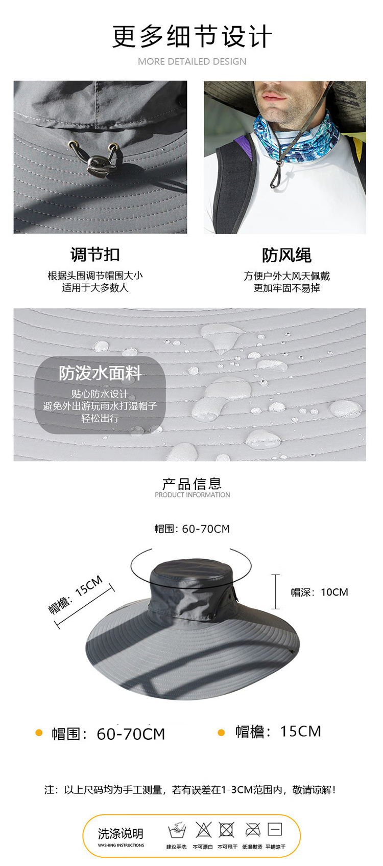 超大檐帽顶可拆卸披肩防晒帽