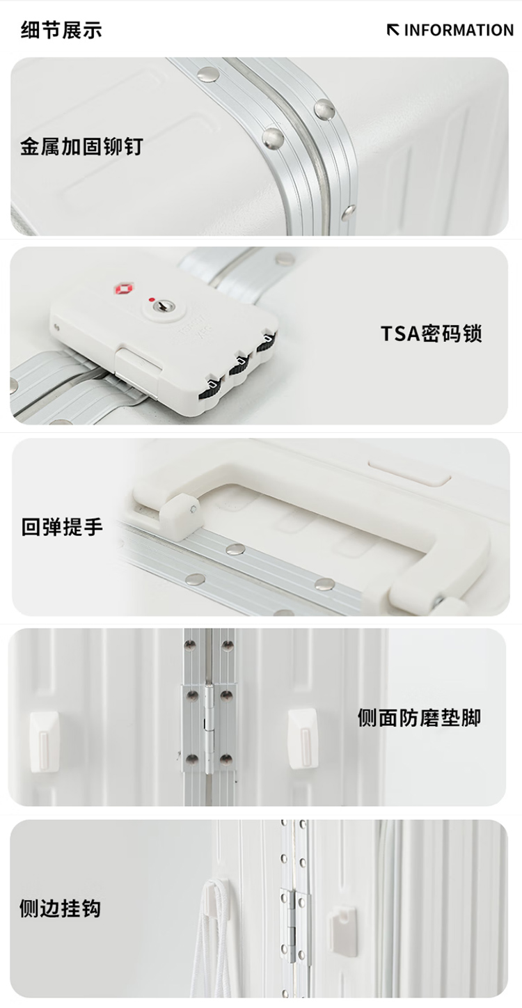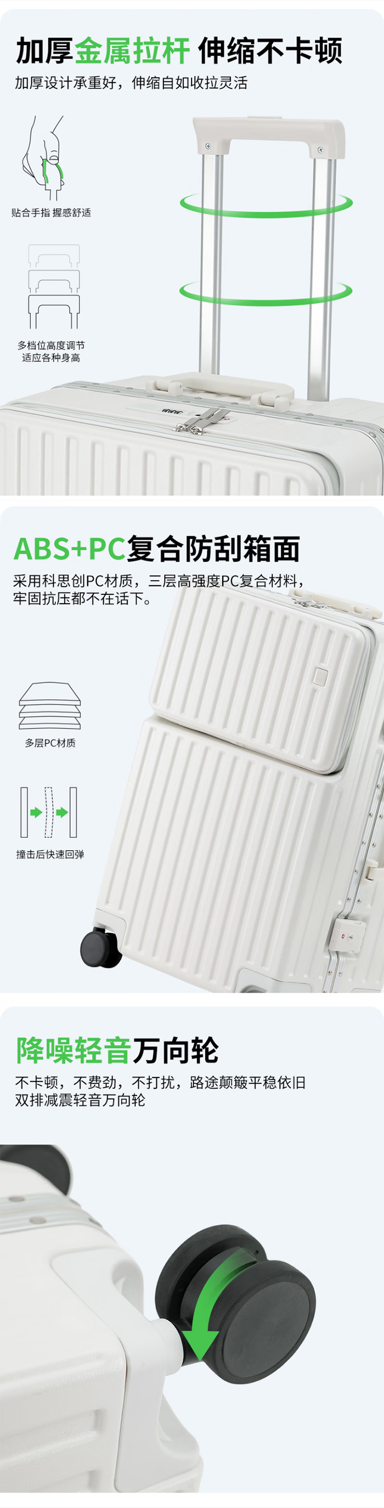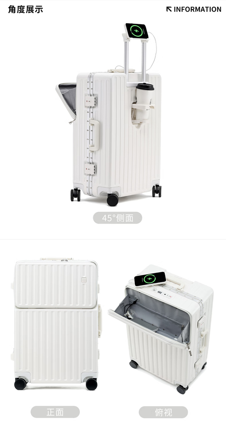 DULA铝框前开盖杯架行李箱拉杆箱USB旅行箱密码箱登机箱樱花粉20英寸