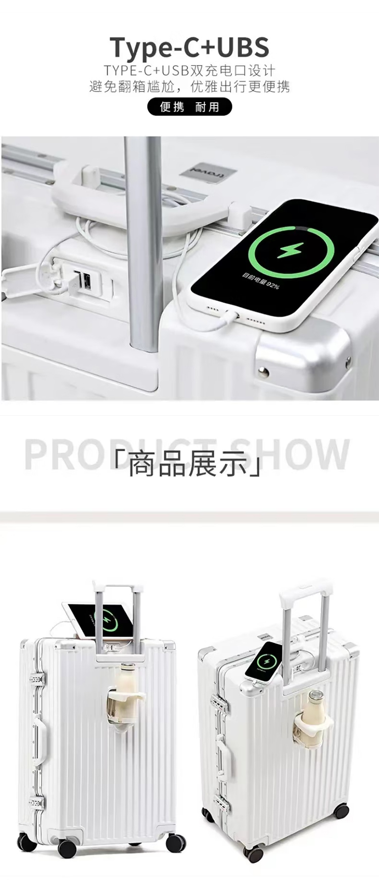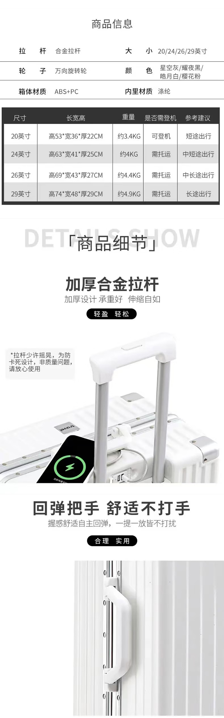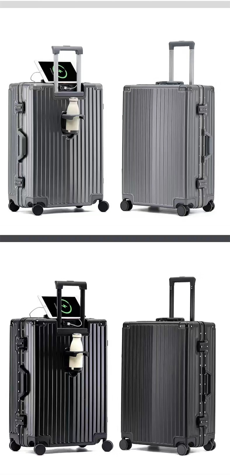 途帮(TOBOOG)多功能铝框行李箱女轻音万向轮包角防撞男卡扣密码拉杆箱PX2090 耀夜黑 20英寸