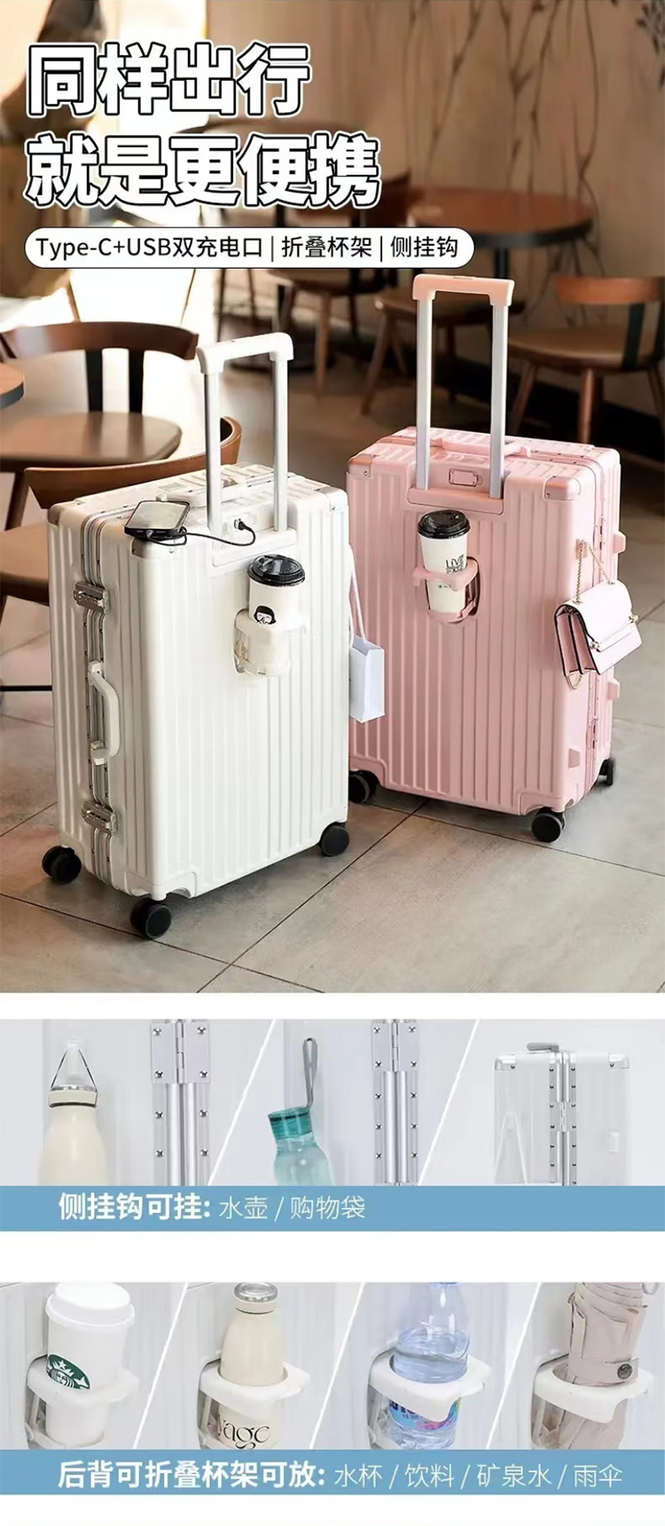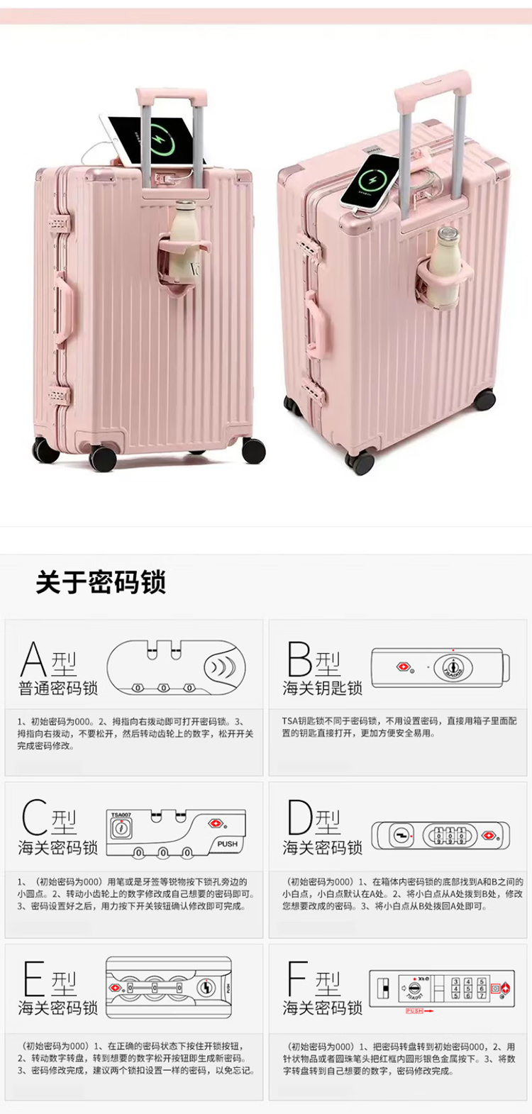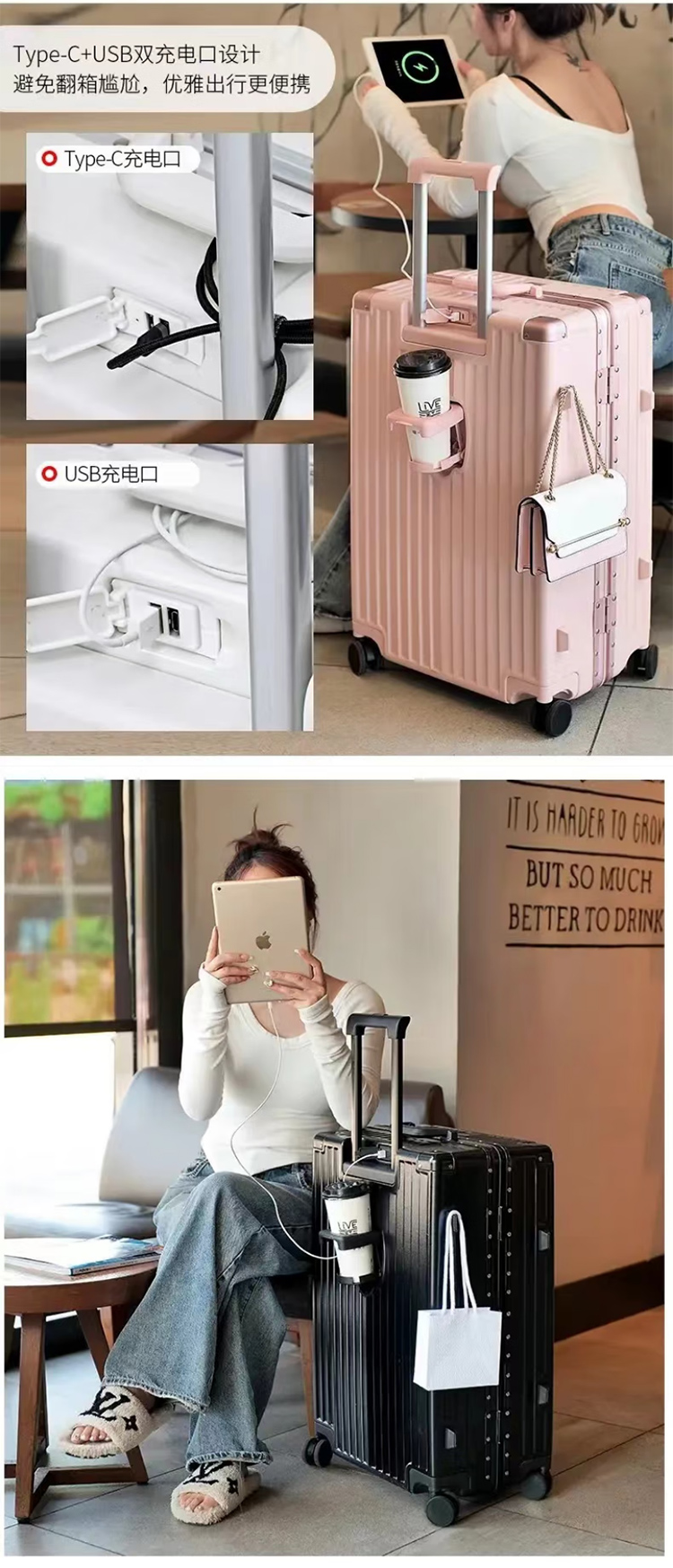 途帮(TOBOOG)多功能铝框行李箱女轻音万向轮包角防撞男卡扣密码拉杆箱PX2090 耀夜黑 20英寸