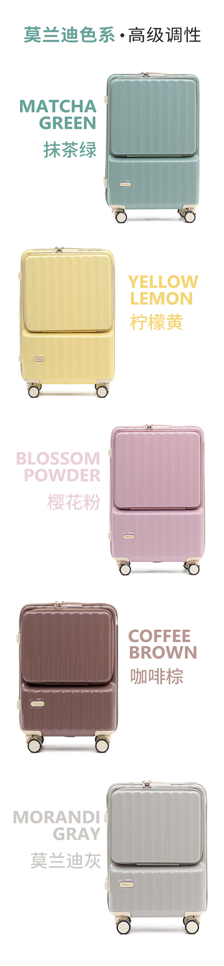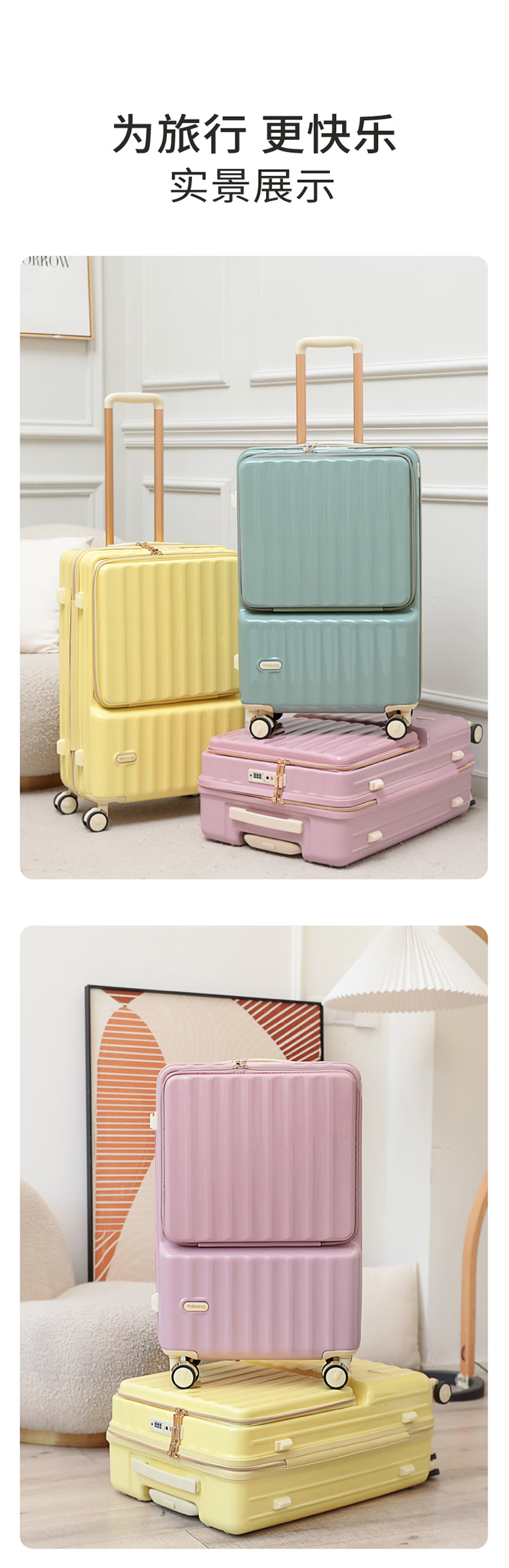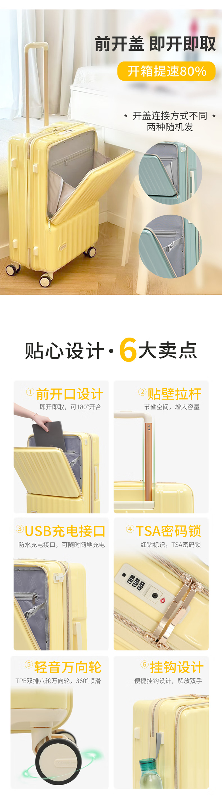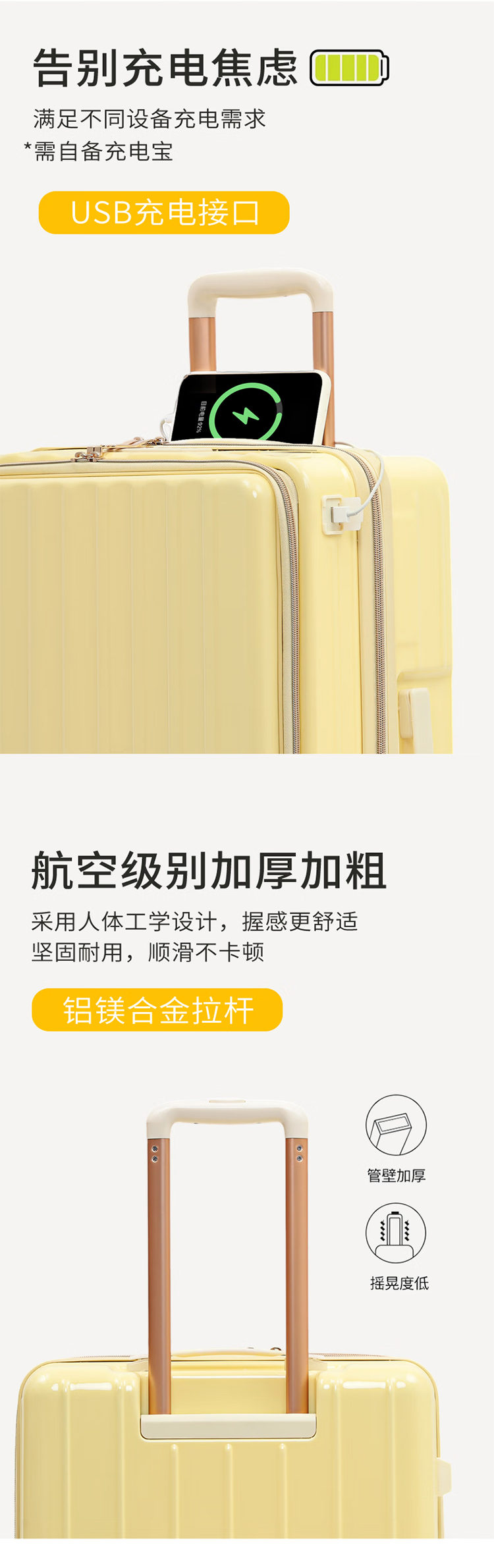 途帮(TOBOOG)前开口行李箱多功能TSA密码登机箱女轻音万向轮顺滑拉杆箱2109 柠檬黄 24英寸