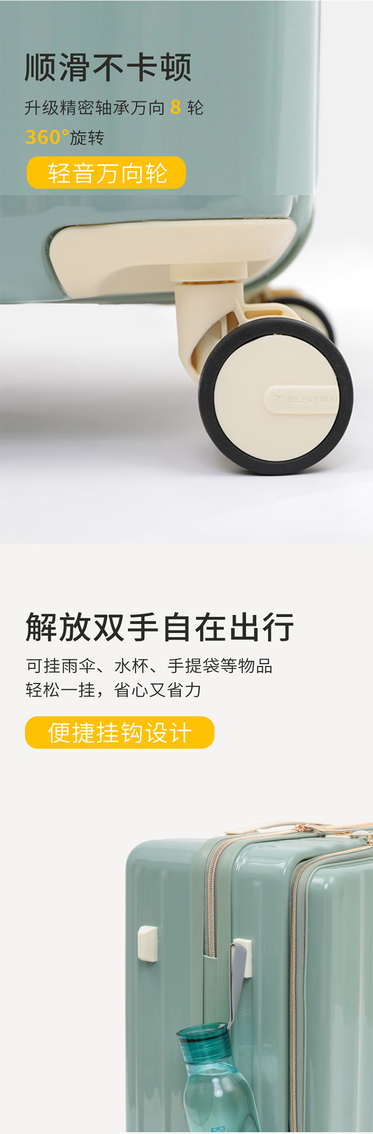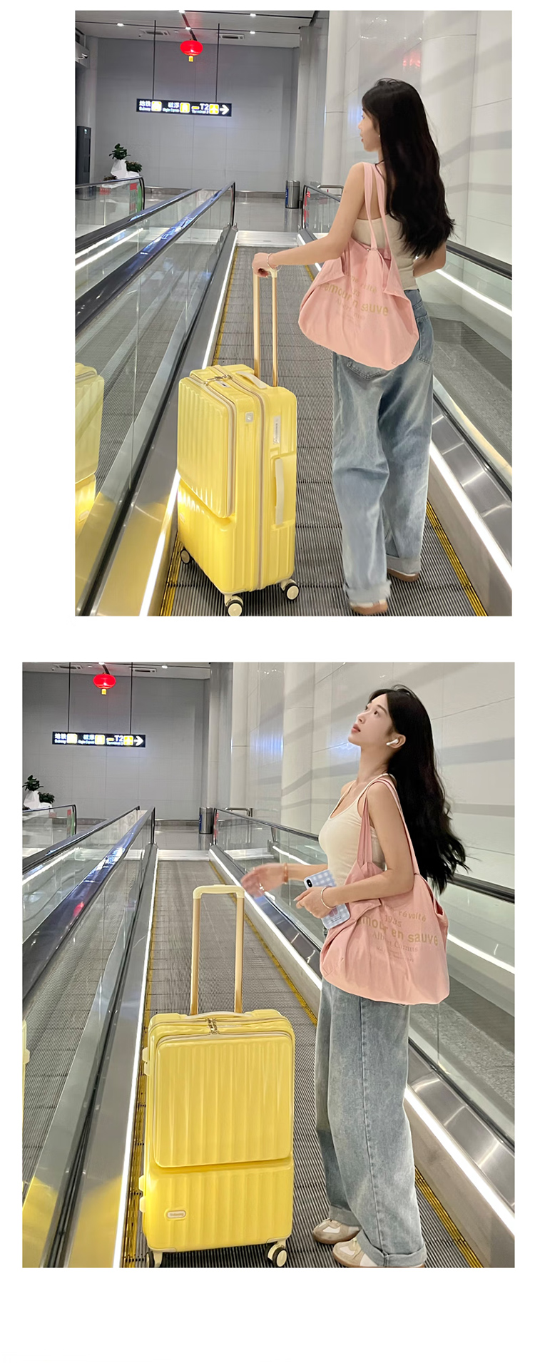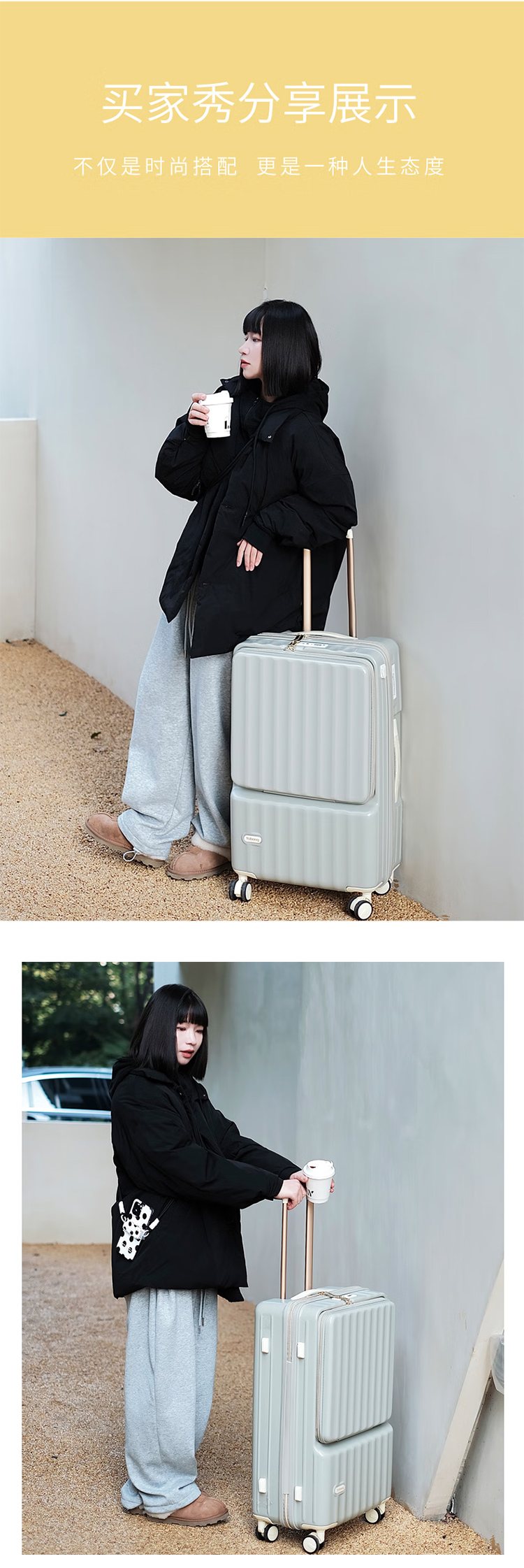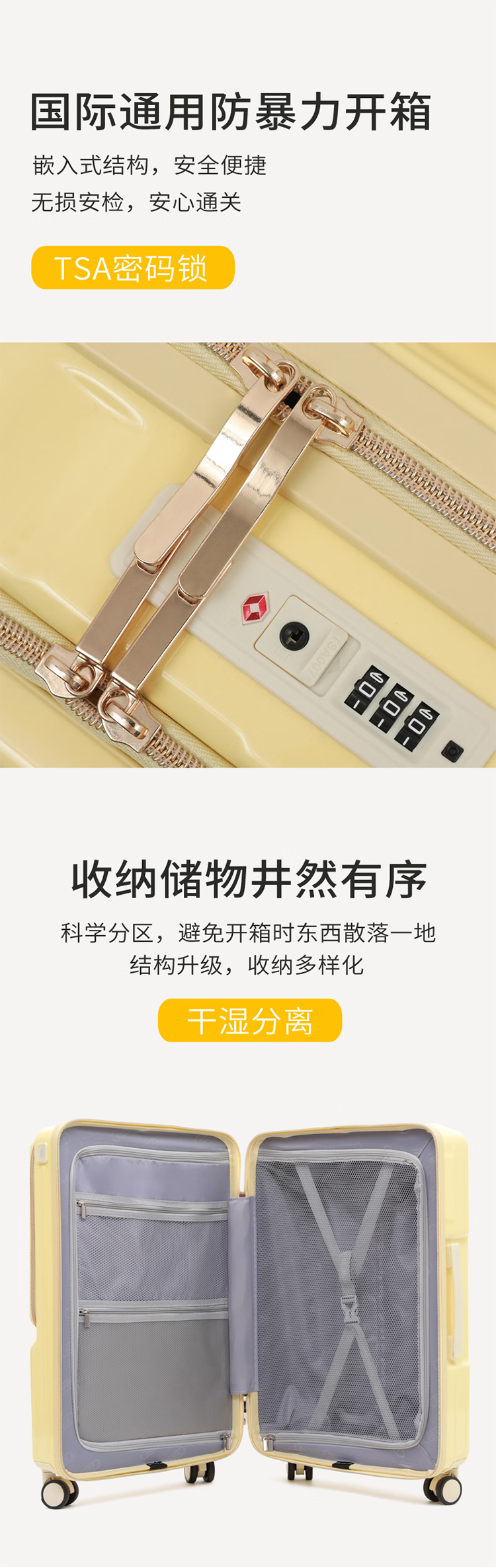 途帮(TOBOOG)前开口行李箱多功能TSA密码登机箱女轻音万向轮顺滑拉杆箱2109 柠檬黄 24英寸