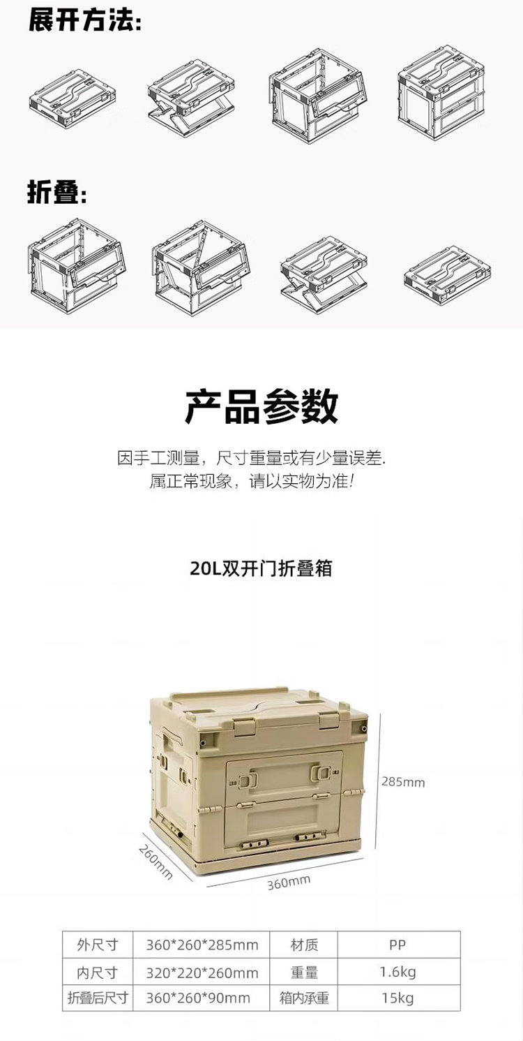 君华仕 GENVAS户外折叠收纳箱20L 20L双开门
