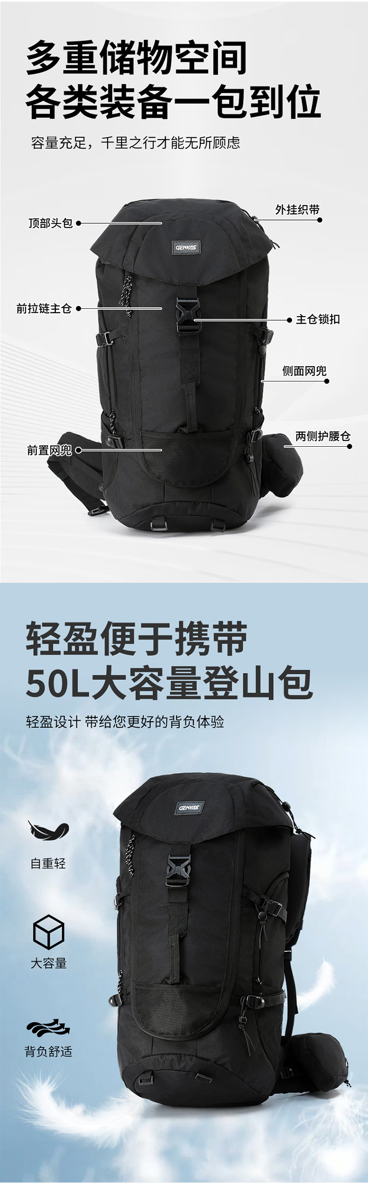 君华仕 GENVAS登山露营铃兰收纳箱-月影白 50升