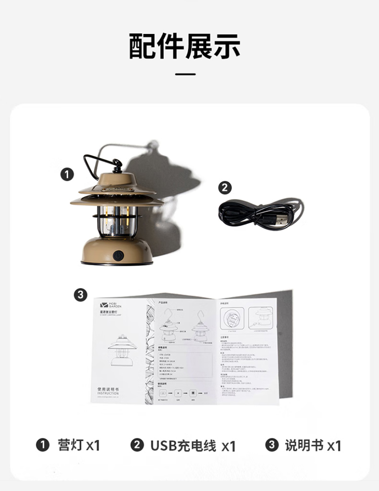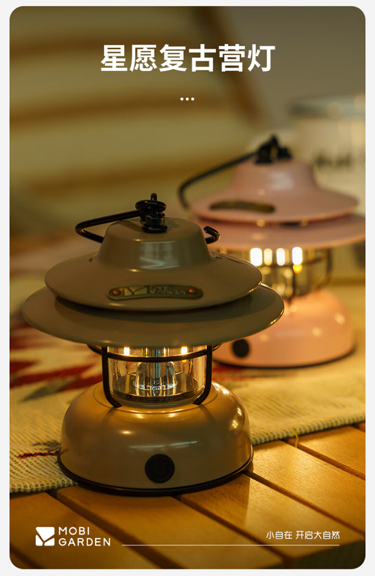 牧高笛(MOBIGARDEN) 复古营灯 户外露营帐篷灯LED电池灯复古氛围移动营地灯星愿/下架 暖沙色