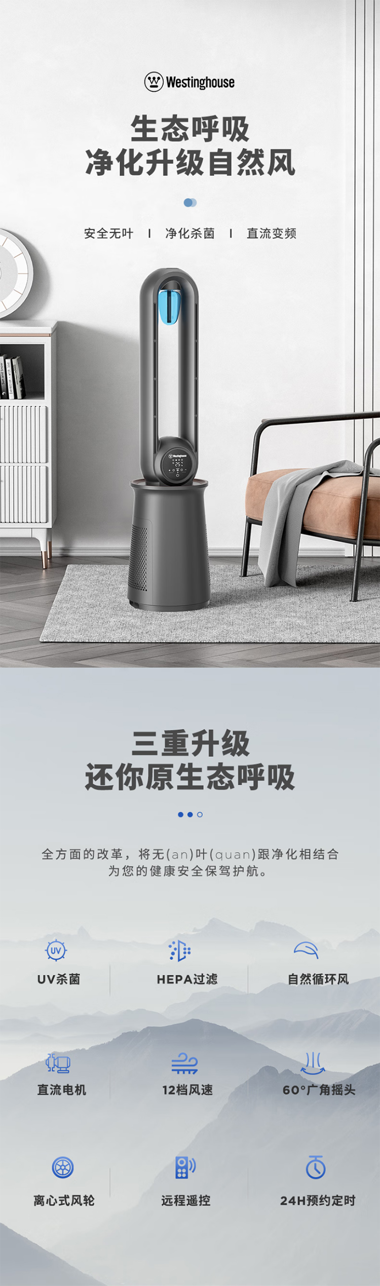 西屋Westinghouse无叶空气净化直流变频循环扇