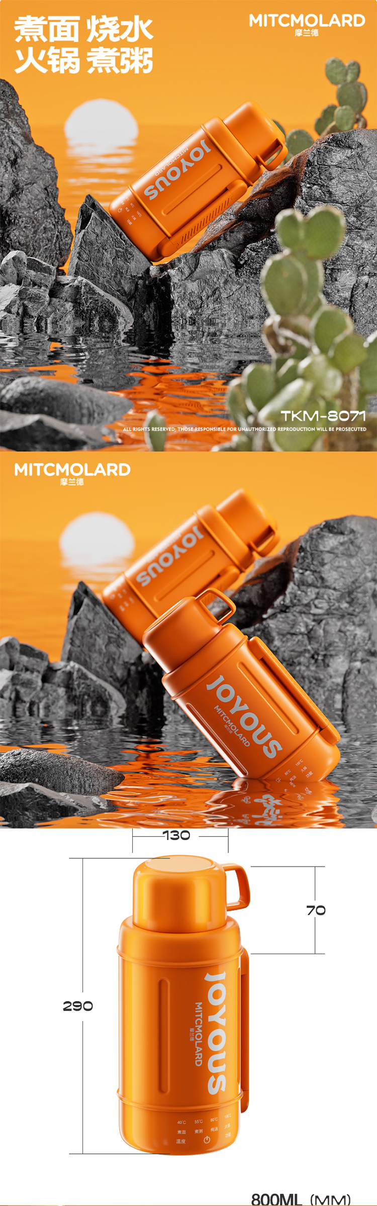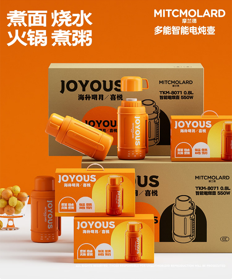 摩兰德JOYOUS喜悦 智能电炖壶 桔红色 0.8L