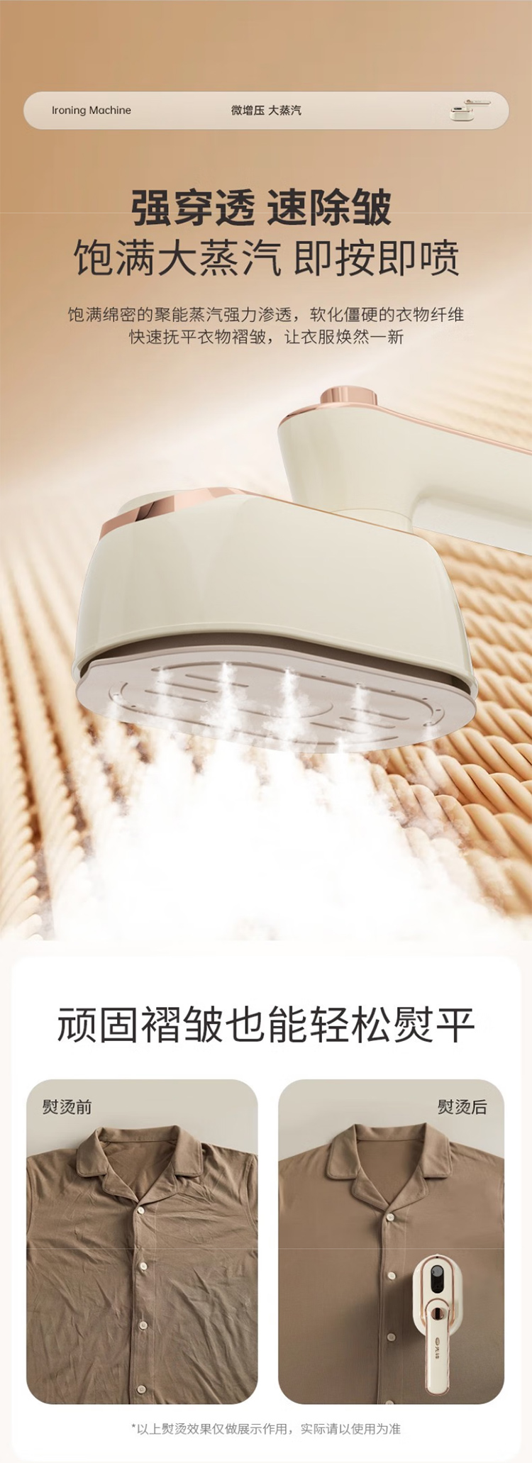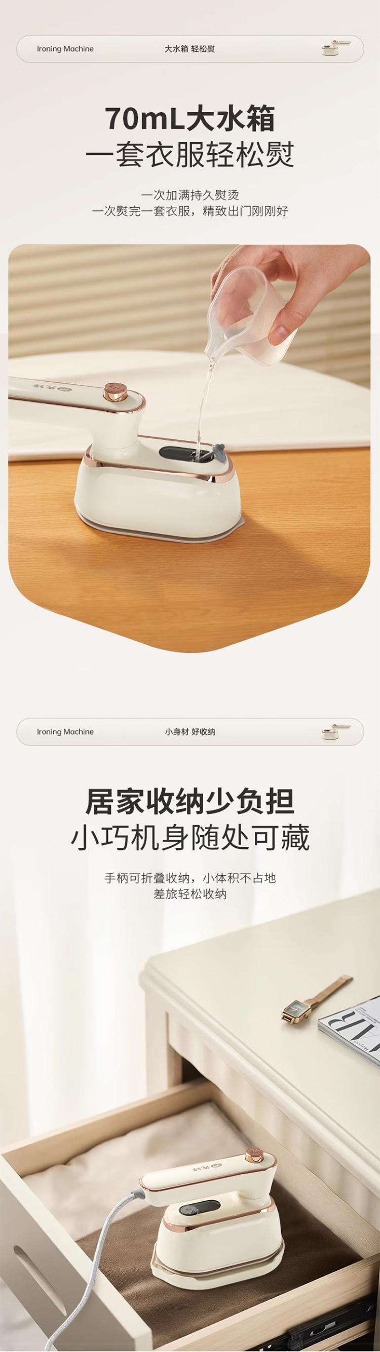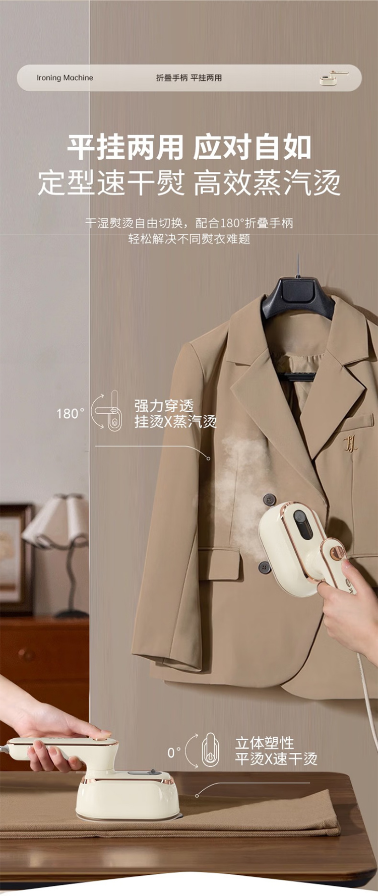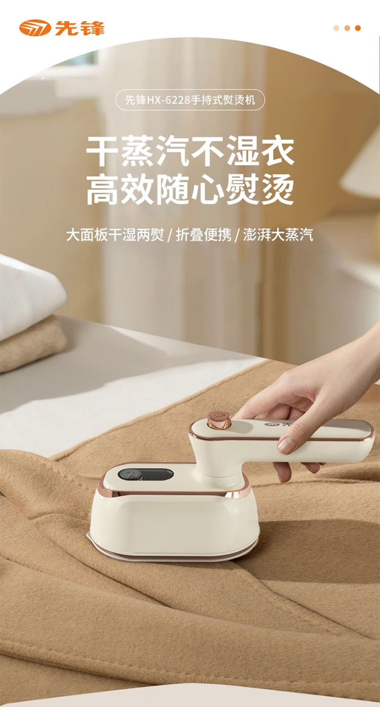 先锋新款便携折叠手持式熨烫机大蒸汽干湿平挂两用电熨斗 米白色