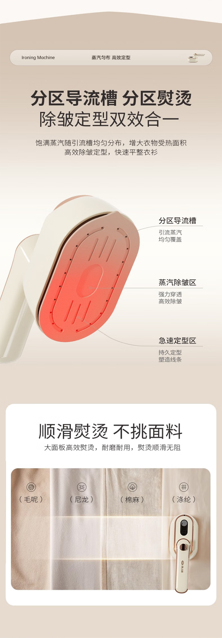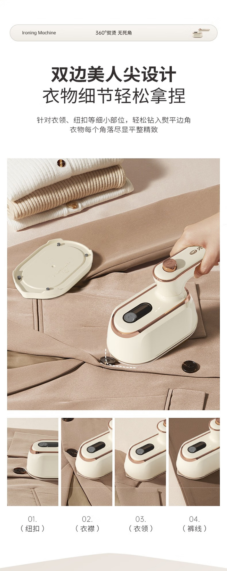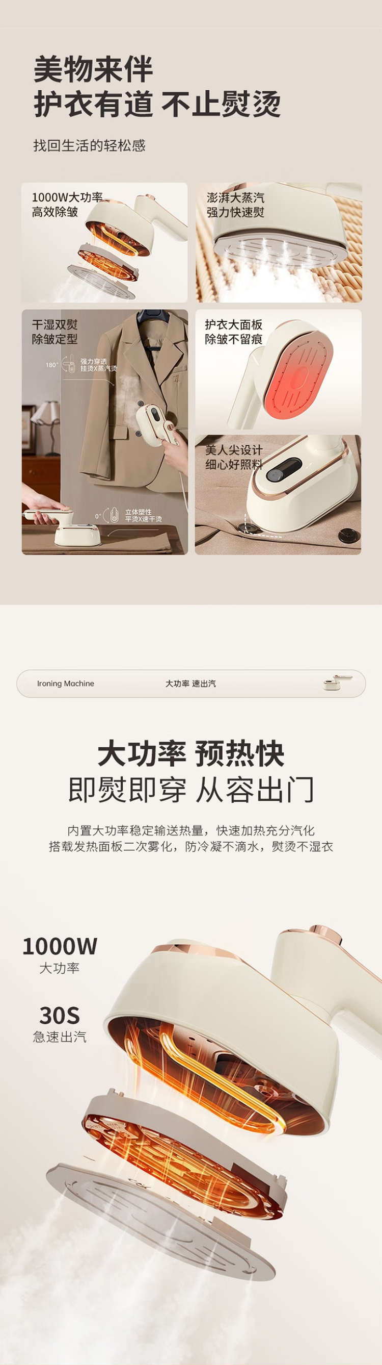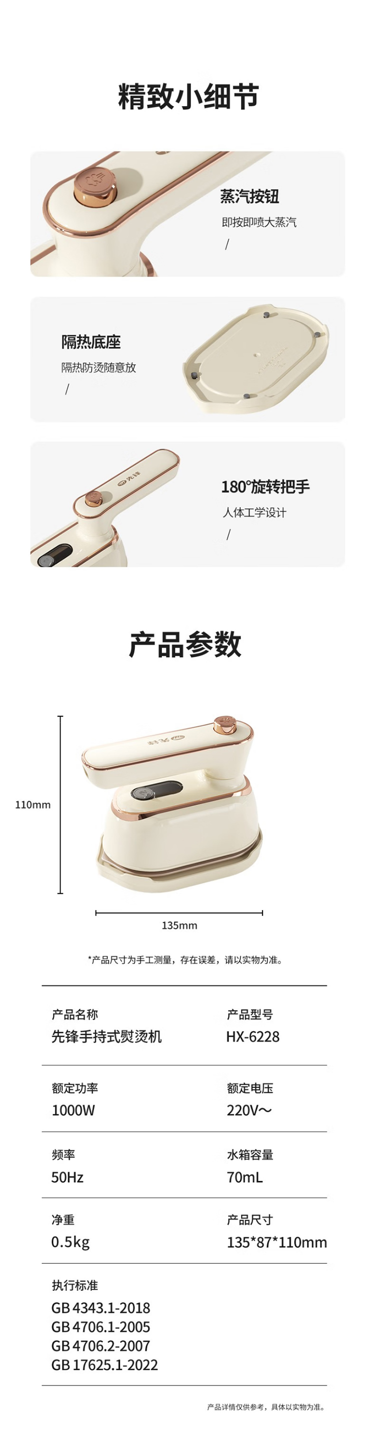 先锋新款便携折叠手持式熨烫机大蒸汽干湿平挂两用电熨斗 米白色