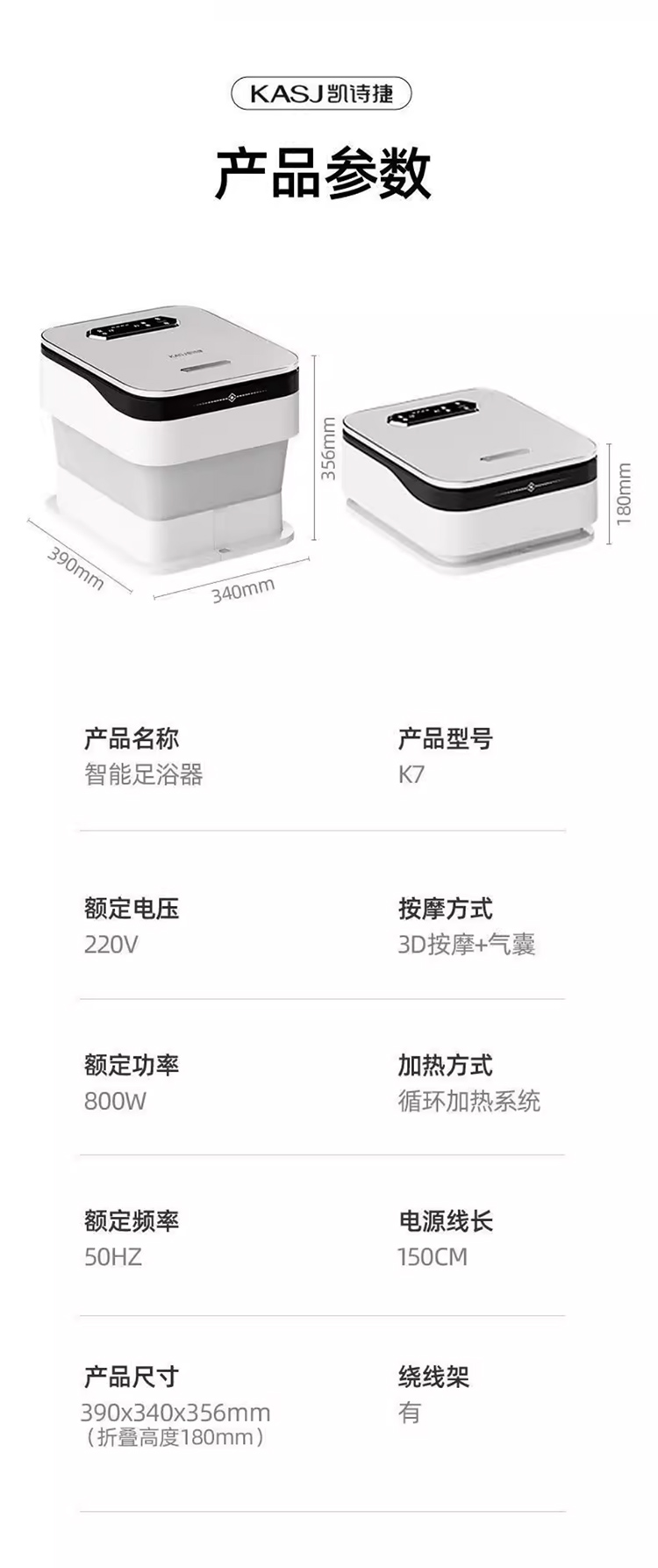 凯诗捷折叠泡脚桶加热恒温家用养生足浴盆电动按摩智能杀菌足浴桶