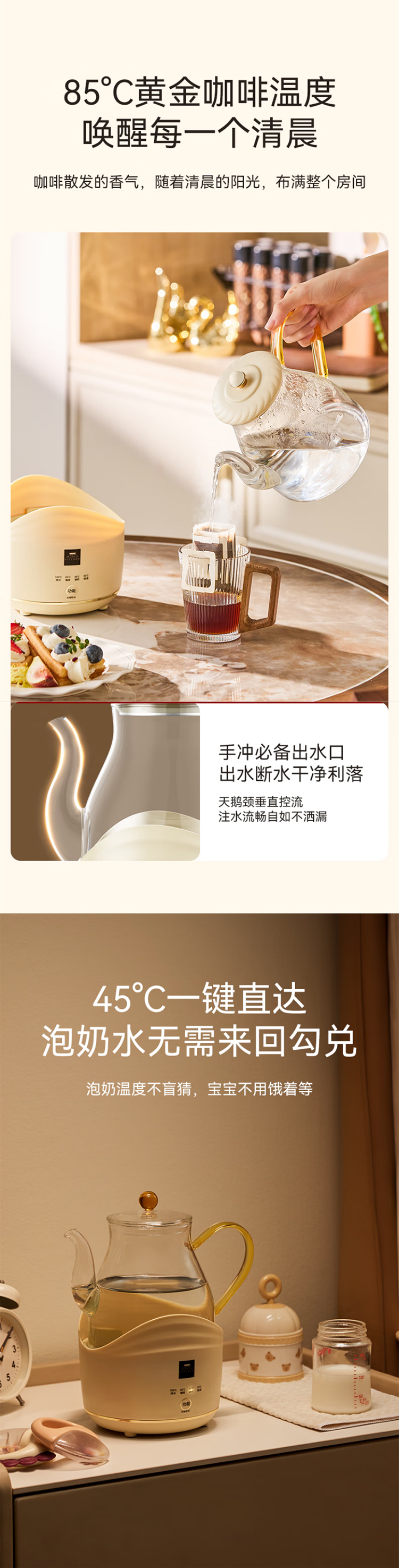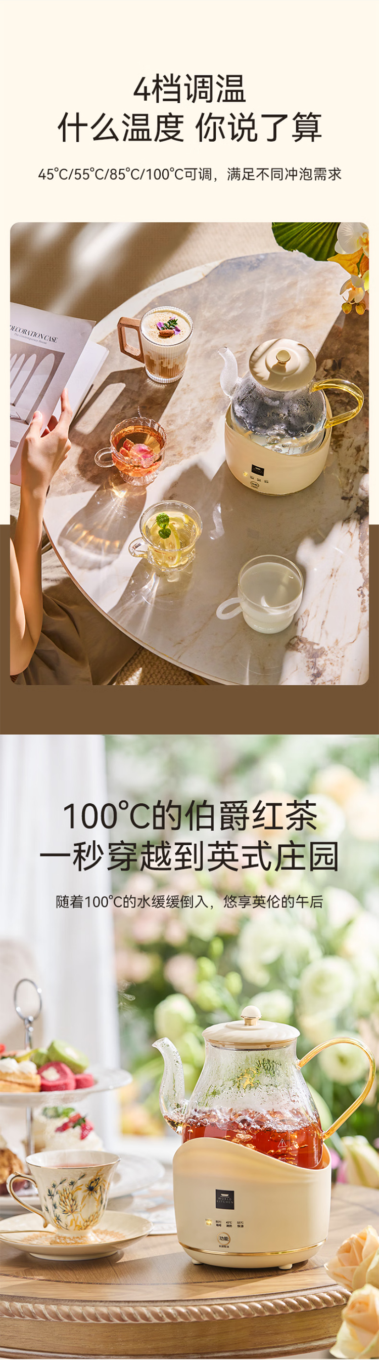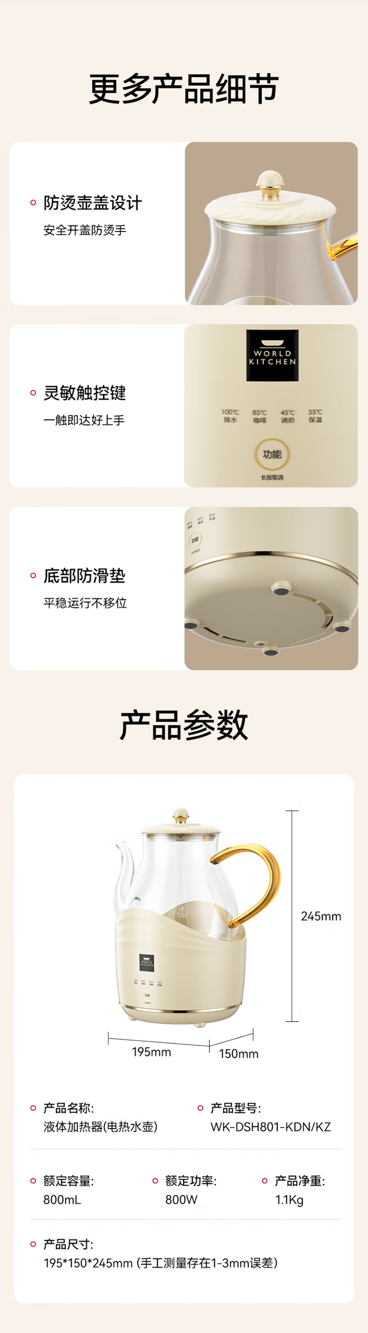 康宁全玻璃电热水壶电水壶0.8L 恒温家用烧水壶养生壶 办公室热牛奶保温壶烧水壶 0.8