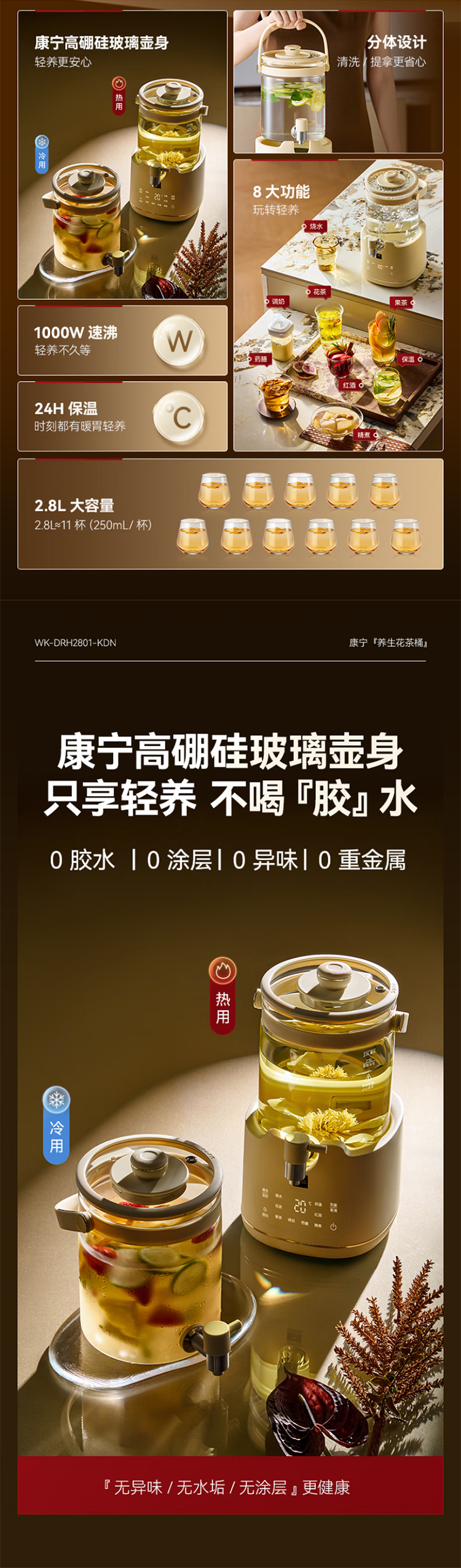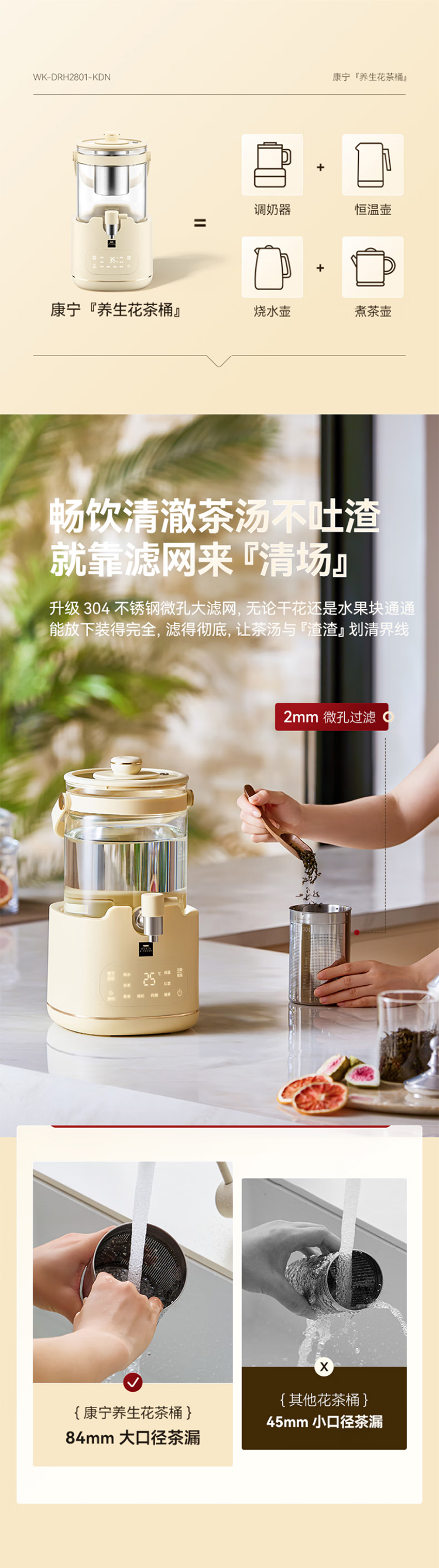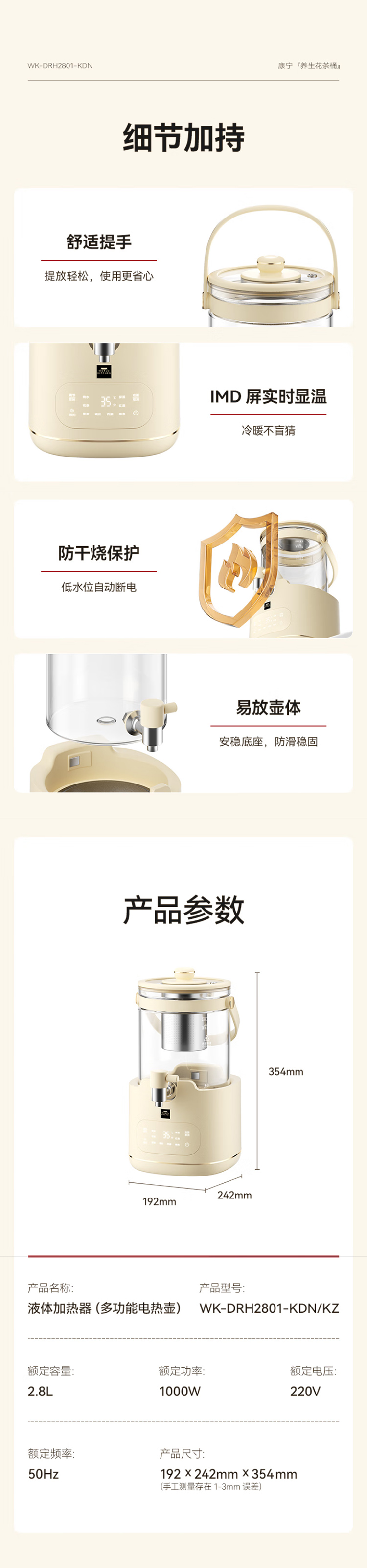 康宁养生壶2.8L大容量 全玻璃花茶桶养生烧水壶 水龙头养生壶 煮茶壶多功能花茶壶
