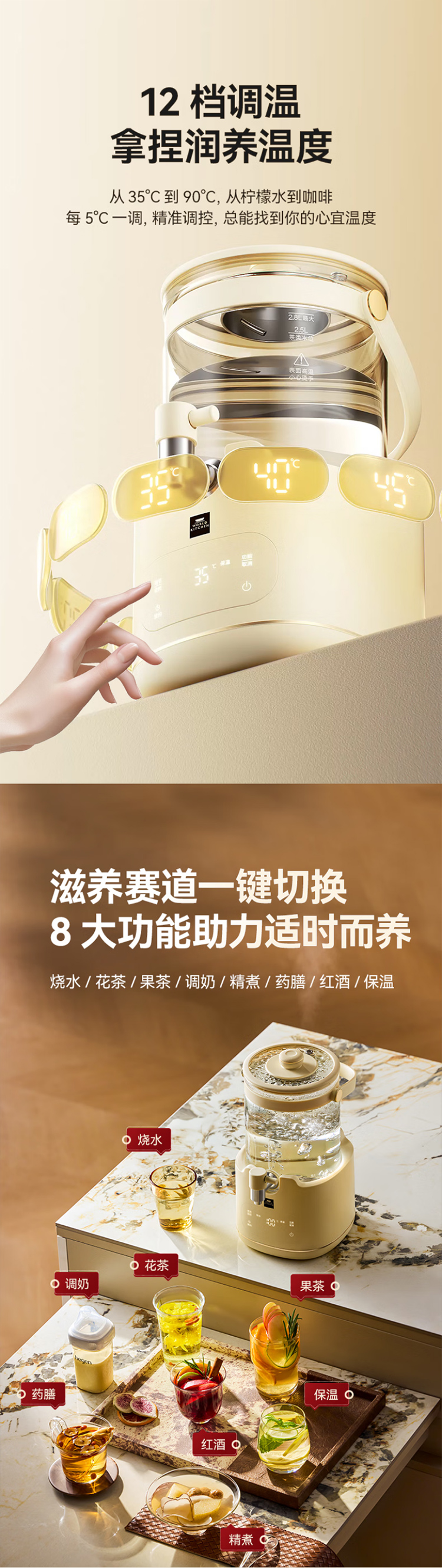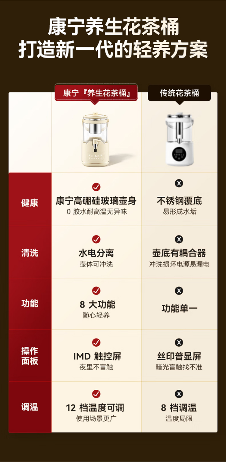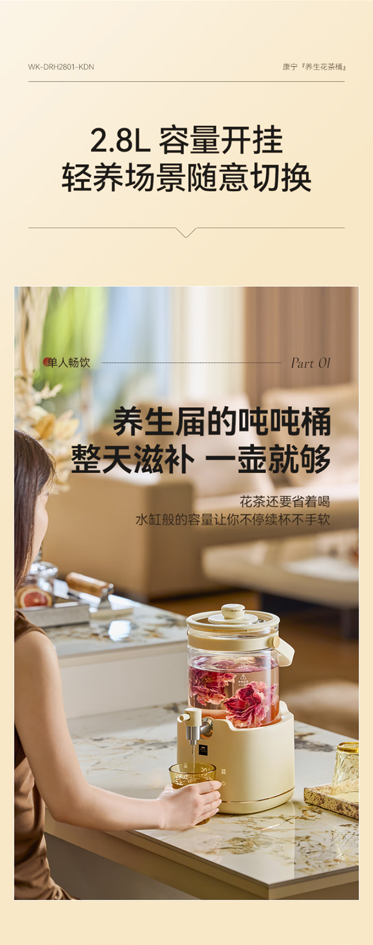 康宁养生壶2.8L大容量 全玻璃花茶桶养生烧水壶 水龙头养生壶 煮茶壶多功能花茶壶