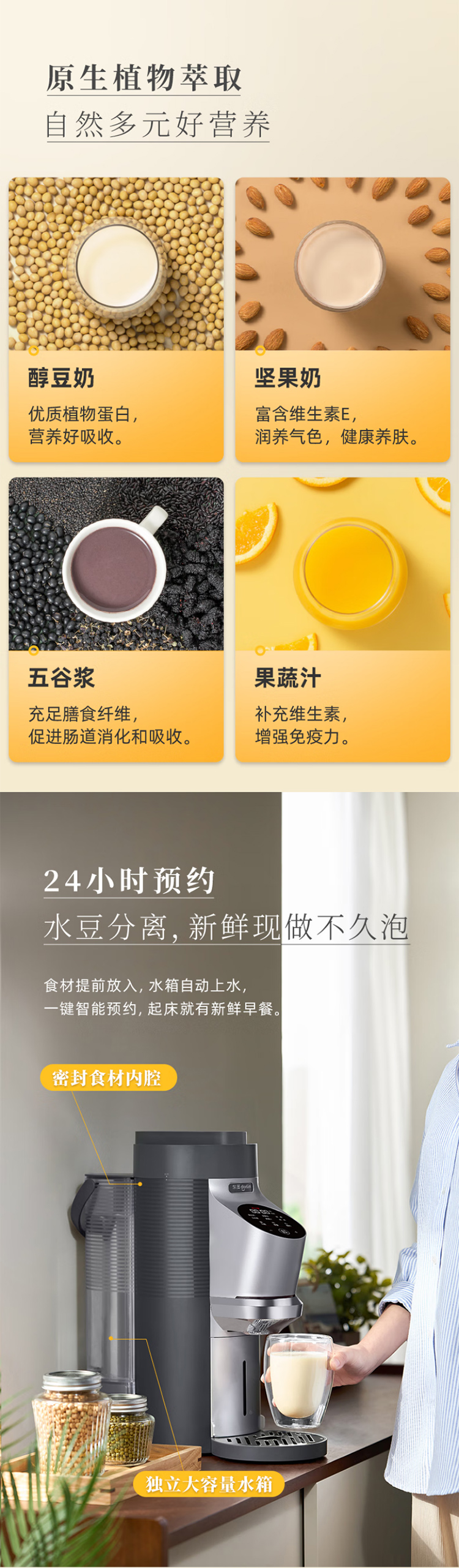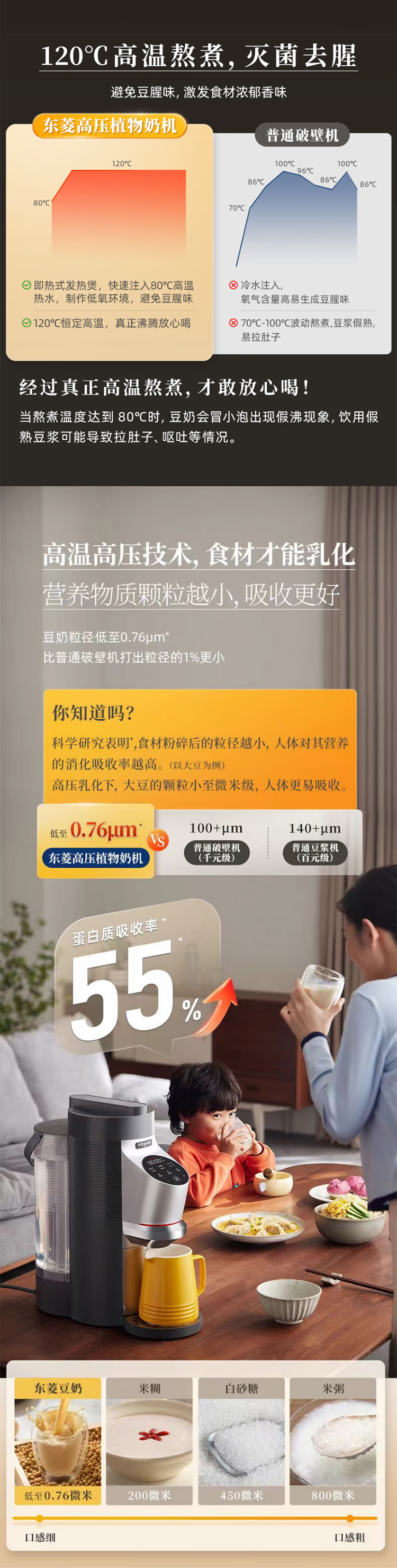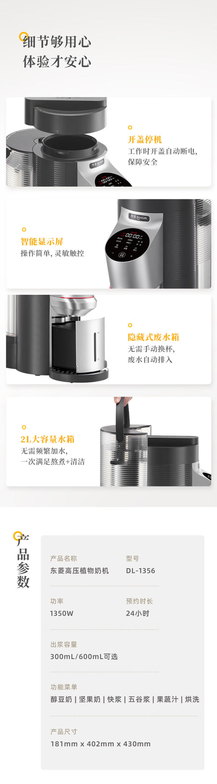 东菱(Donlim)多功能家用破壁机 低音降噪 高温除菌免手洗 高端可预约植物奶机DL-1356