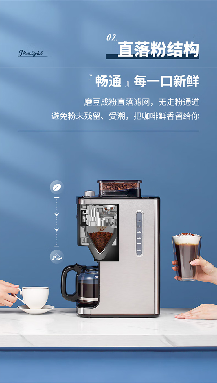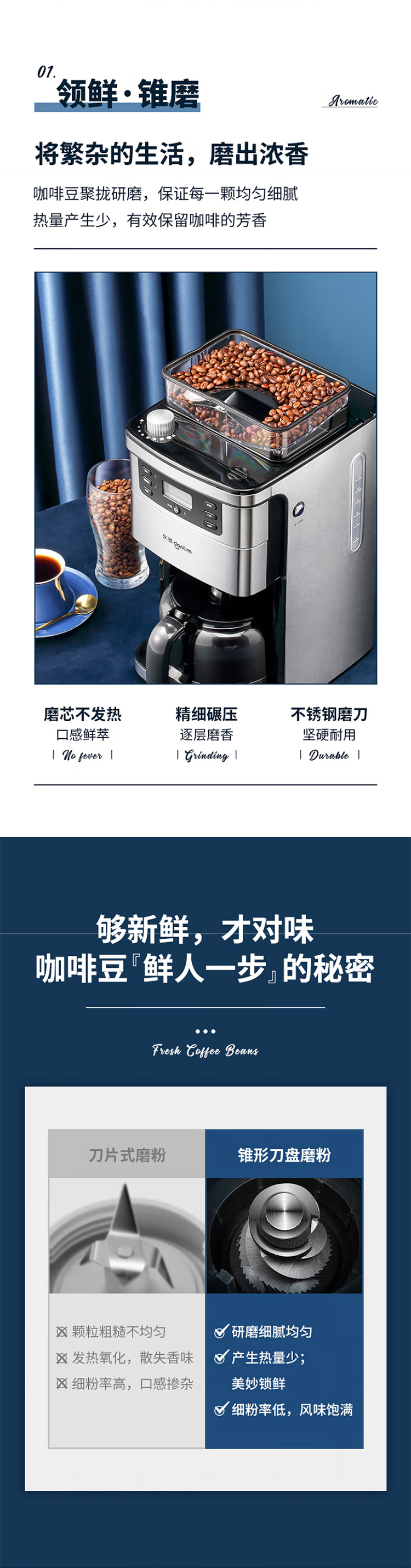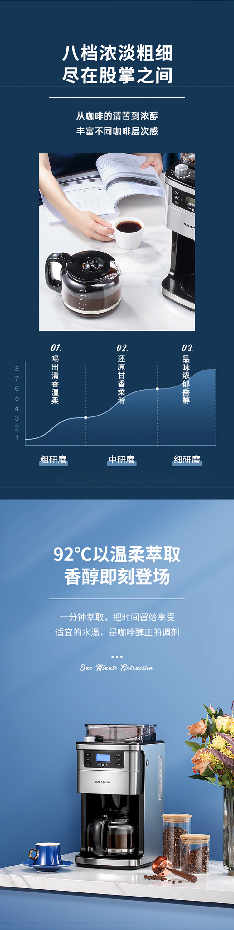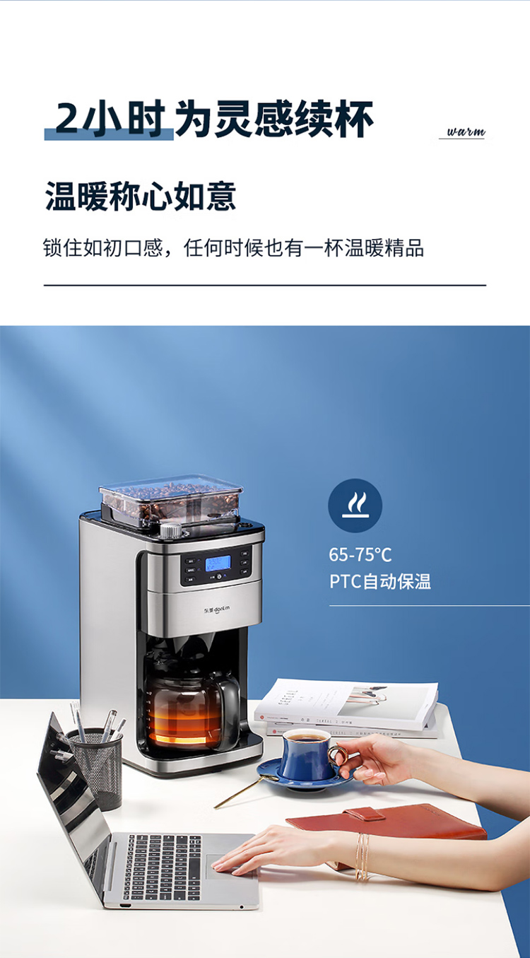 东菱(Donlim)美式全自动研磨一体咖啡机家用办公室商用专业现磨豆粉两用萃取制咖啡DL-KF4266 美式全自动