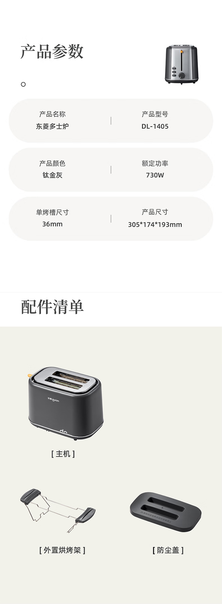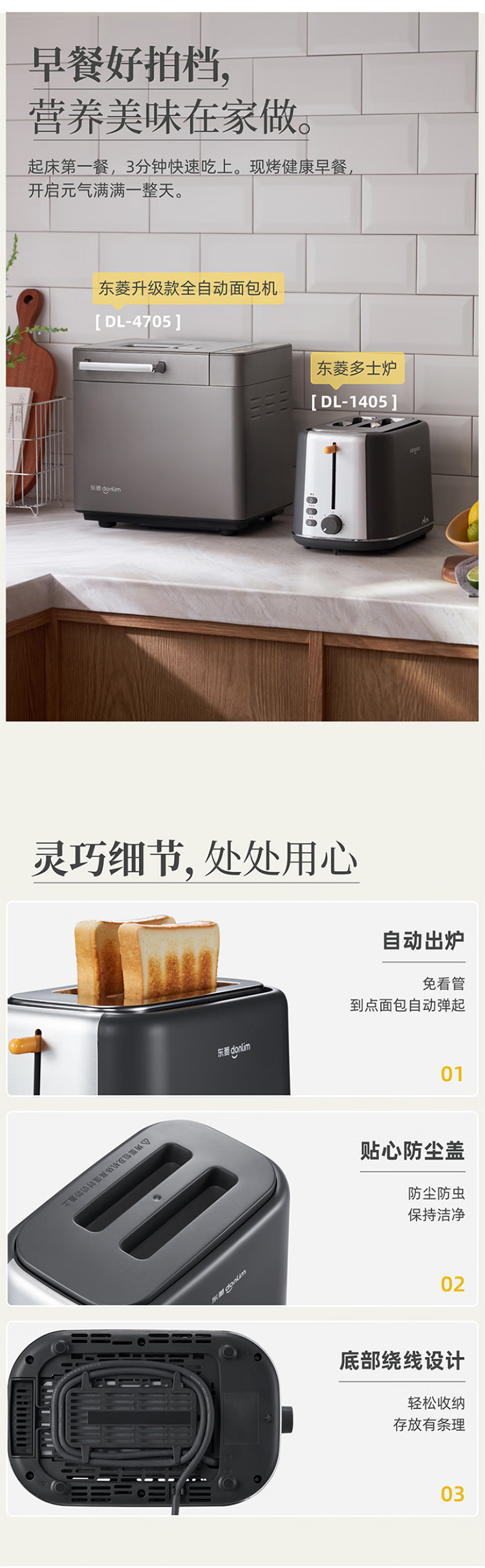 东菱(Donlim)多种模式灵活烘烤 多士炉 可解冻 各式面包随心烤 宽槽吐司机DL-1405