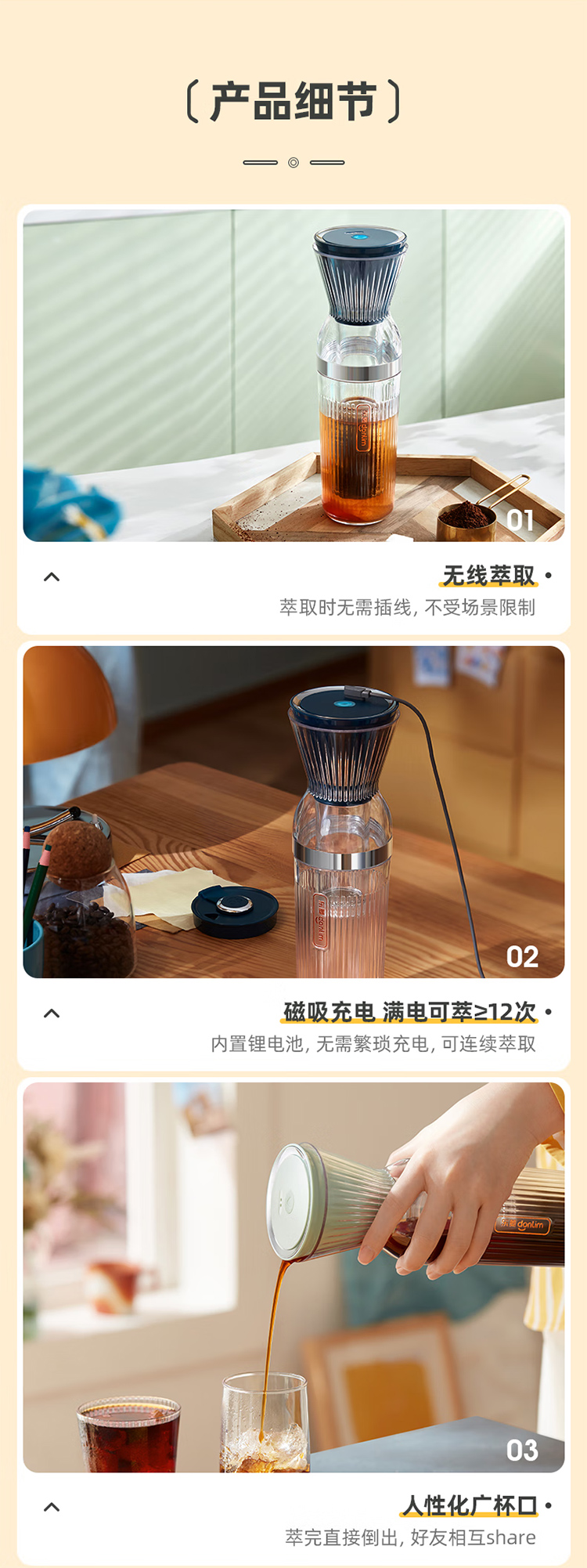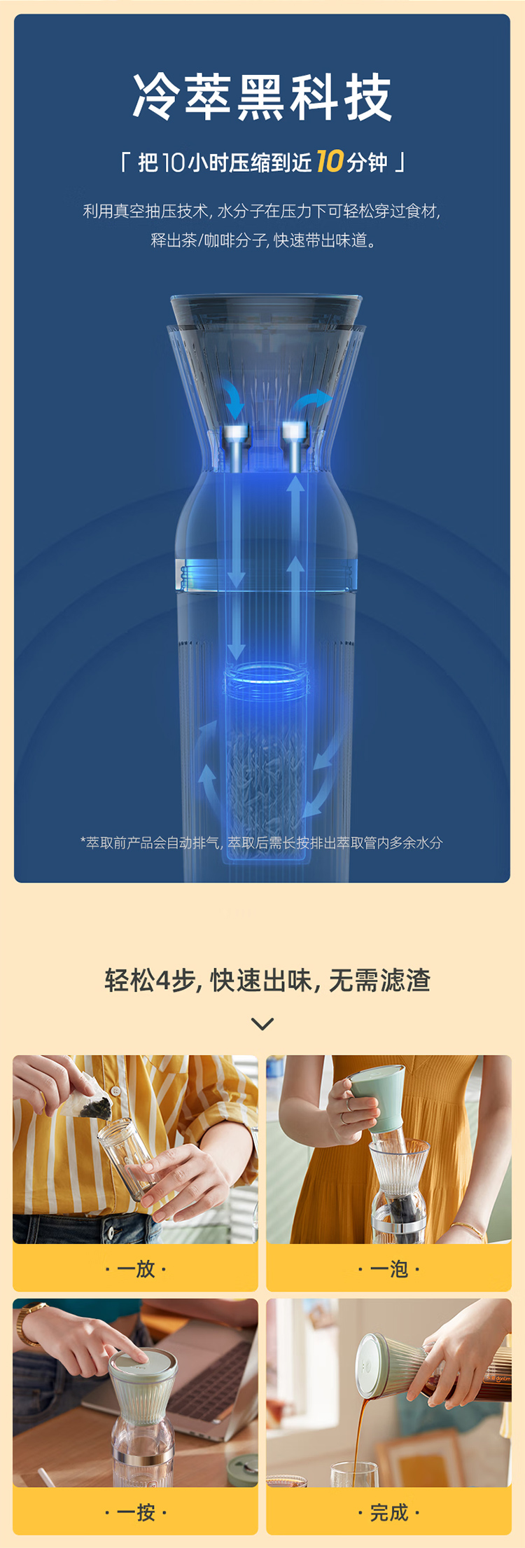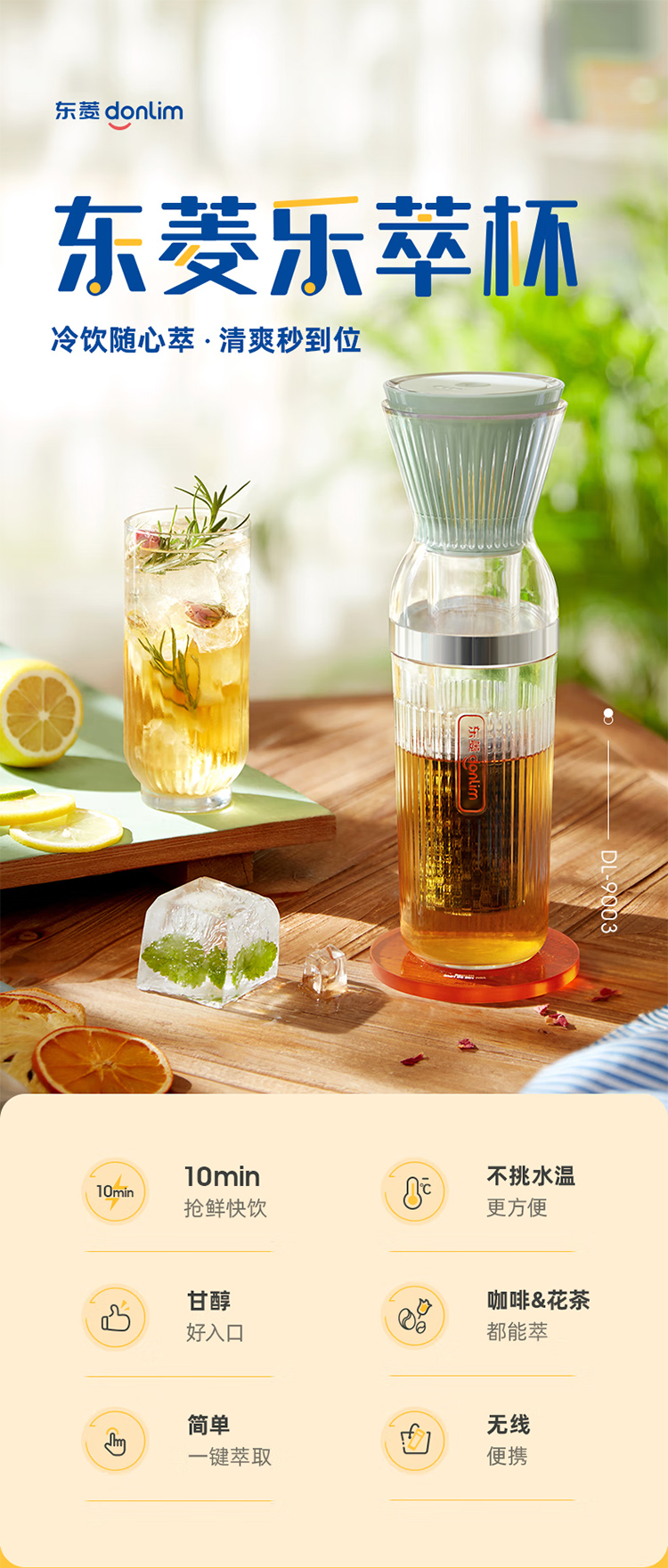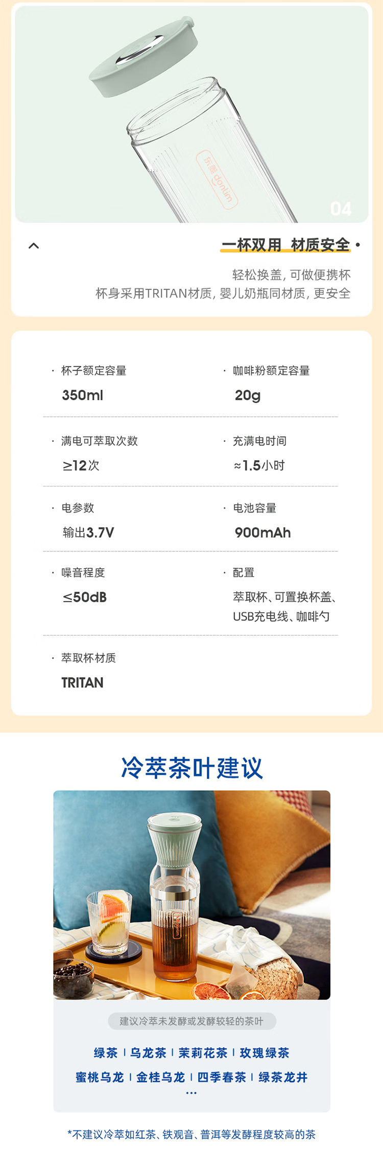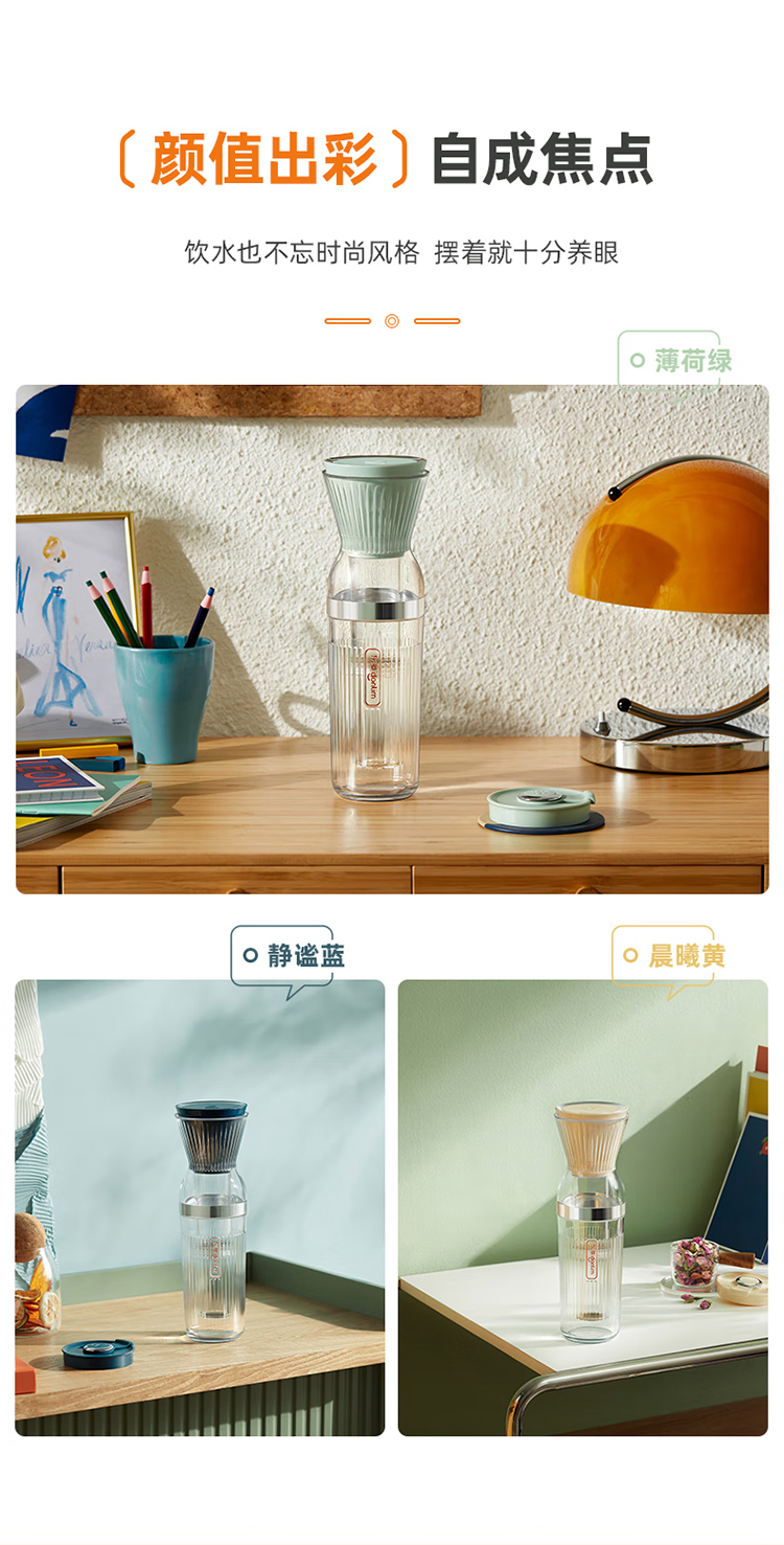 东菱(Donlim)冷萃杯乐萃杯无线小型冷泡茶养生壶冷萃咖啡便携快速萃取花茶 薄荷绿 0.5L