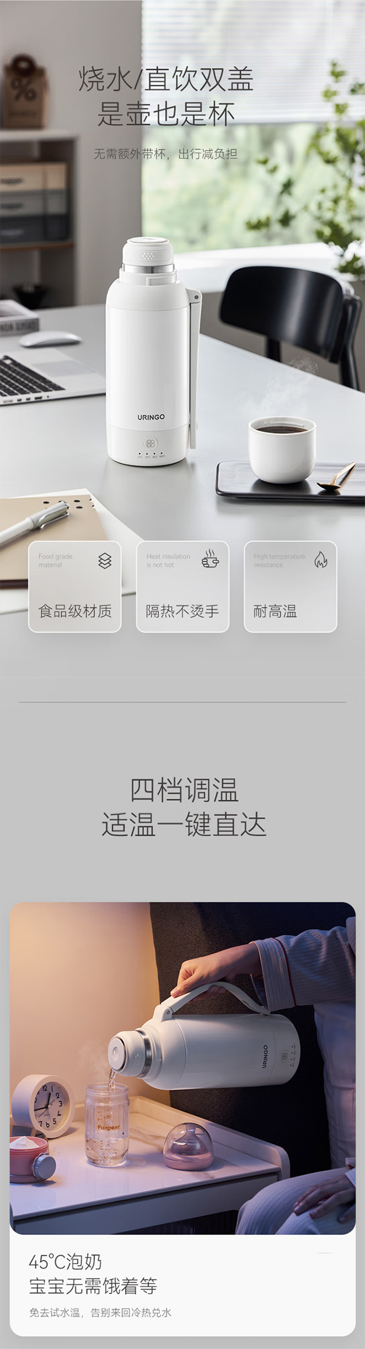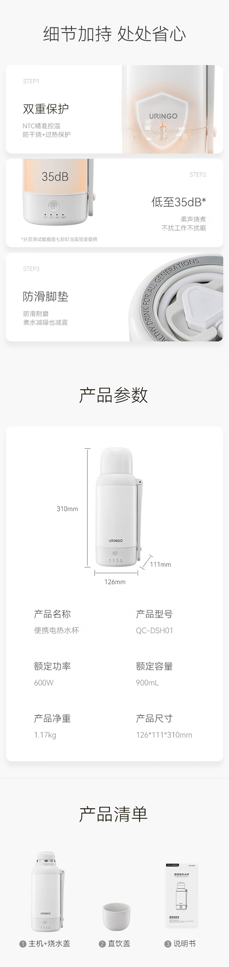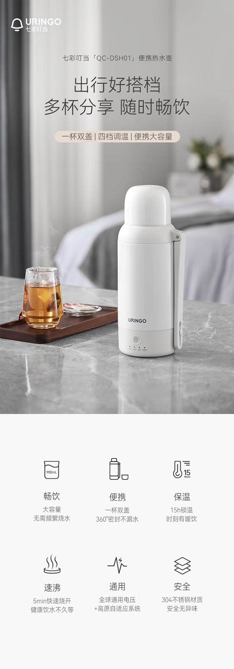 七彩叮当(URINGO)便携式烧水壶 旅行电热水壶烧水杯户外大容量便携电水壶电热水杯电热水壶QC-DSH01 1