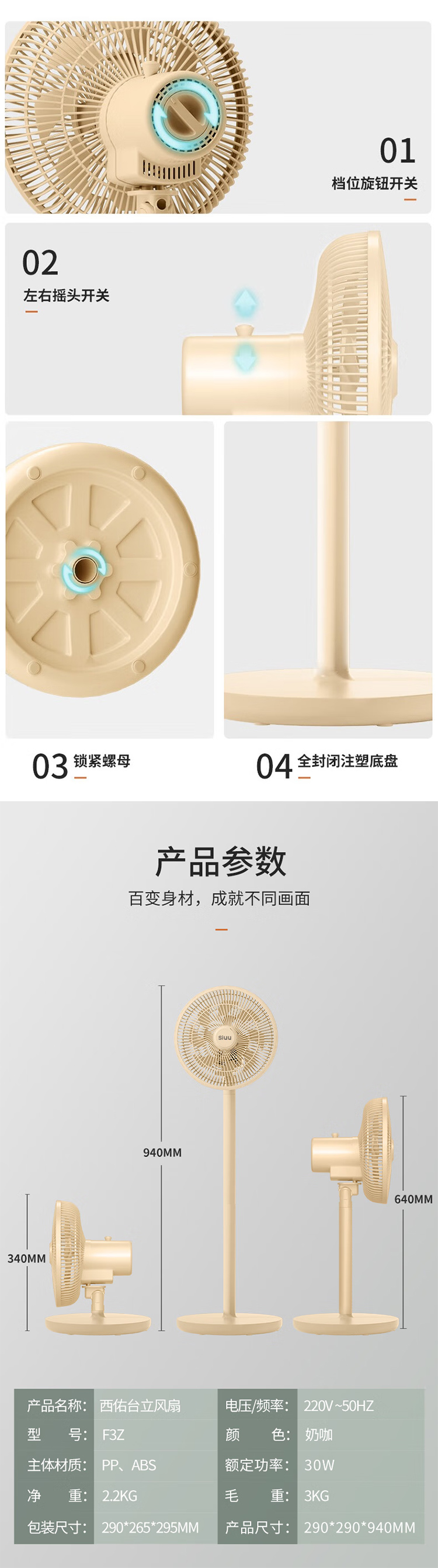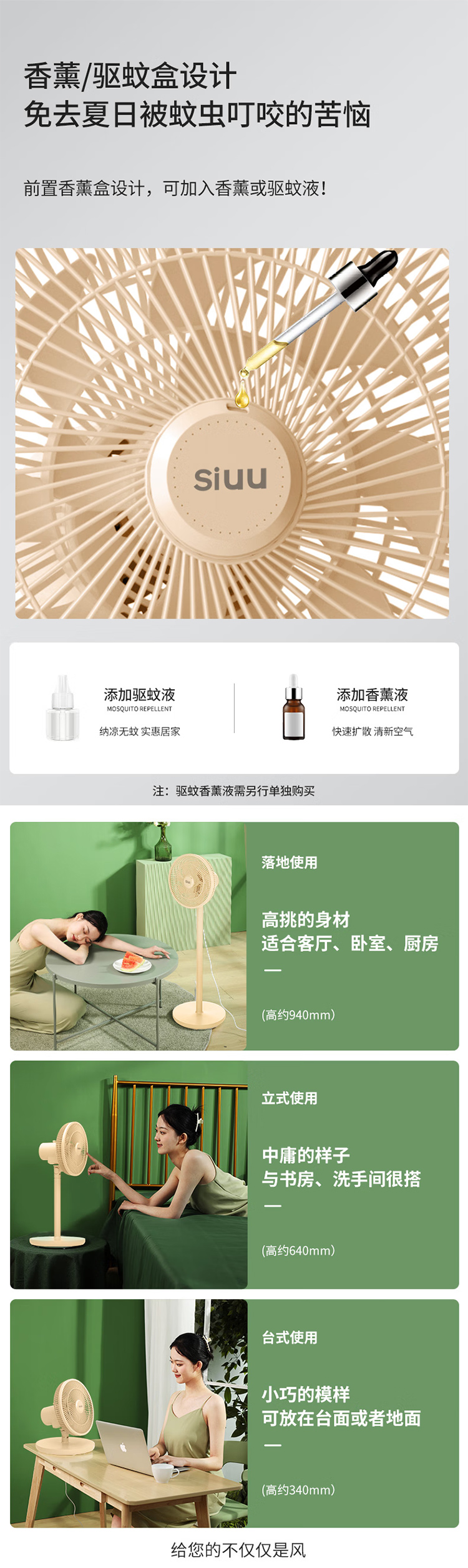 西佑西佑驱蚊香薰款多用循环落地扇F3Z升级款(LF302) 浅绿色LF301