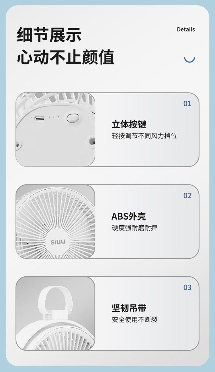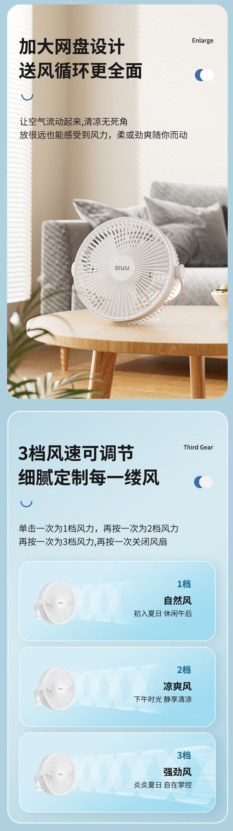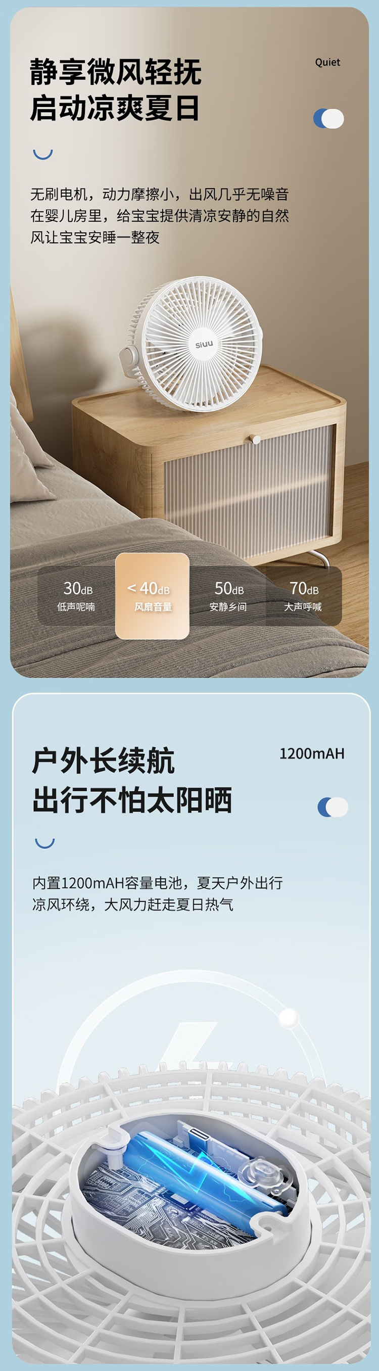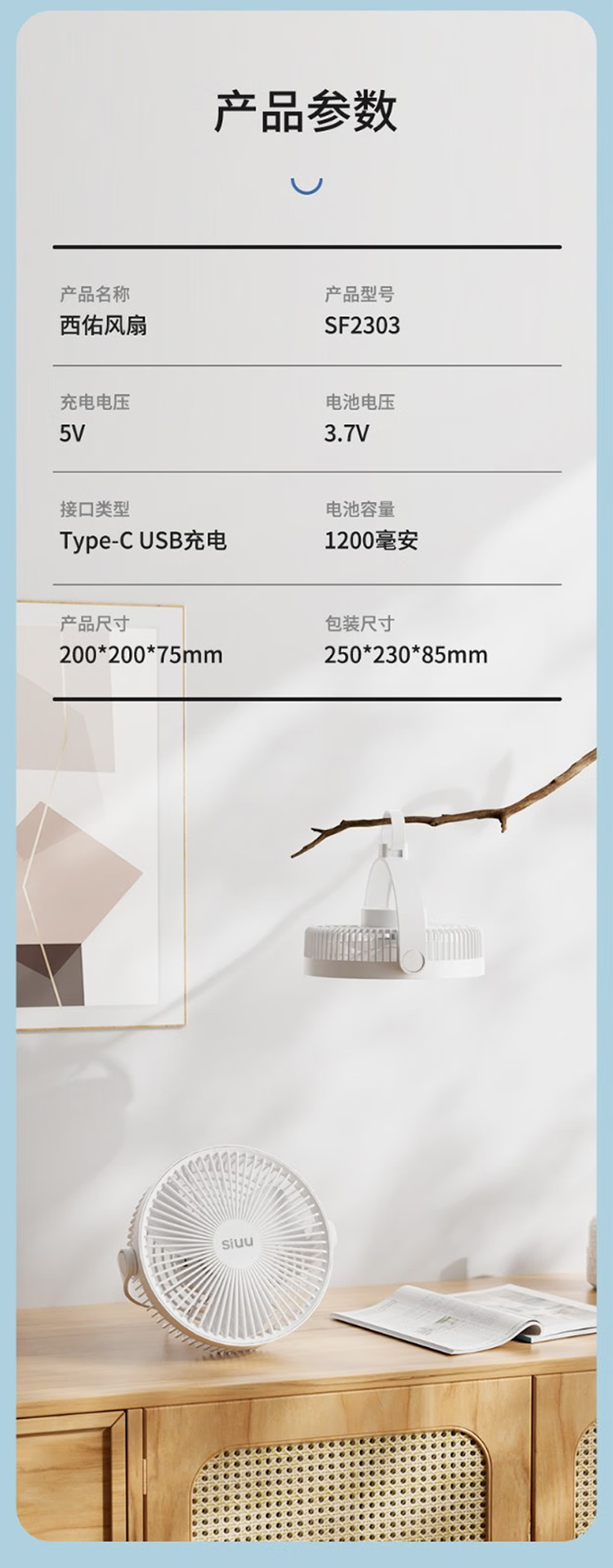西佑西佑SIUU台吊壁挂多用蓄电款USB电风扇 白色