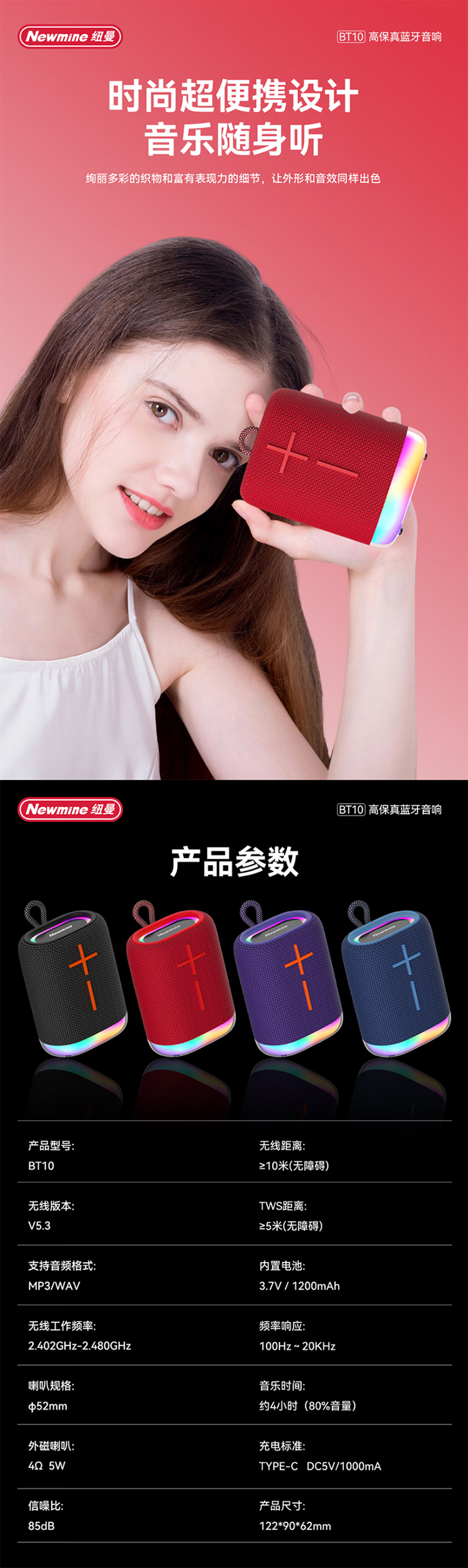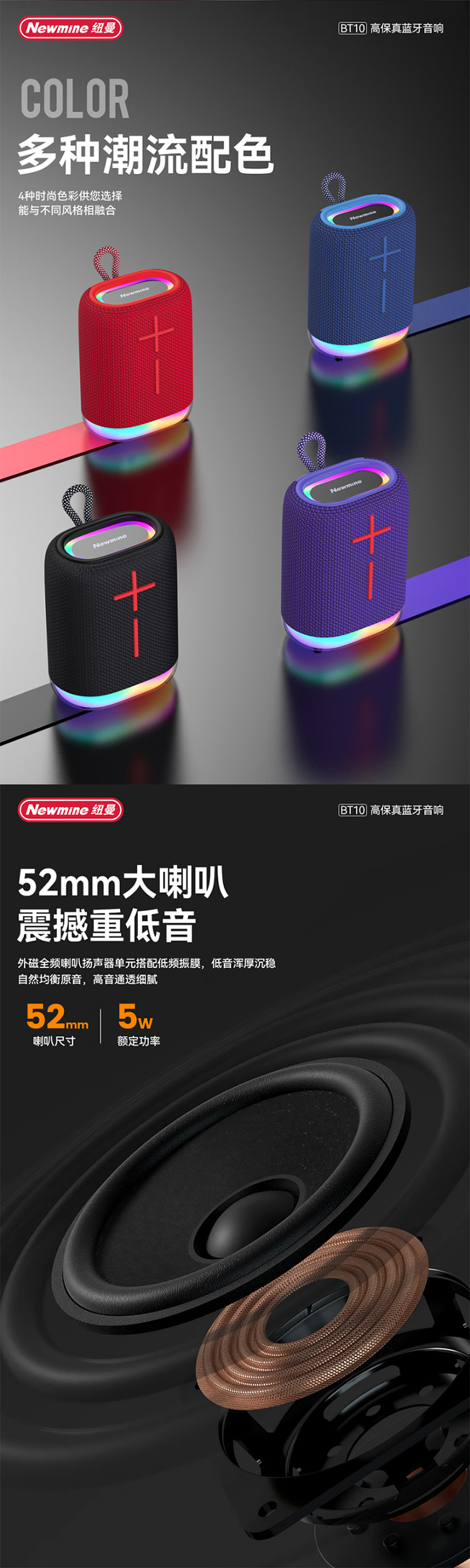 纽曼Newmine蓝牙音响无线音箱便携式户外家用电脑桌面迷你重低音炮BT10