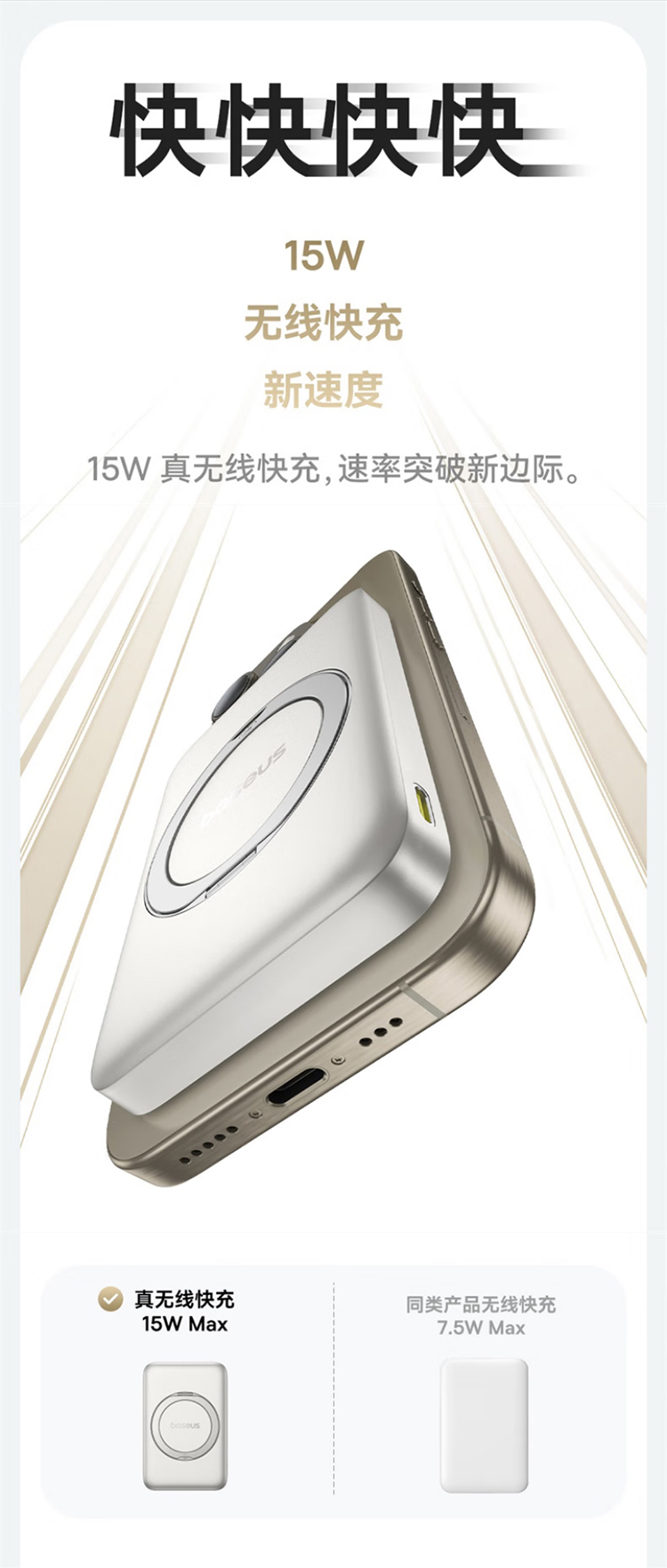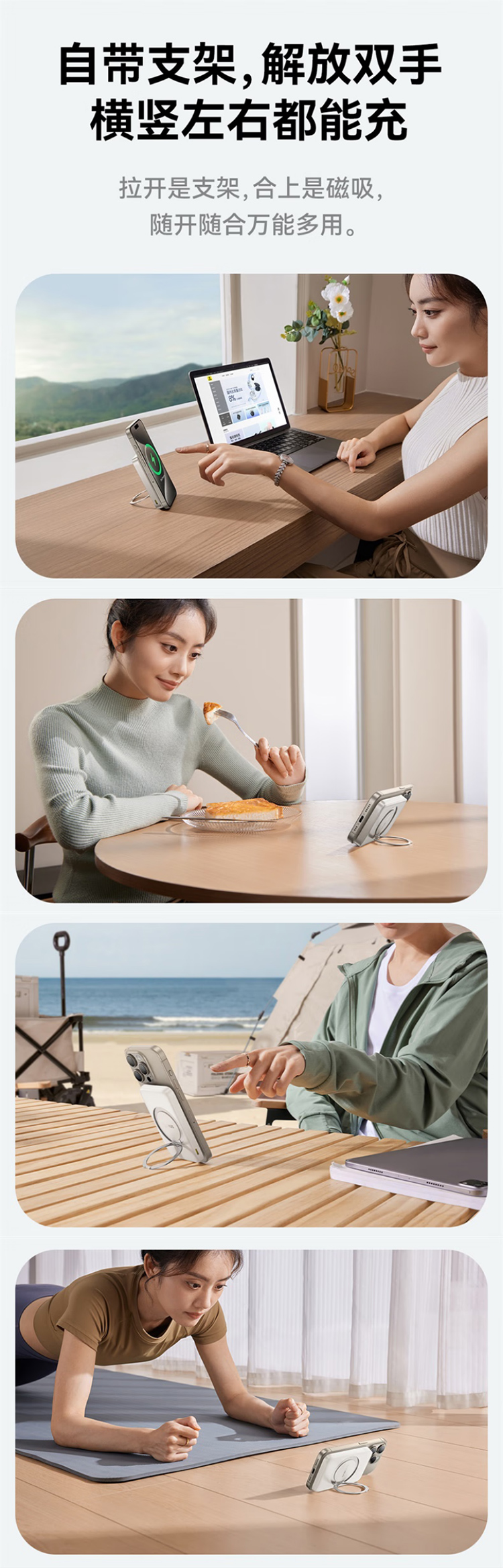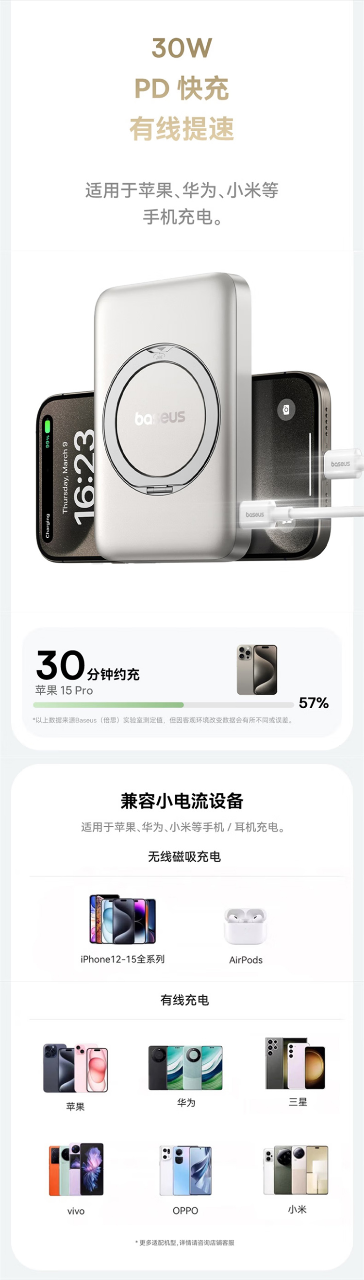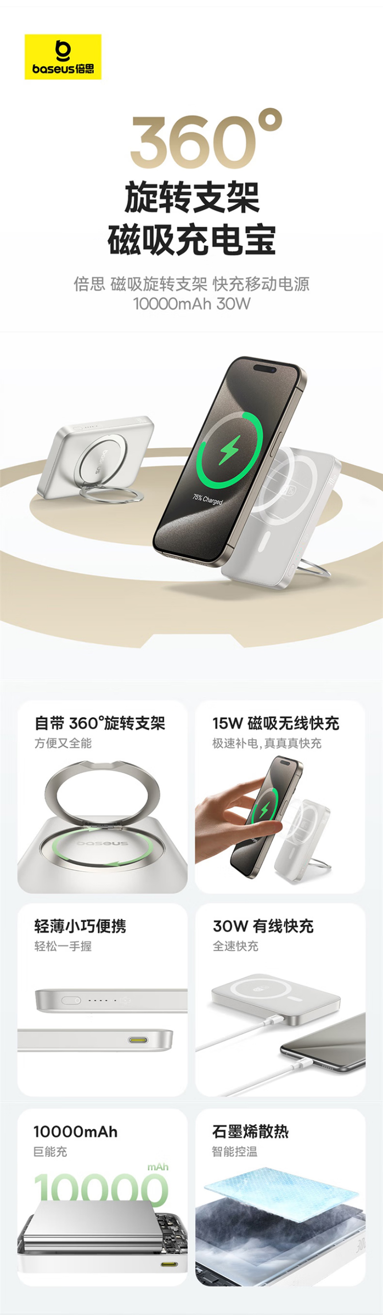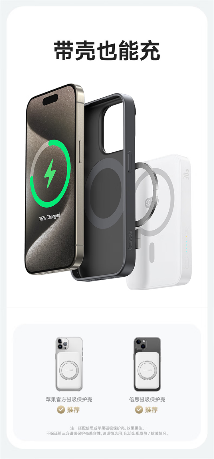 倍思(Baseus)【3C认证】充电宝磁吸支架20W快充无线15W大容量5000毫安移动电源适用苹果1615华为小米ma
