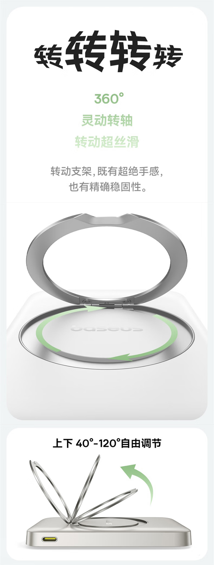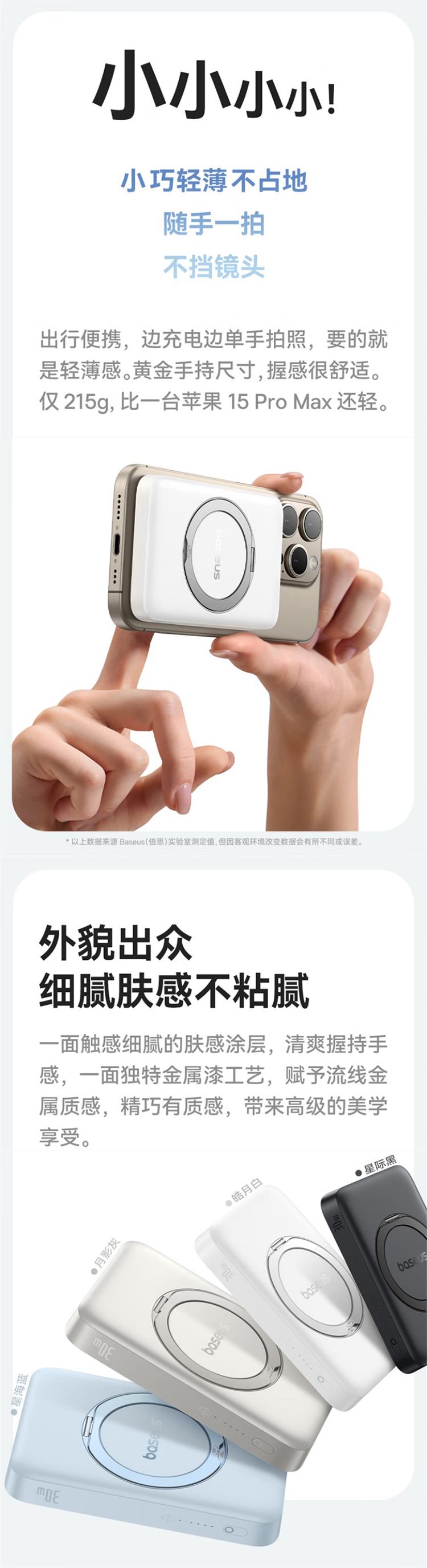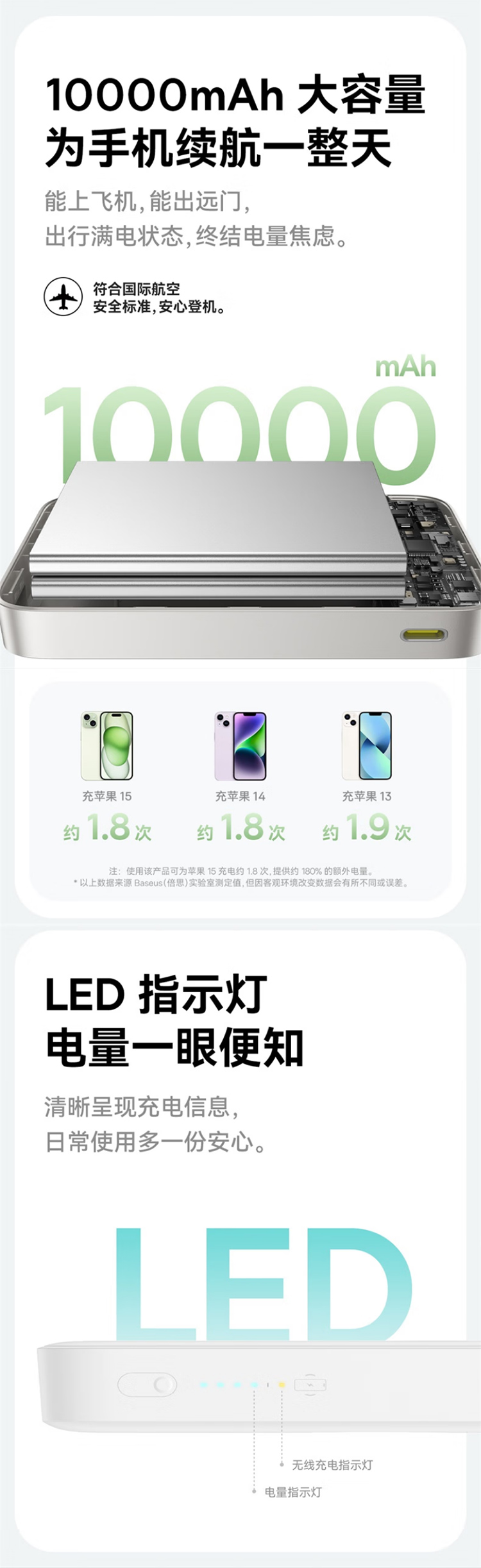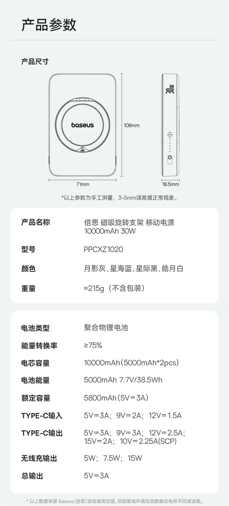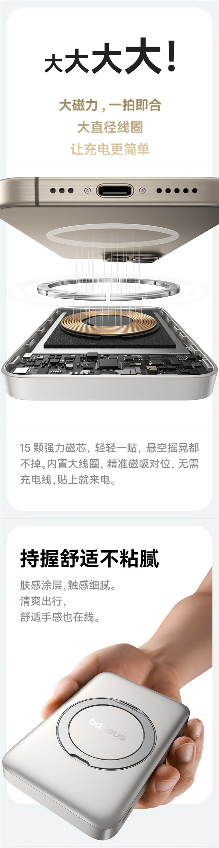 倍思(Baseus)【3C认证】充电宝磁吸支架20W快充无线15W大容量5000毫安移动电源适用苹果1615华为小米ma