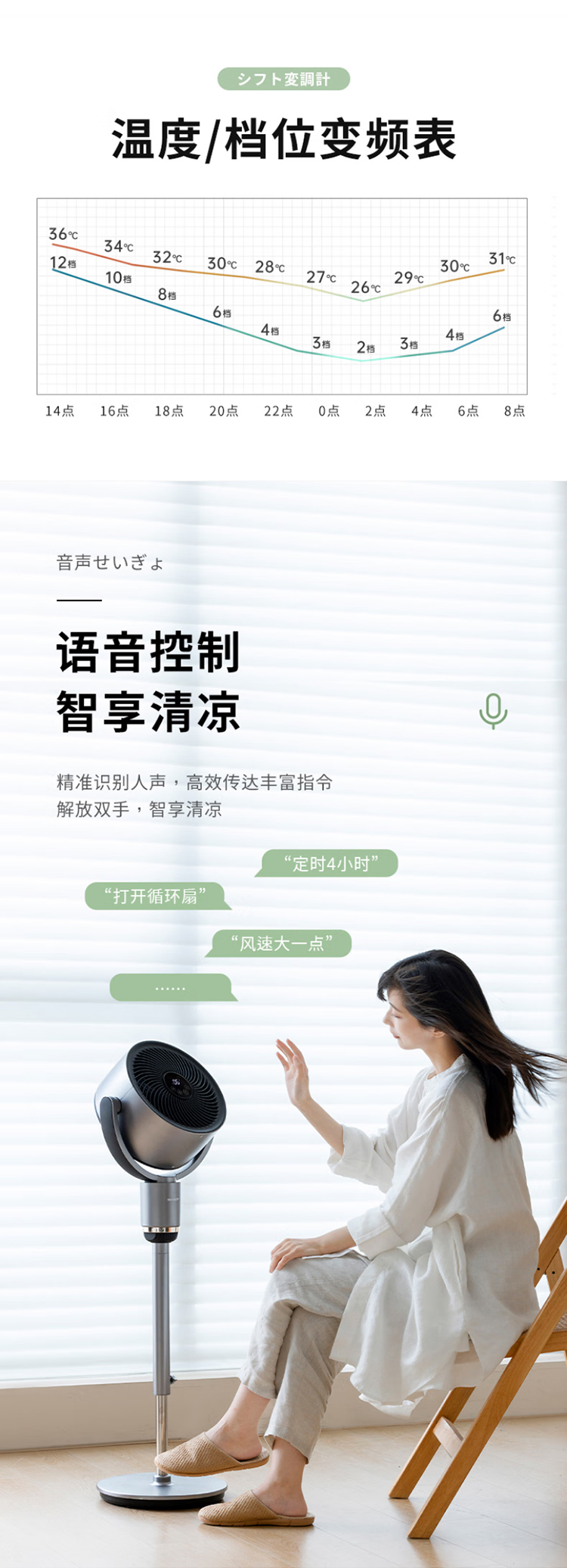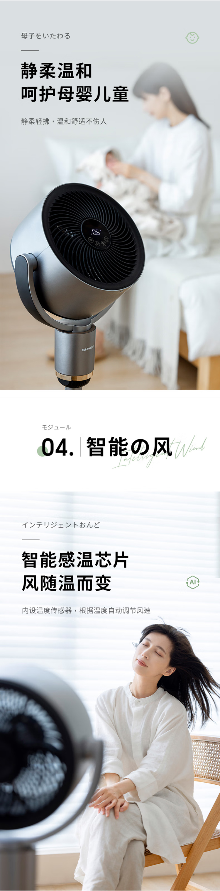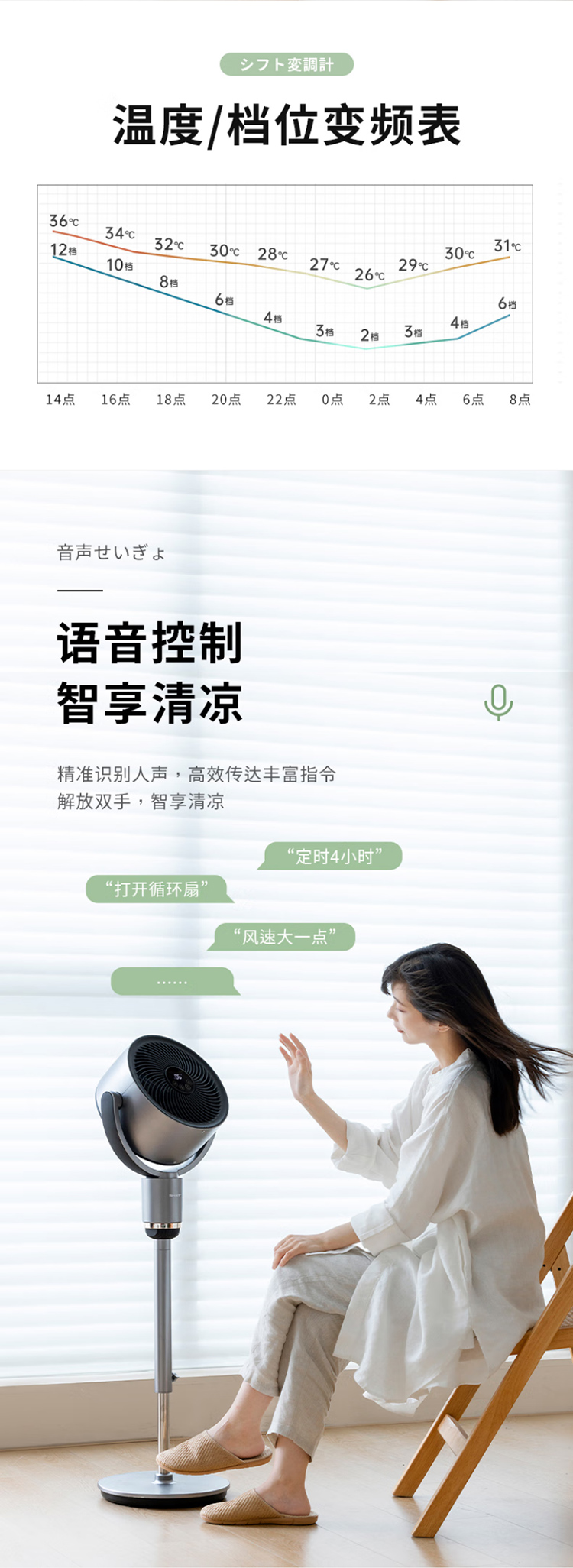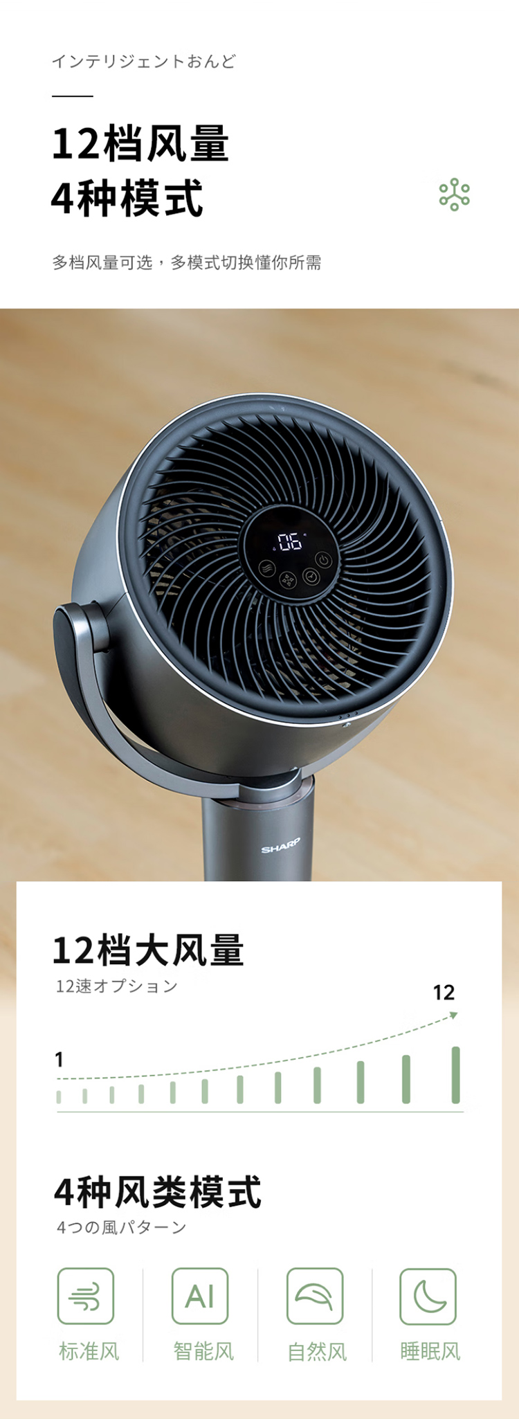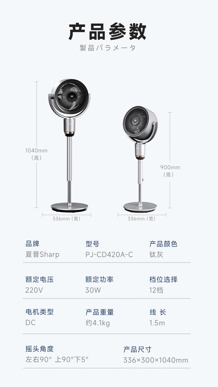 夏普空气循环扇电风扇轻音落地扇家用新款智能语音负离子滤网净化电扇直流大风量电扇PJ-CD420A-C 语音+离子群